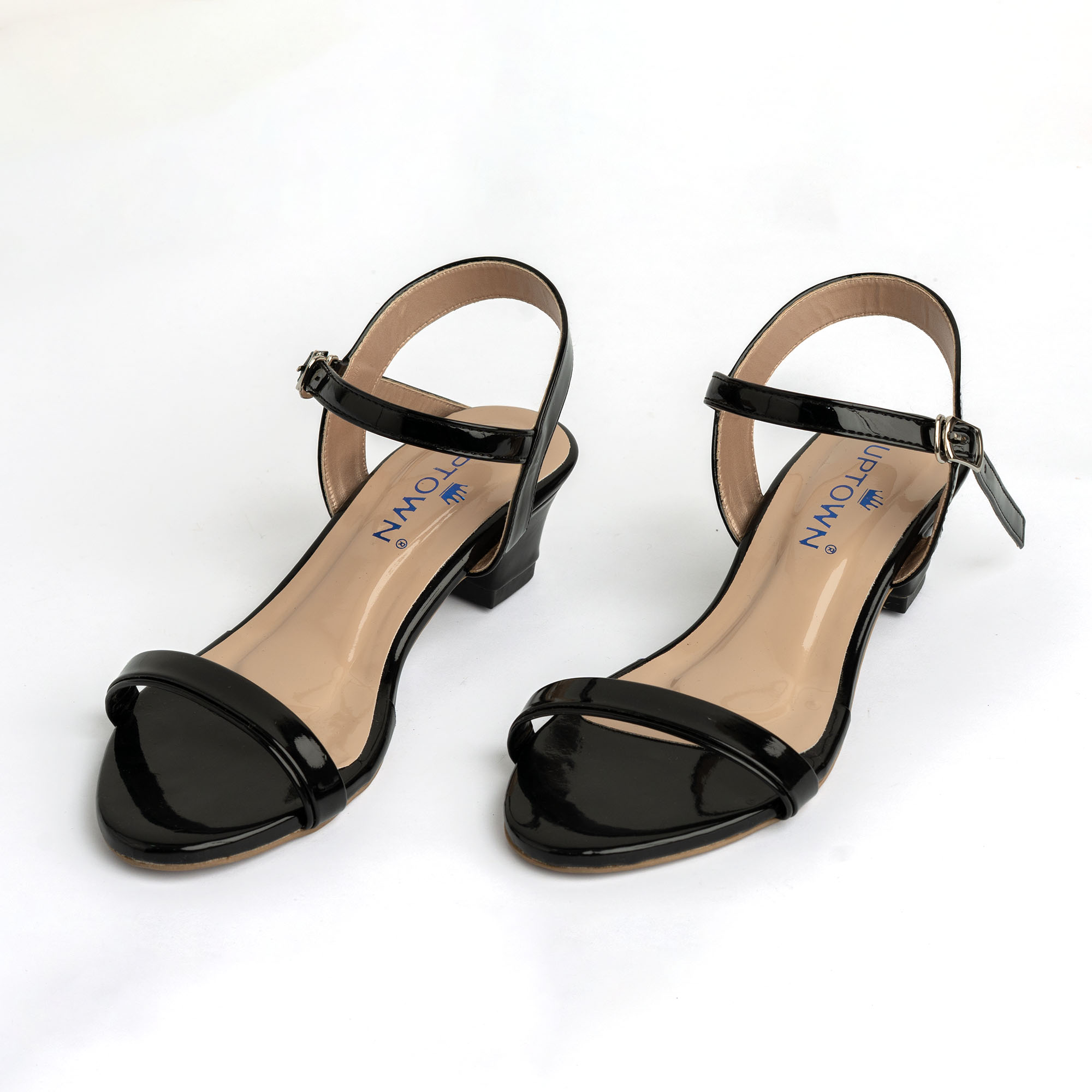 Step out in sophisticated style with the Uptown Black Patent Ankle-Strap Heel. Crafted from sleek, g...