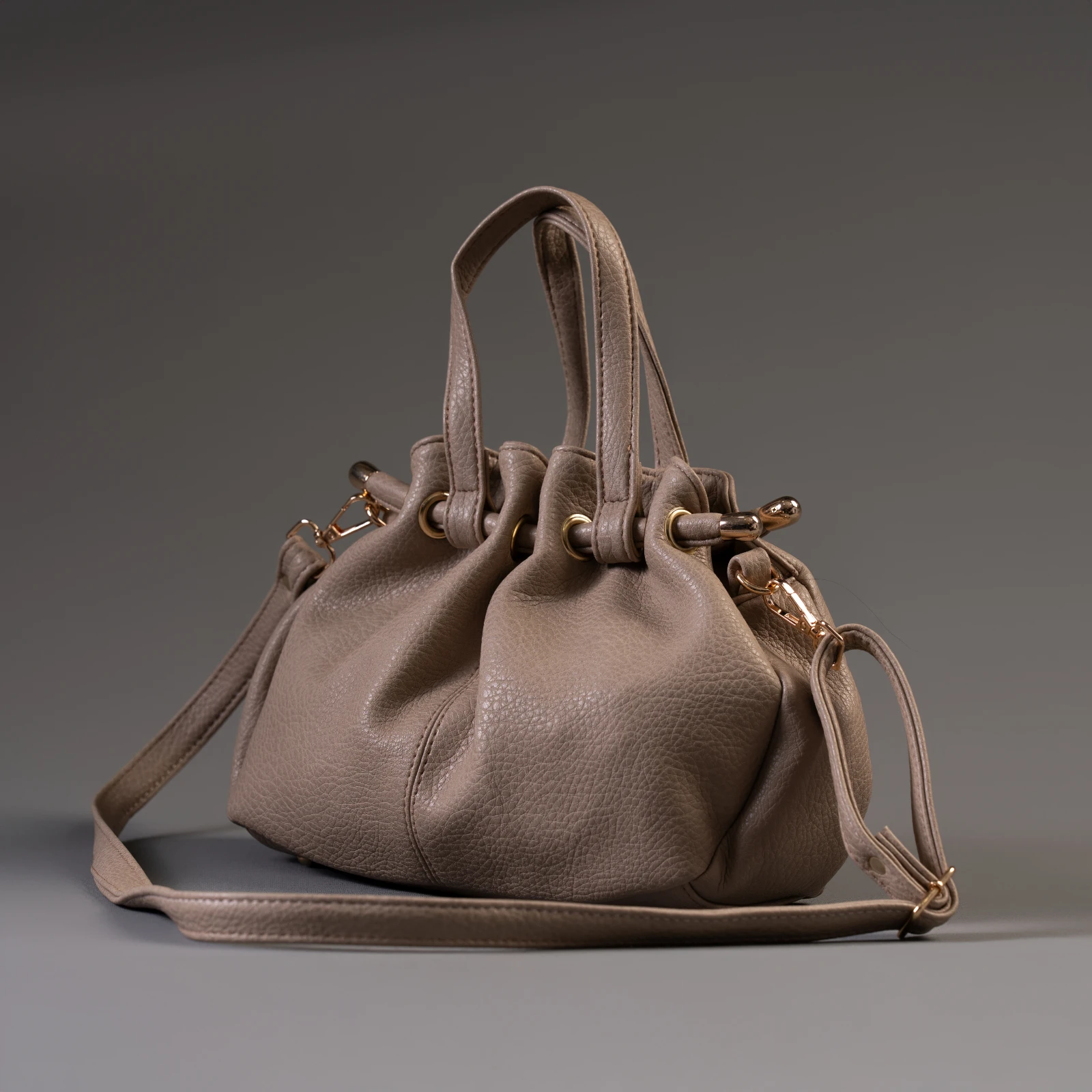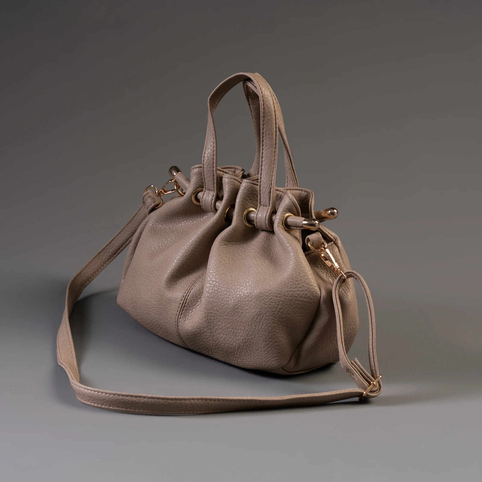 Discover effortless chic with our Beige Leather Ruched Handbag. Crafted from supple, high-quality le...