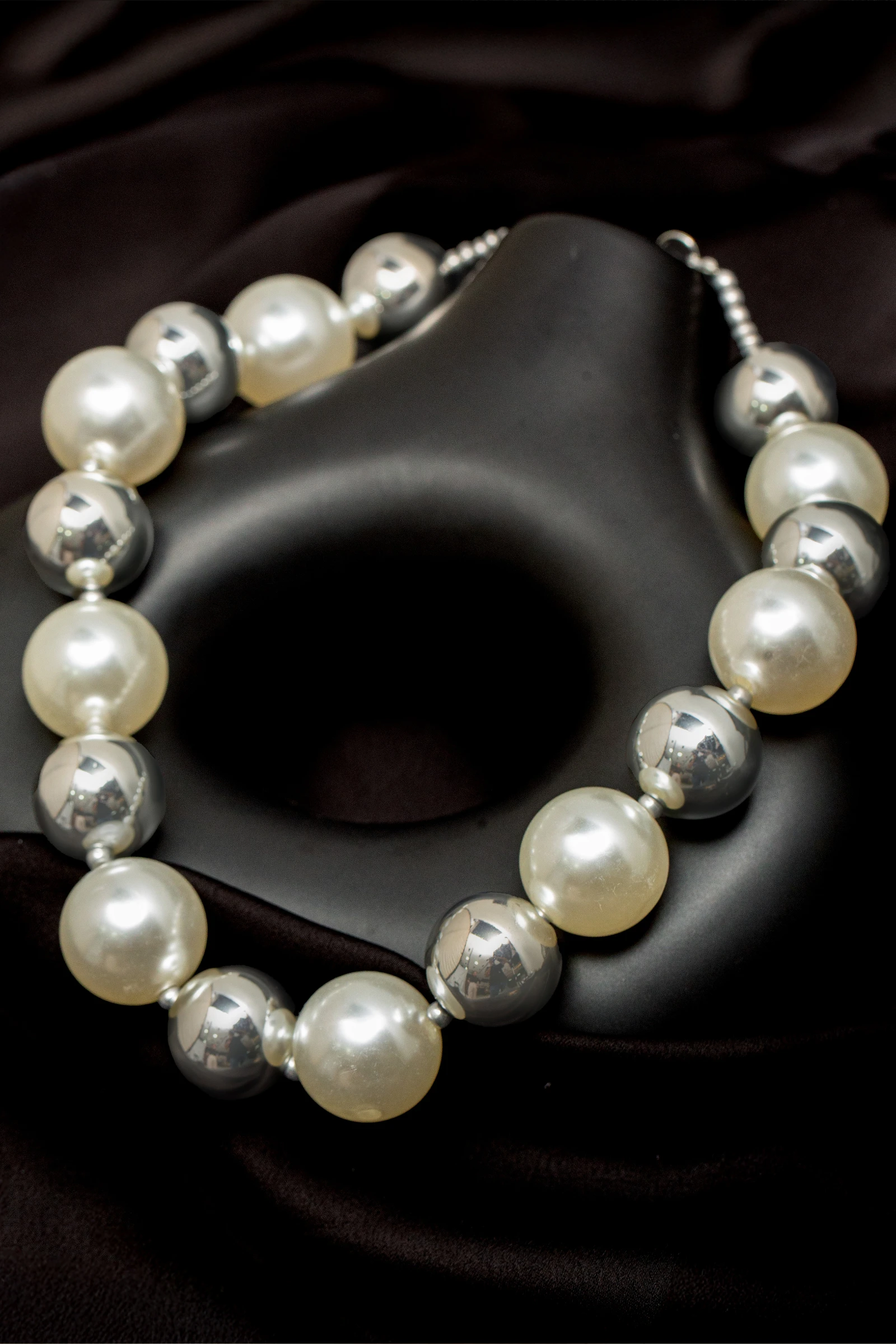 Make a statement with this exaggerated, fashionable pearl necklace. Large, lustrous pearls create a...