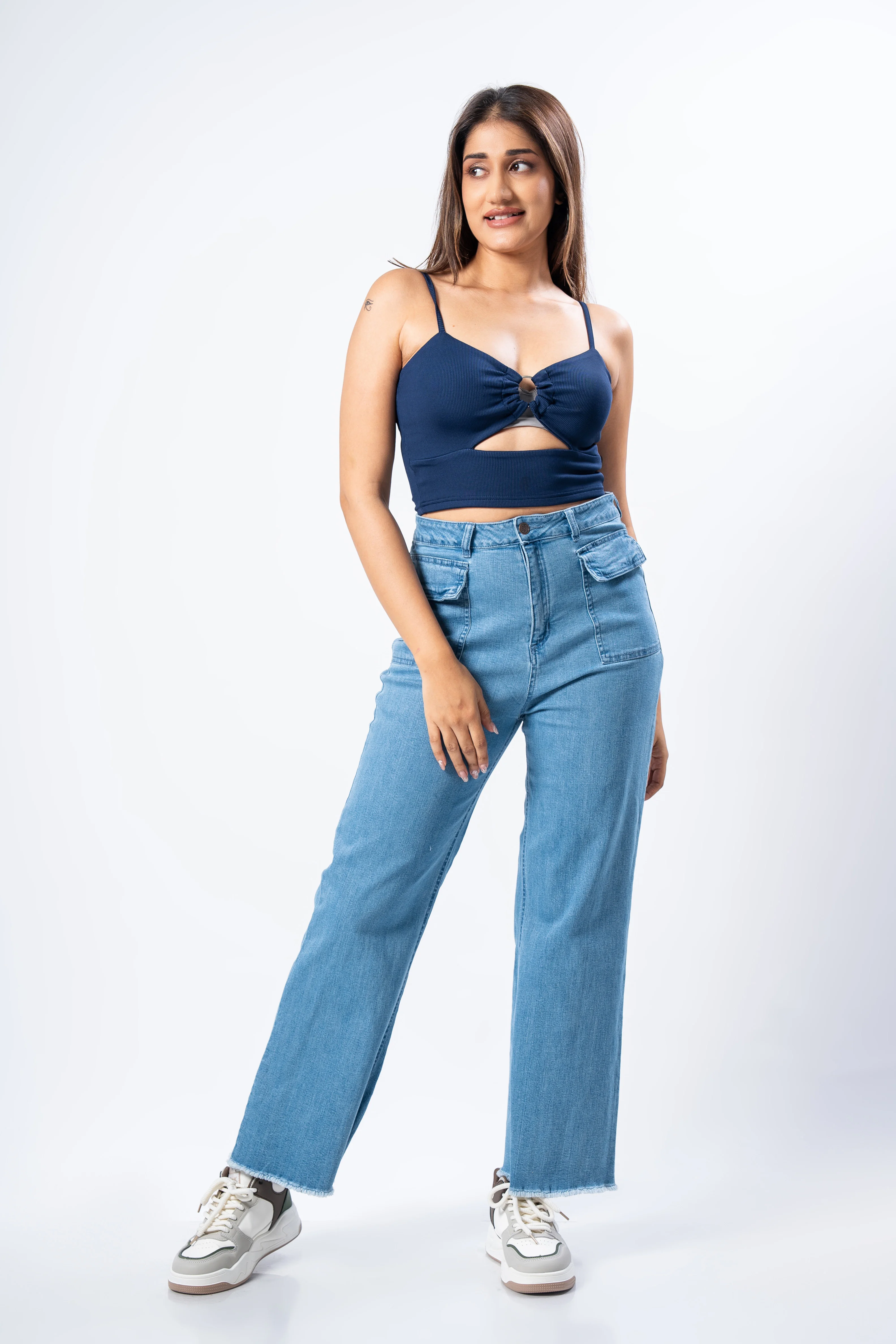 Stylish and practical, these high-waisted jeans feature flattering front double pockets and a comfor...