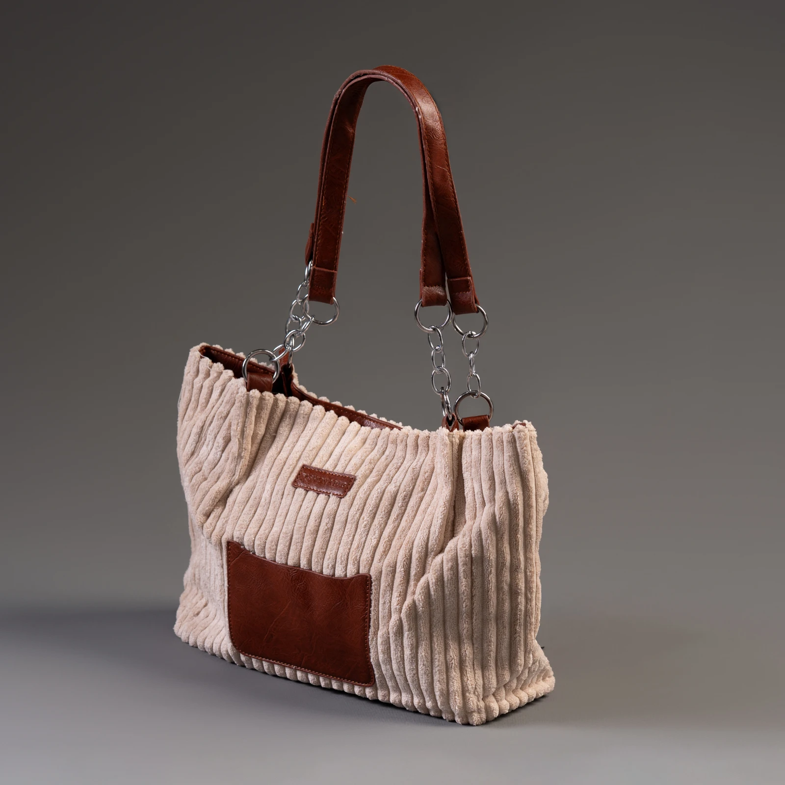 This elegant velvet handbag features a luxurious soft touch with sophisticated leather handles for a...