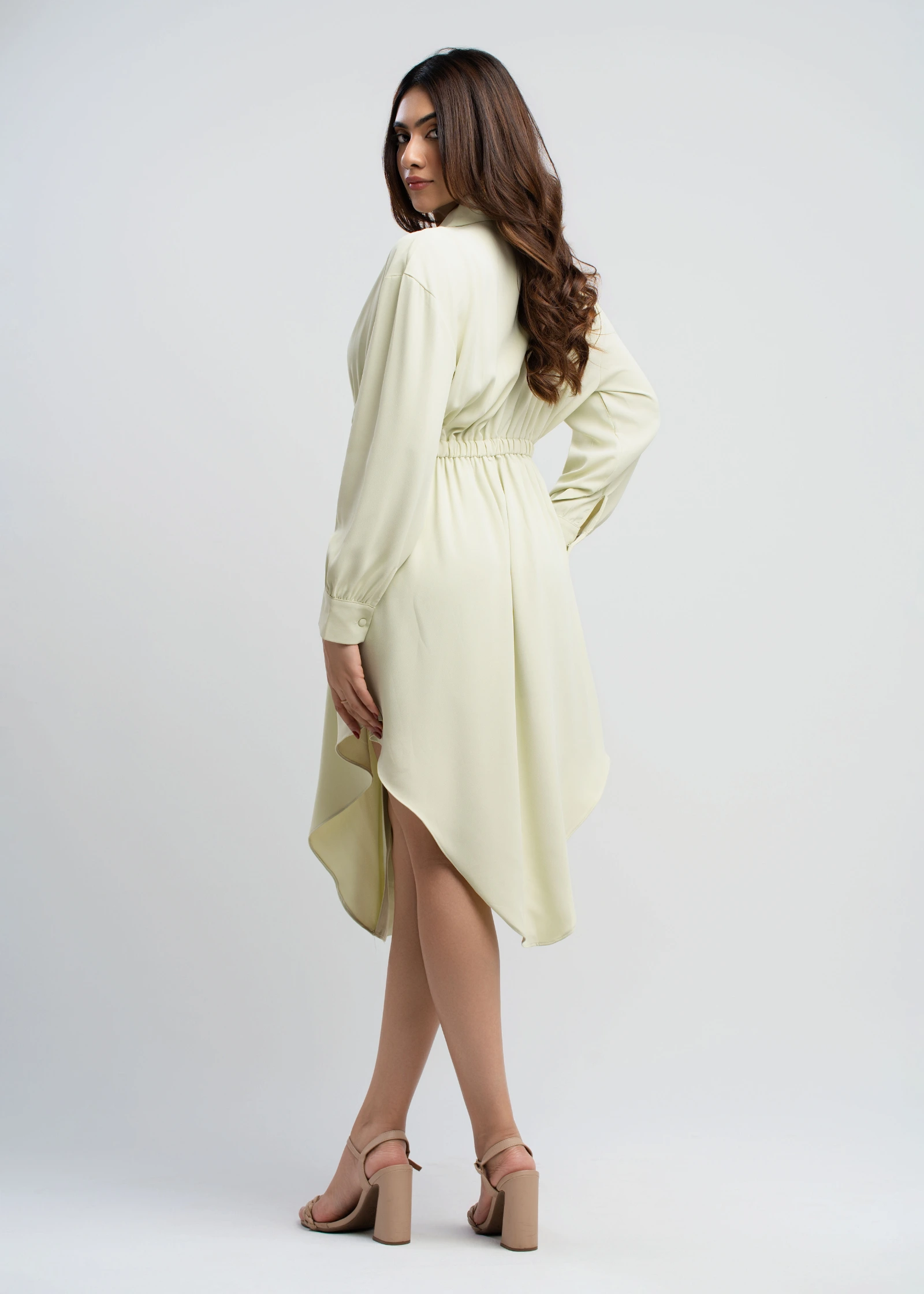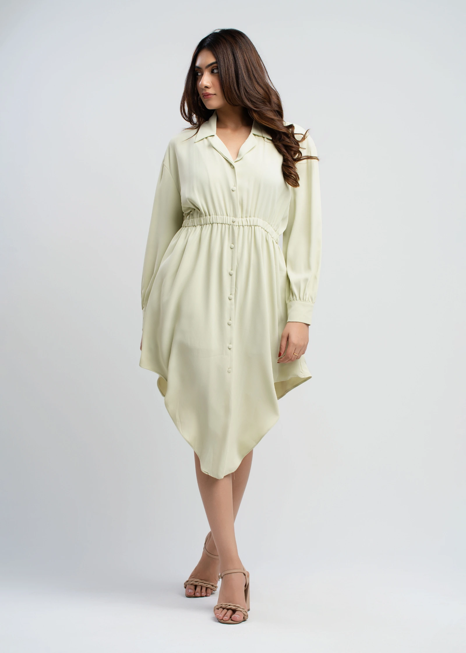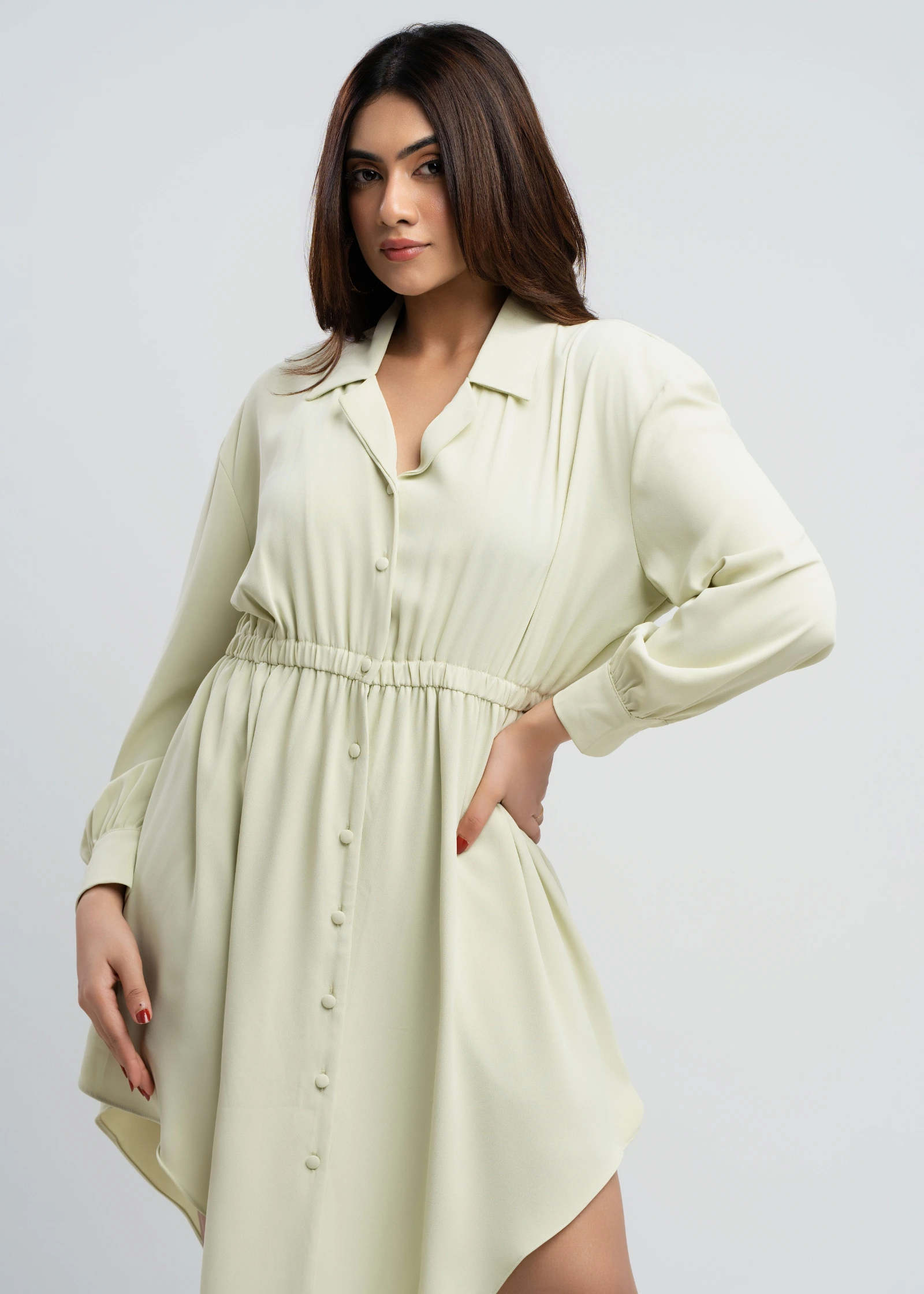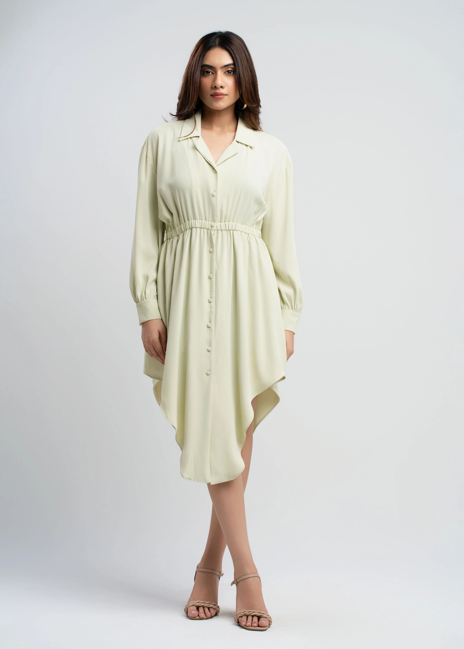 The Skaala Asymmetrical Hem Shirt Dress offers a modern twist on a classic silhouette. Crafted from ...