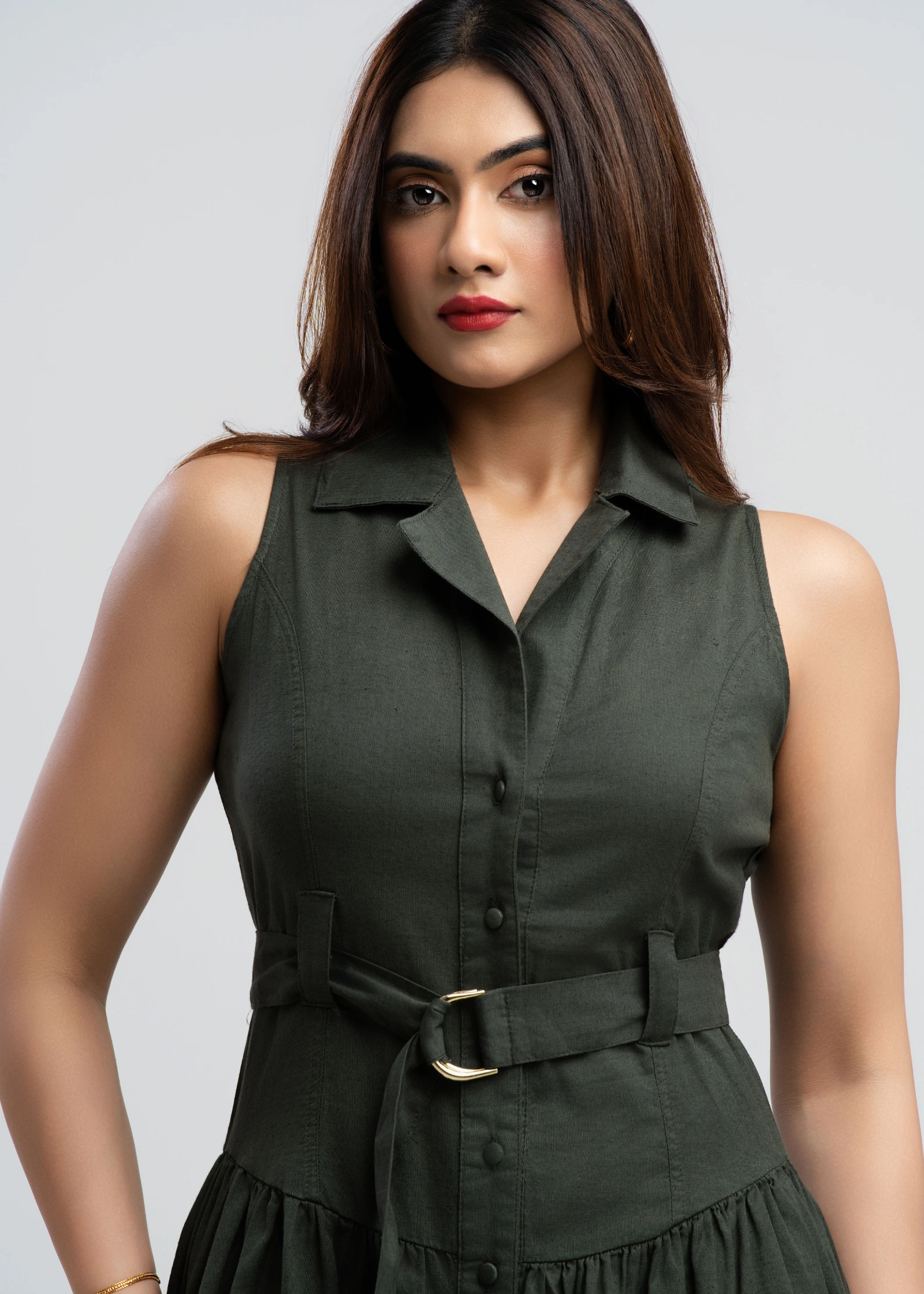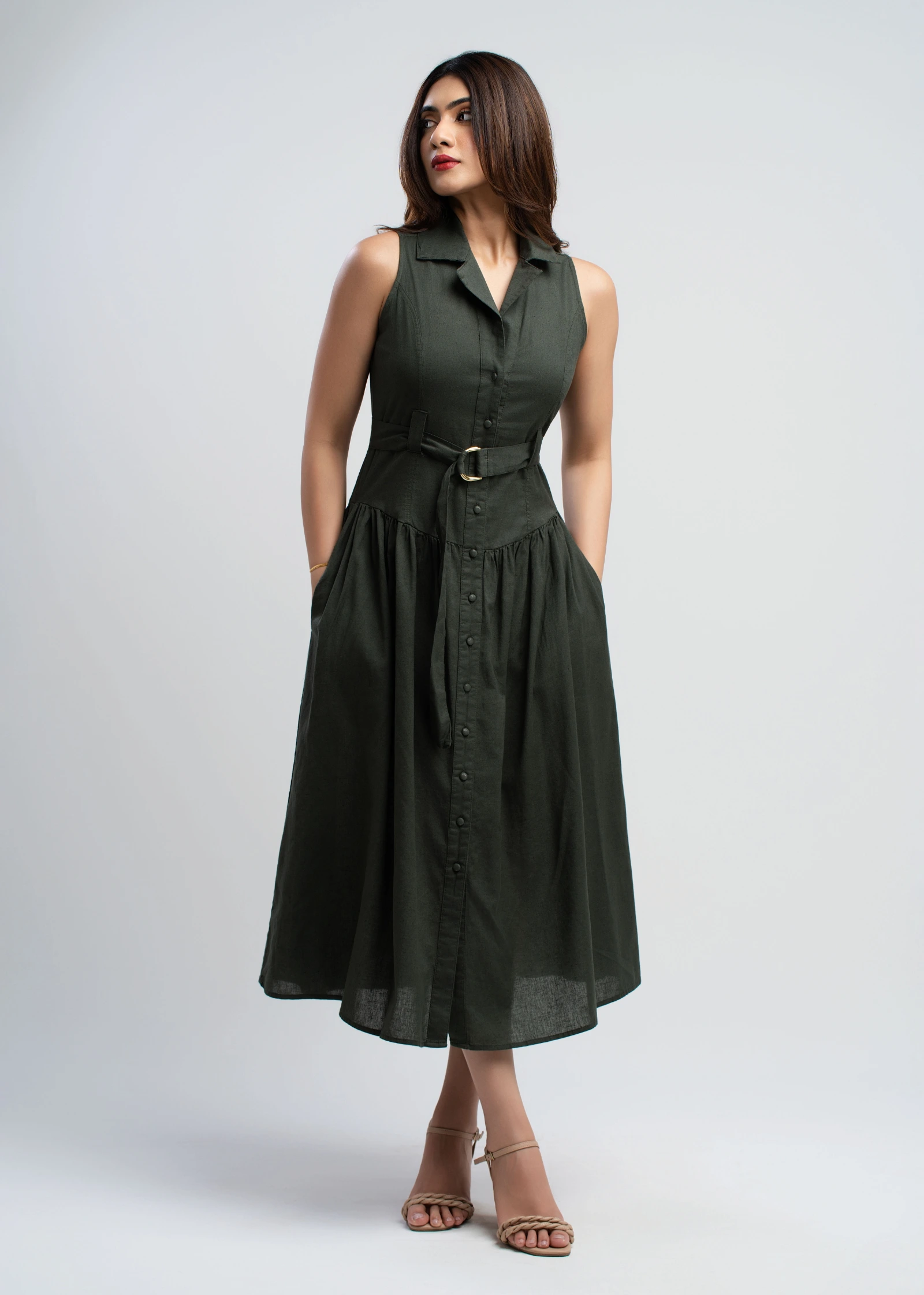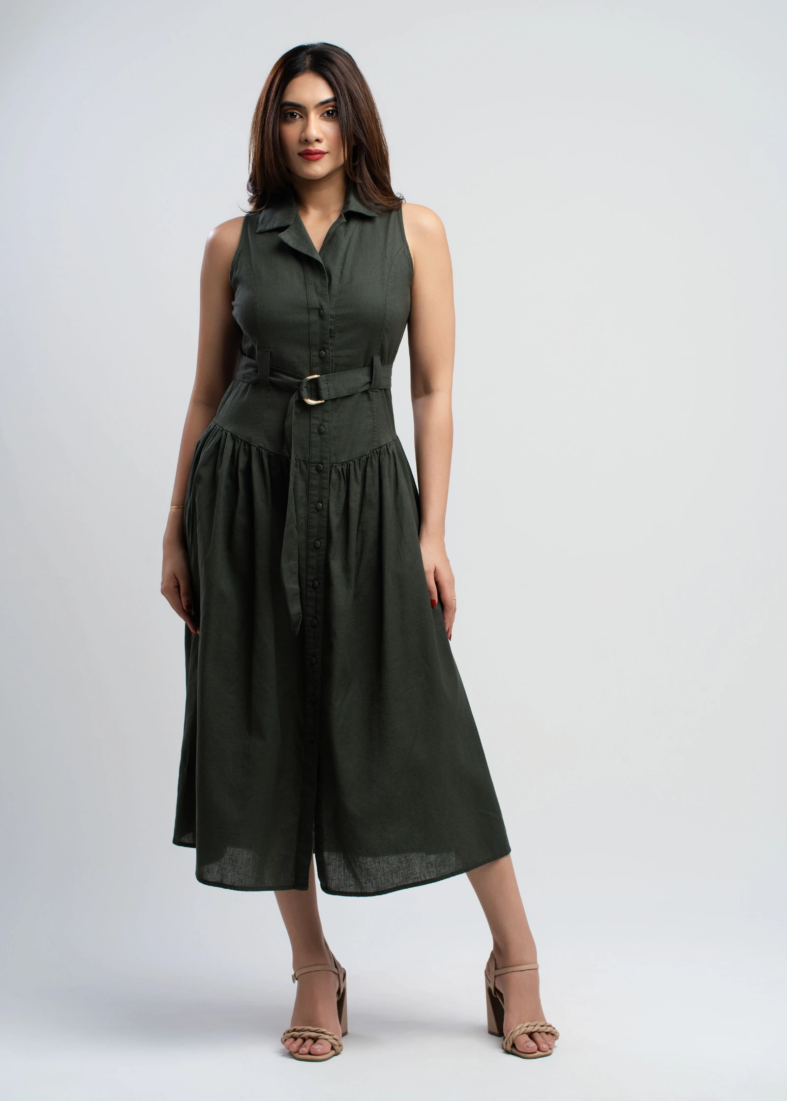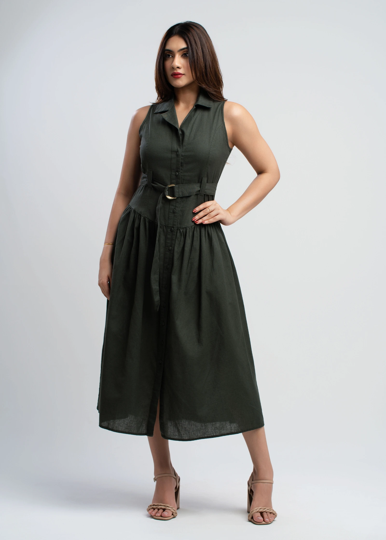The Skaala Sleeveless Midi Shirt Dress offers effortless chic for any occasion. Crafted from breatha...