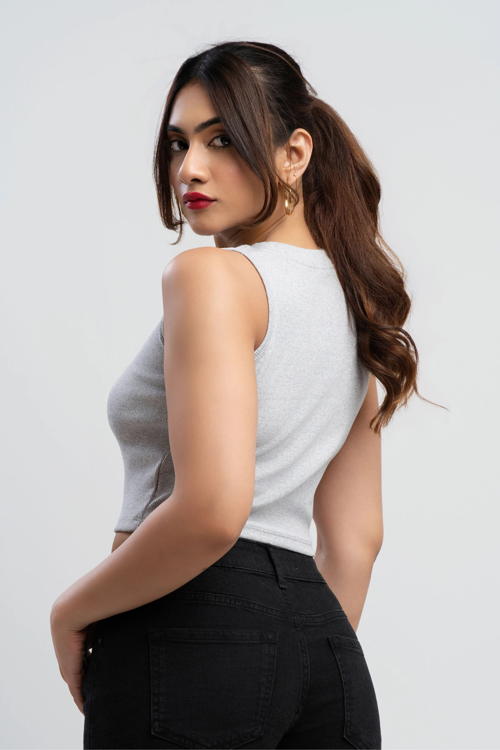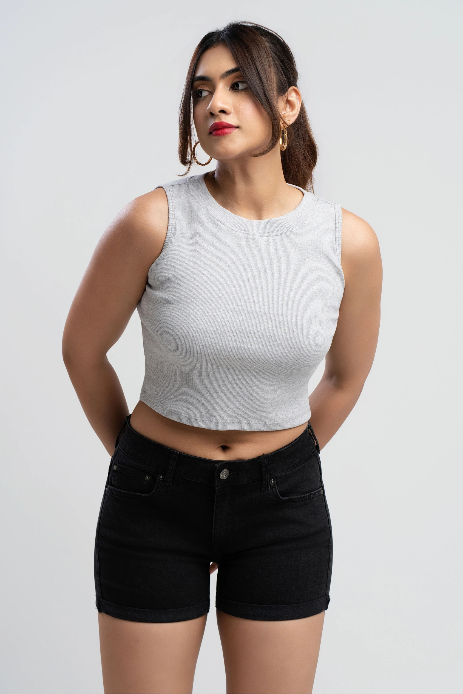 The Tee Love Ash Ribbed Tank Crop Top is a chic and comfortable wardrobe staple. Crafted from a soft...