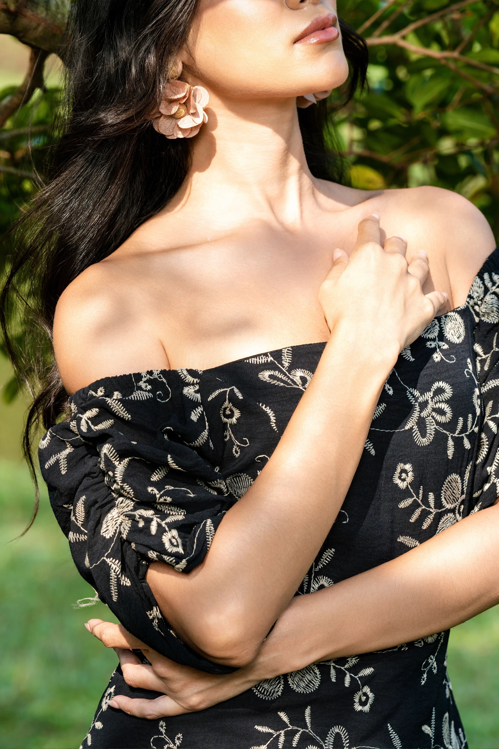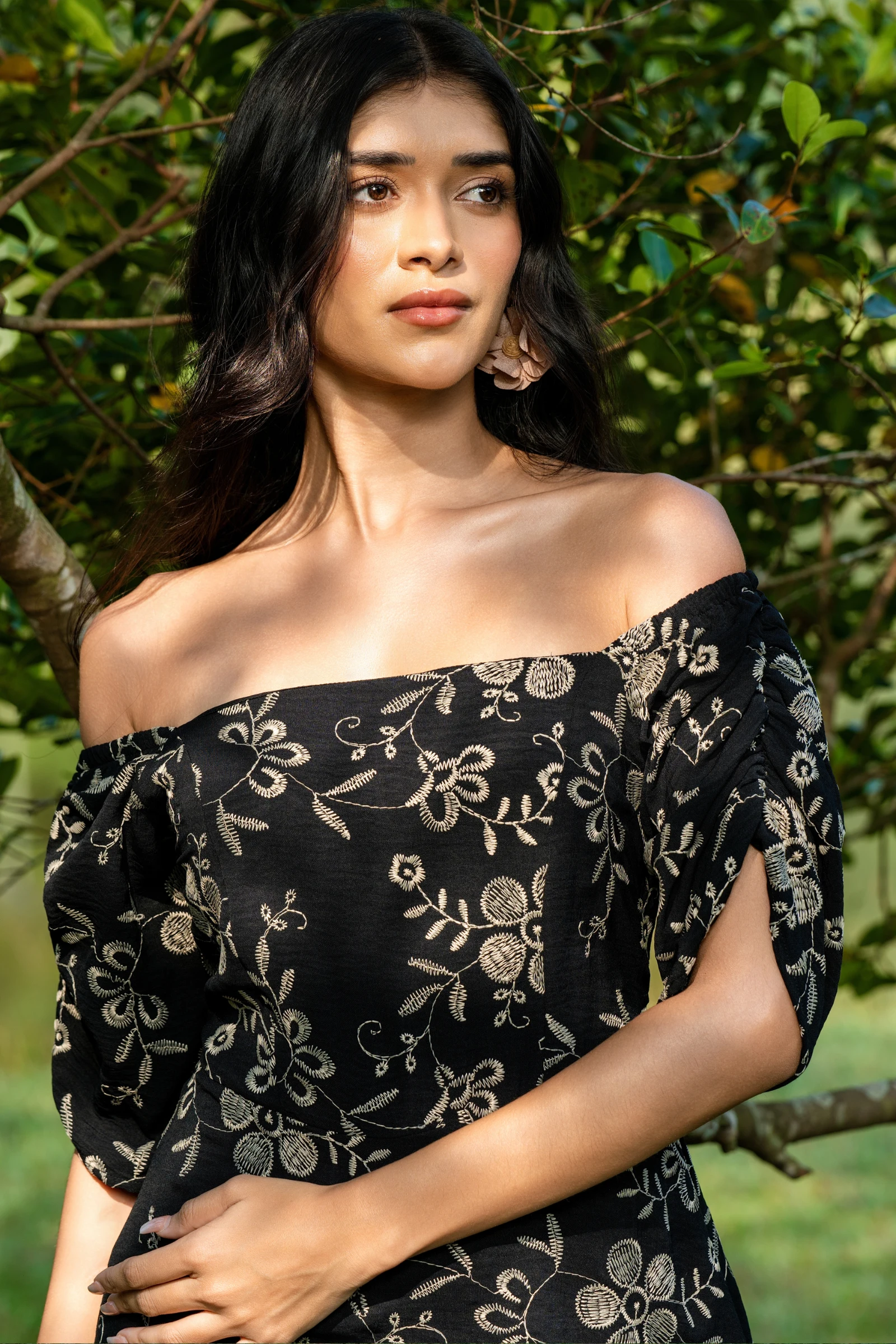 Embrace effortless chic with our Tee Love Black Color Printed Off Shoulder Long Dress. This flowing ...