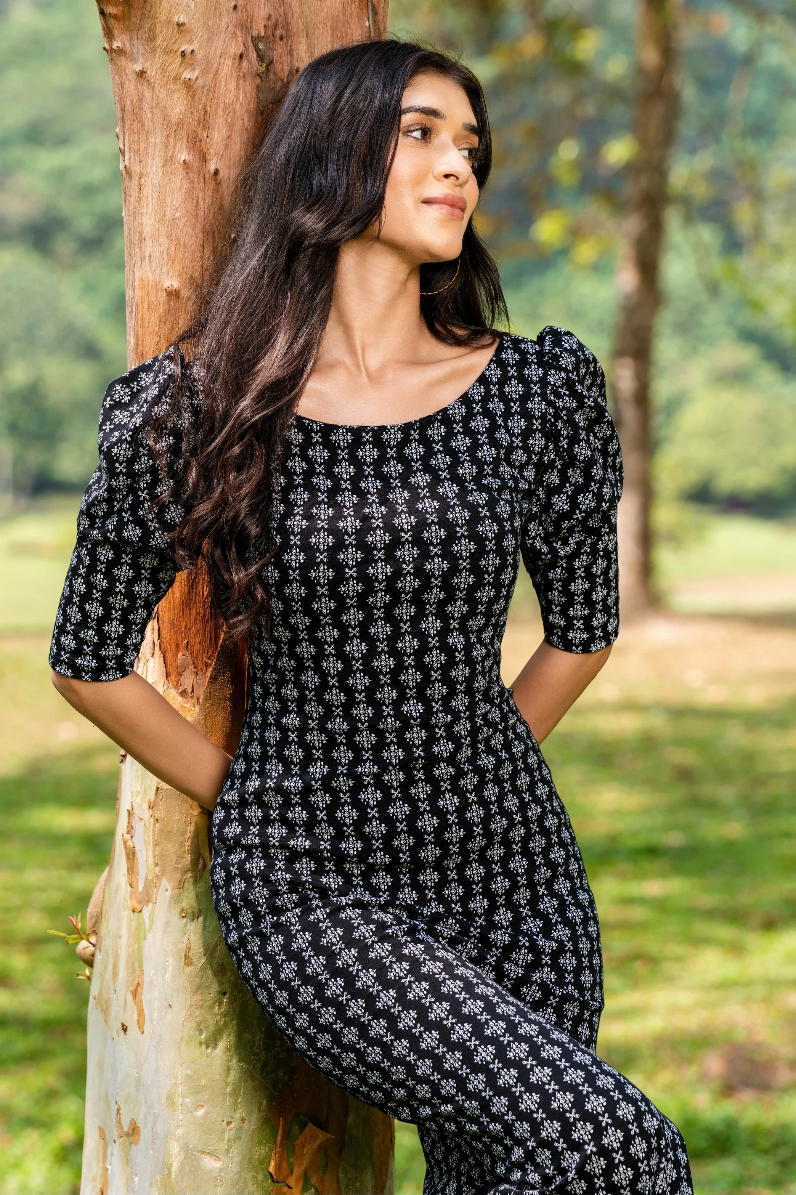 Effortless elegance meets playful charm in the Tee Love Black Color Puff Sleeve Floral Printed Long ...
