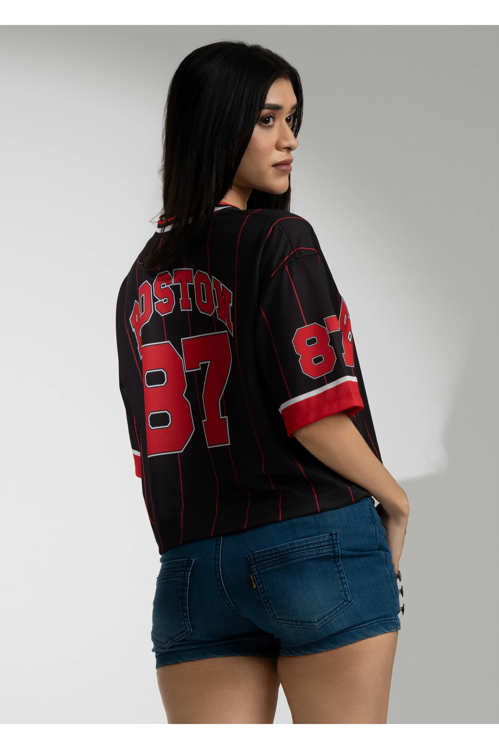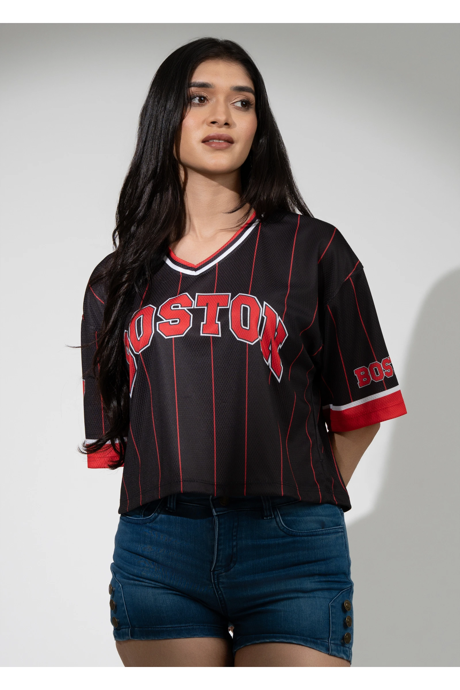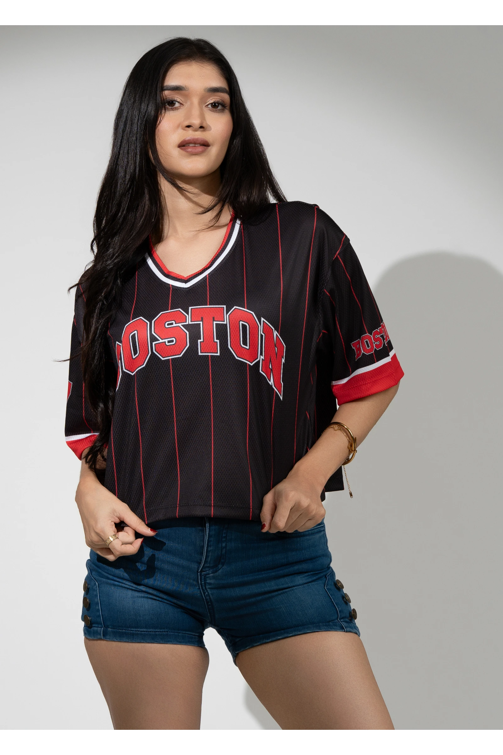 Embrace comfort and style with the Tee Love BOSTON Print Oversized Crop T-shirt. This on-trend tee f...