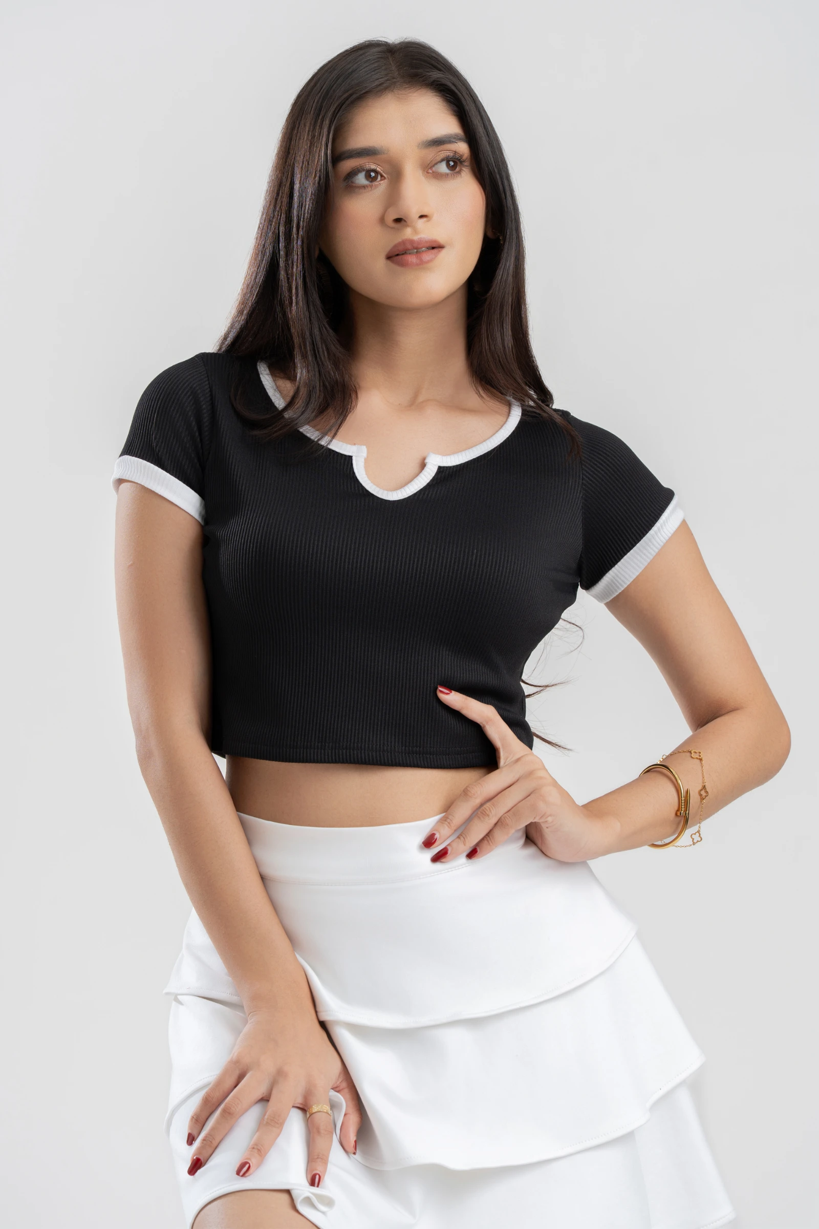 Effortlessly chic. The Tee Love Contrast-Trim Notched Crop Top features a flattering notched necklin...