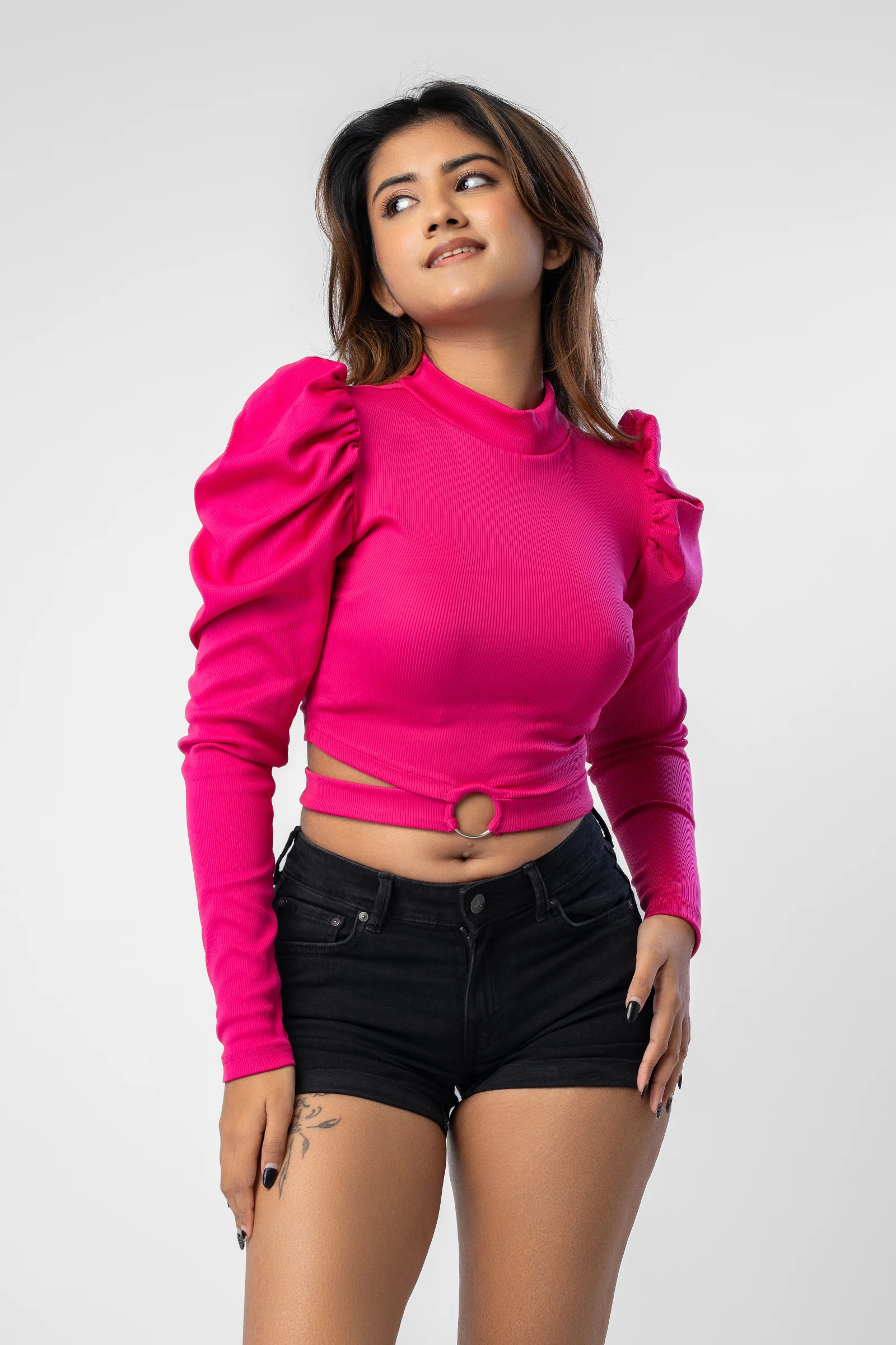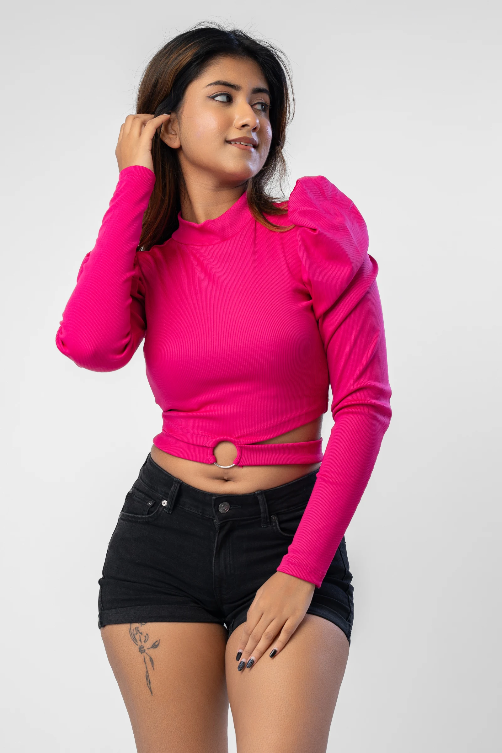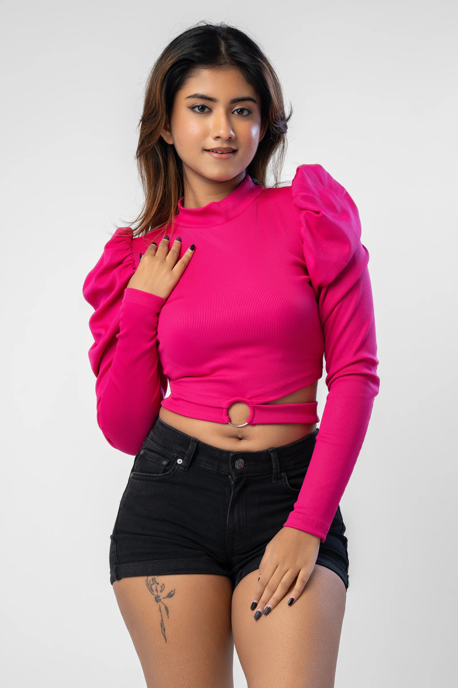 Stylish and flirty, the Tee Love Front Ring Puff Sleeve Crop Top features a flattering ring detail a...
