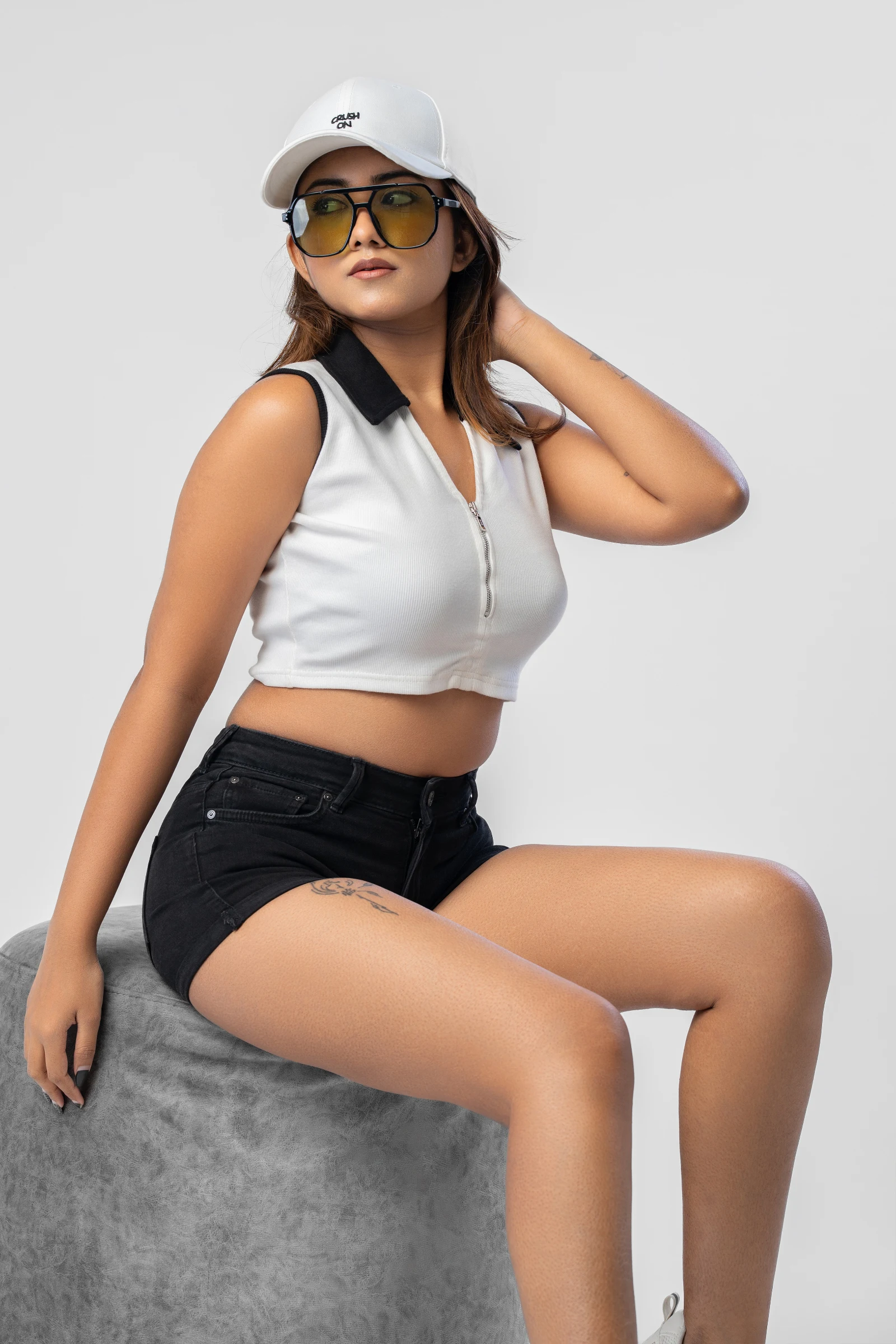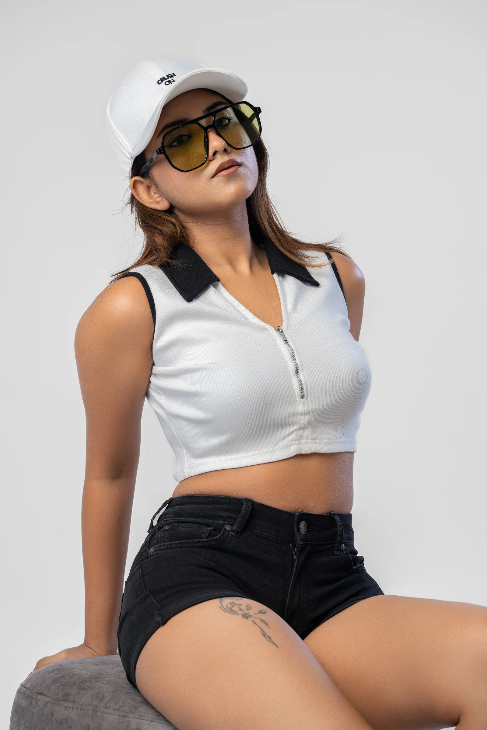 Stylish and versatile, the Tee Love Front Zipper Collared Crop Top offers a trendy twist on a classi...