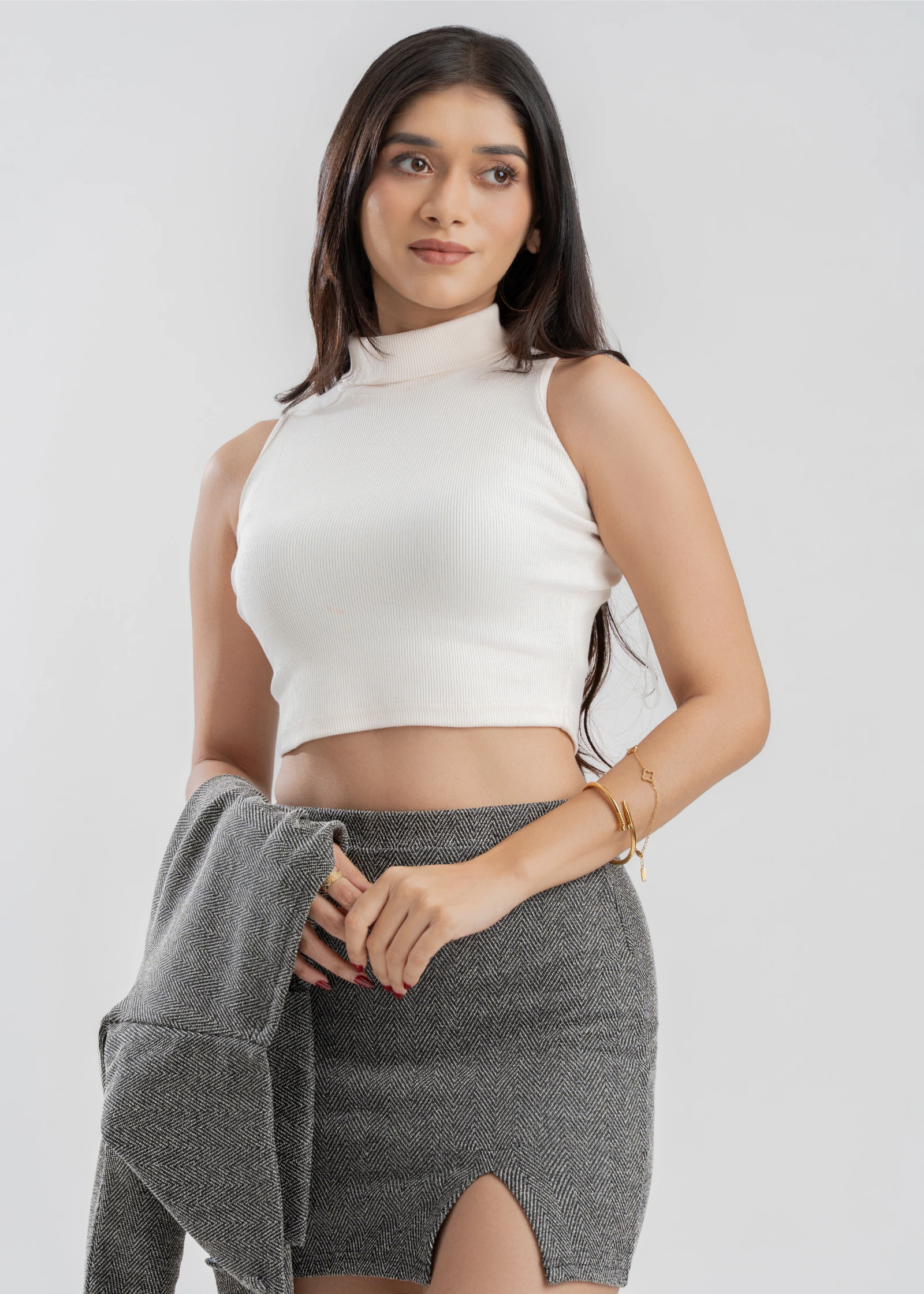 Introducing the Tee Love High Collar Sleeveless Crop Top. This chic and versatile top features a fla...