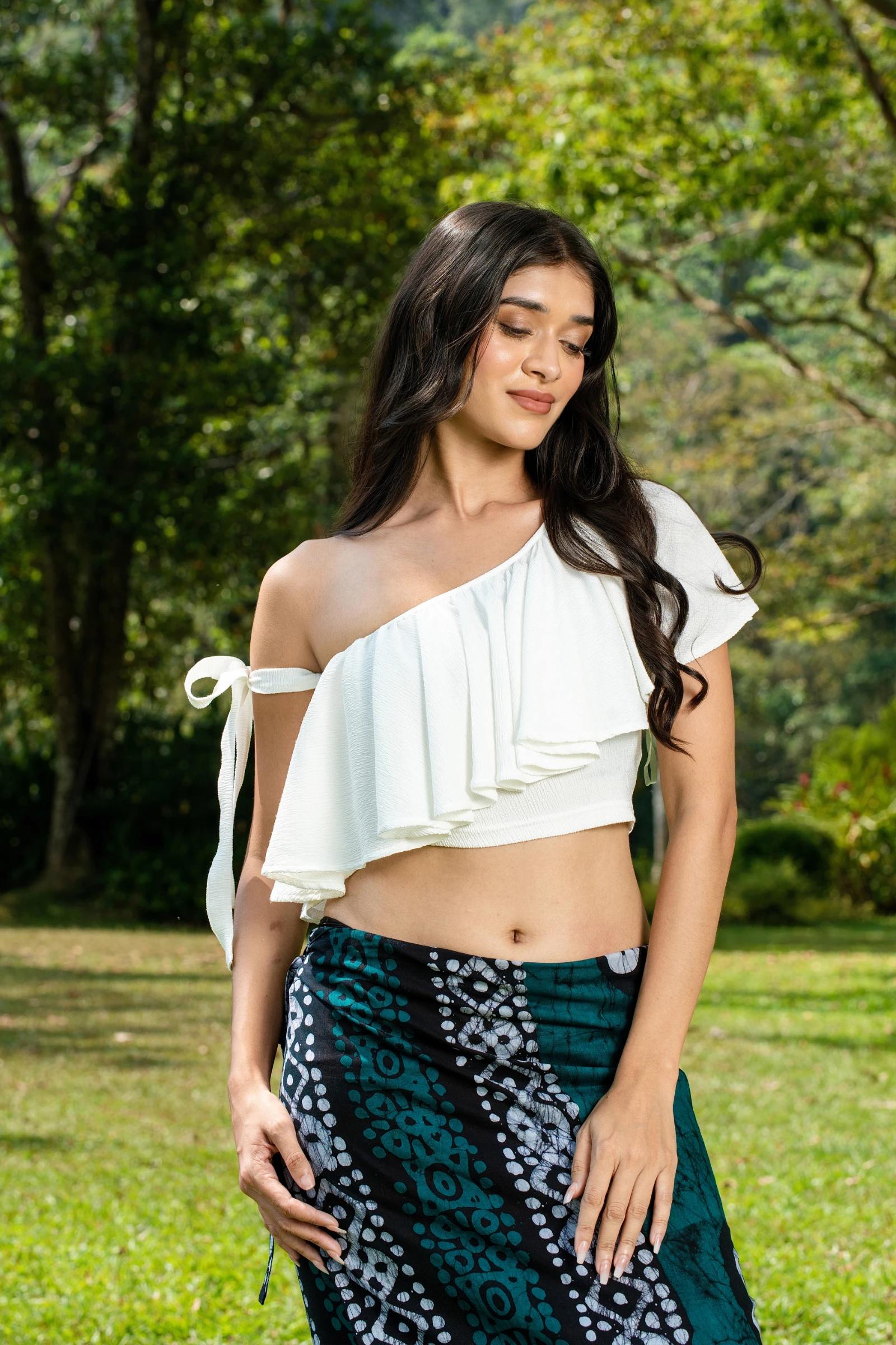 Introducing the Tee Love One Shoulder Ruffled Crop Top, a flirty and fashionable addition to your wa...