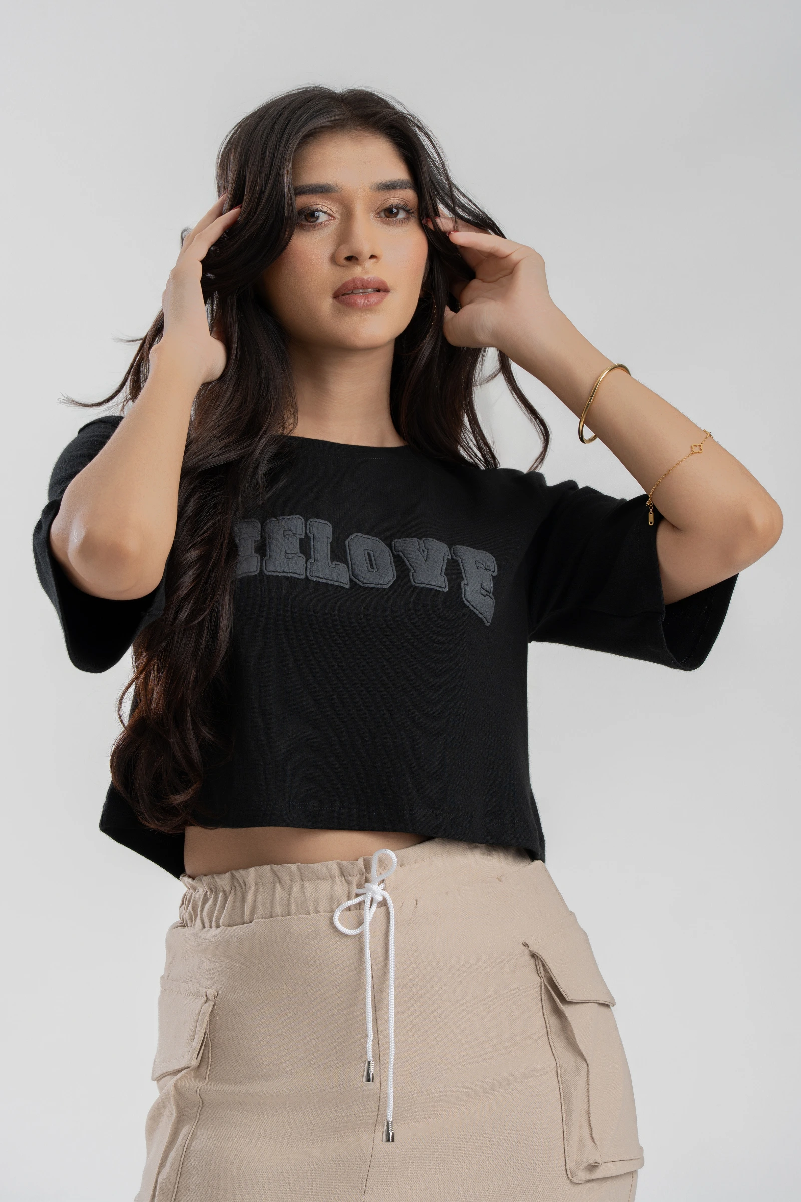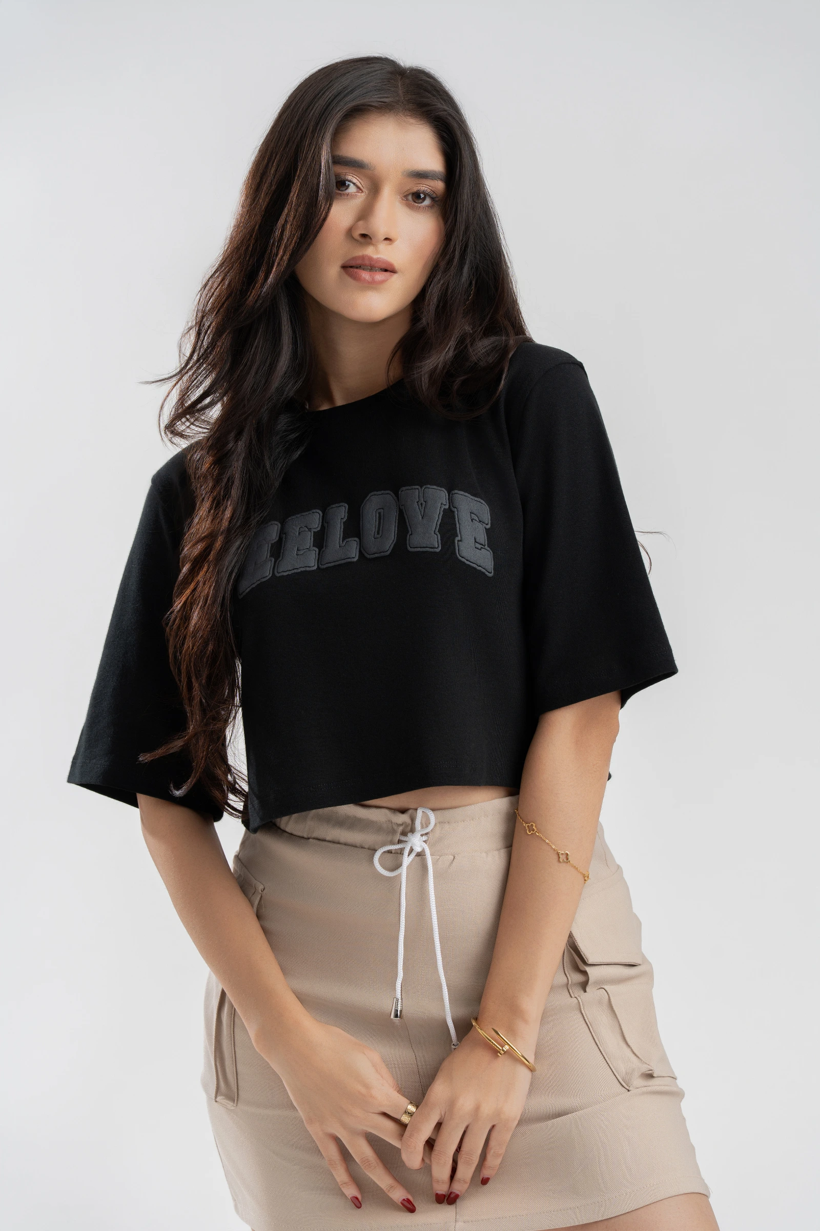 Show your love for style with this Tee Love Printed Black Crop Top. Crafted from soft, breathable f...