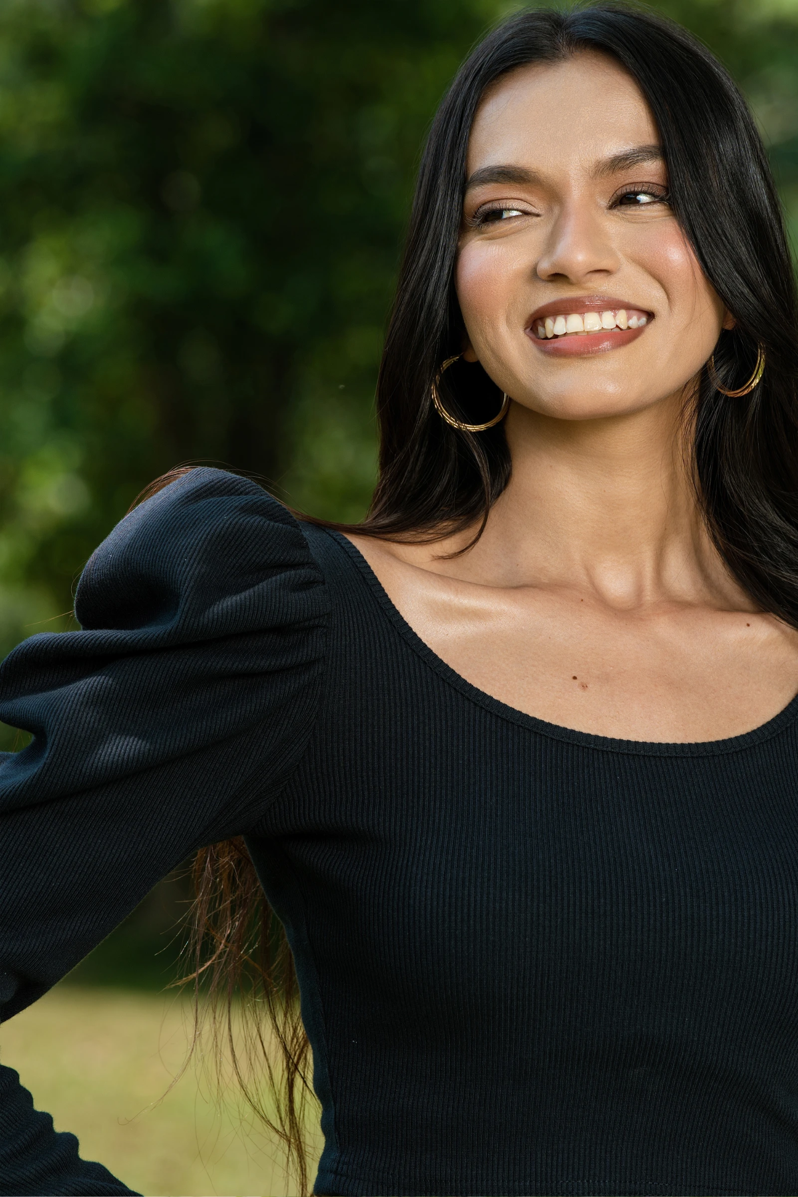 Experience effortless style with our Tee Love Scoop Neck Puff Long Sleeve Crop Top. This top feature...