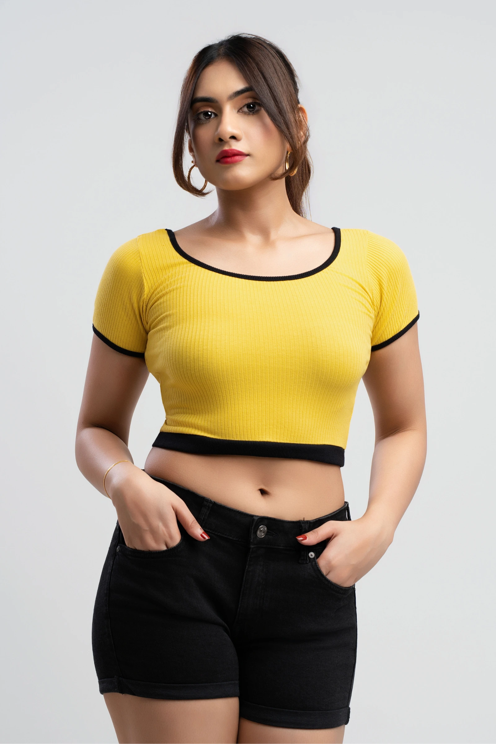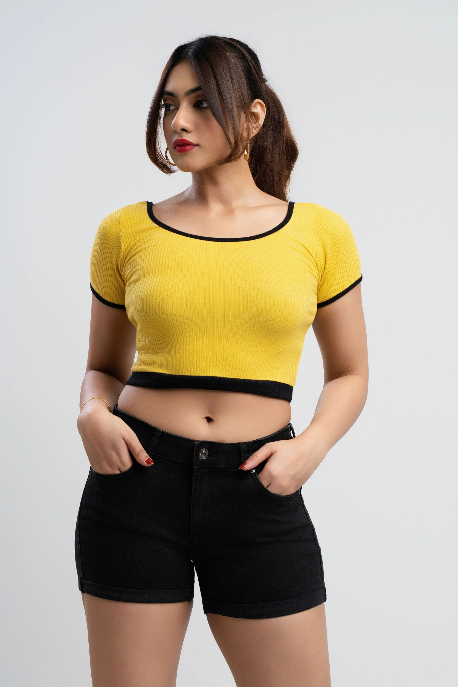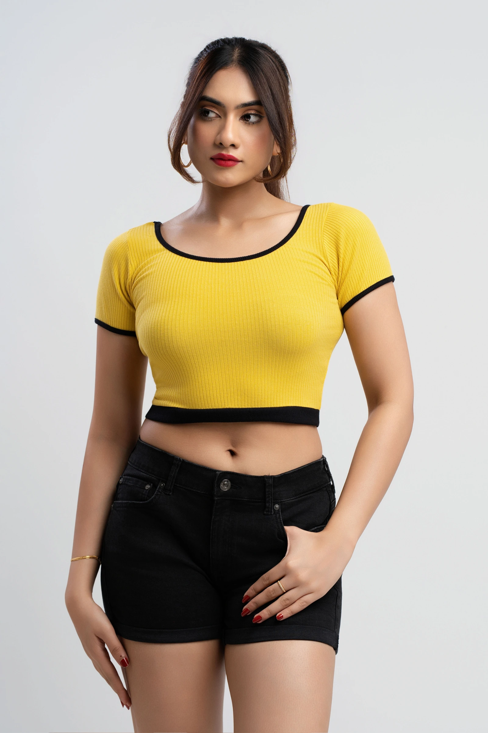 Show your love with this cozy and cute ringer tee. The scoop neckline and cropped silhouette create ...