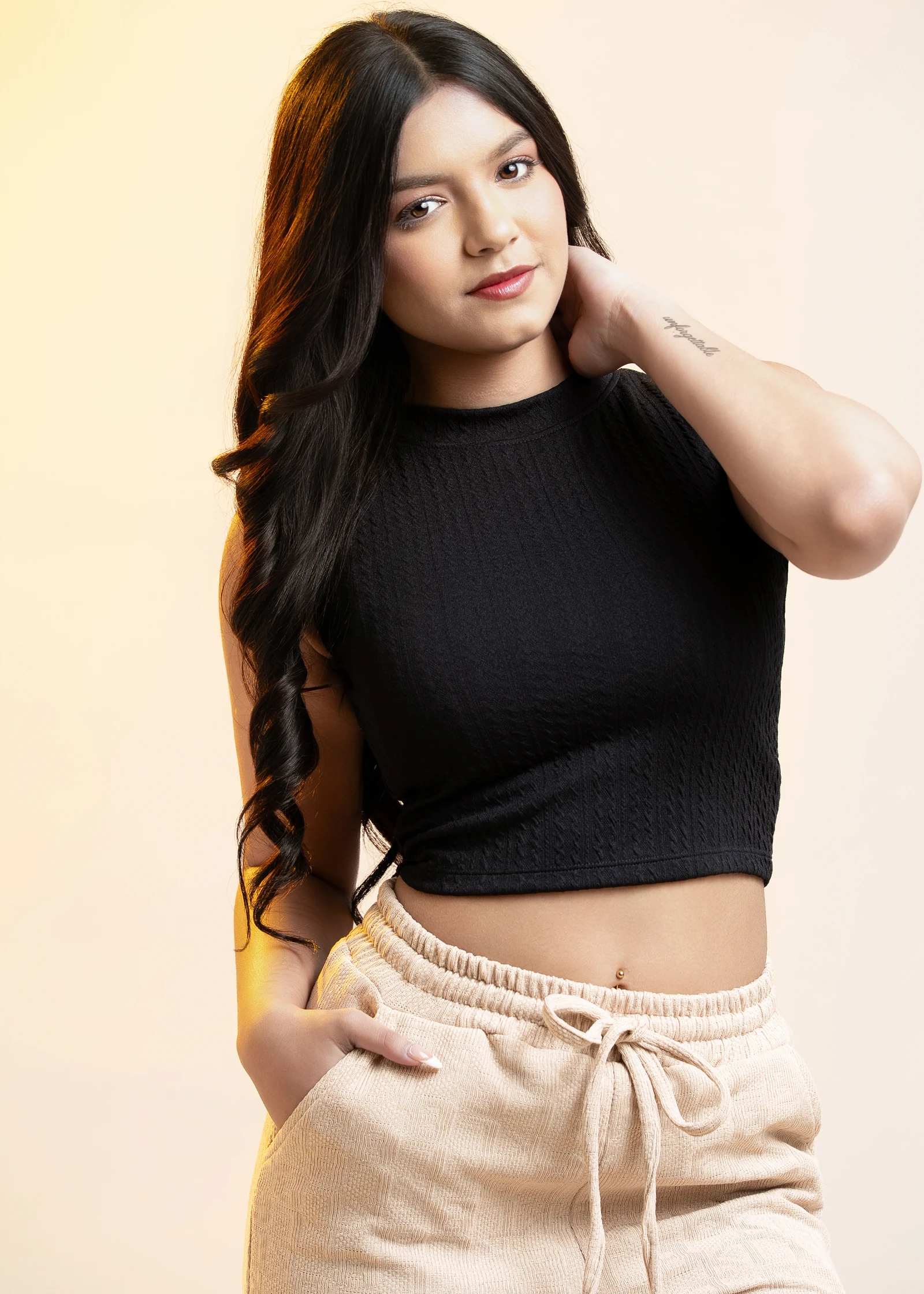 The Tee Love Textured High Neck Tank Crop Top is a stylish and versatile addition to your wardrobe. ...