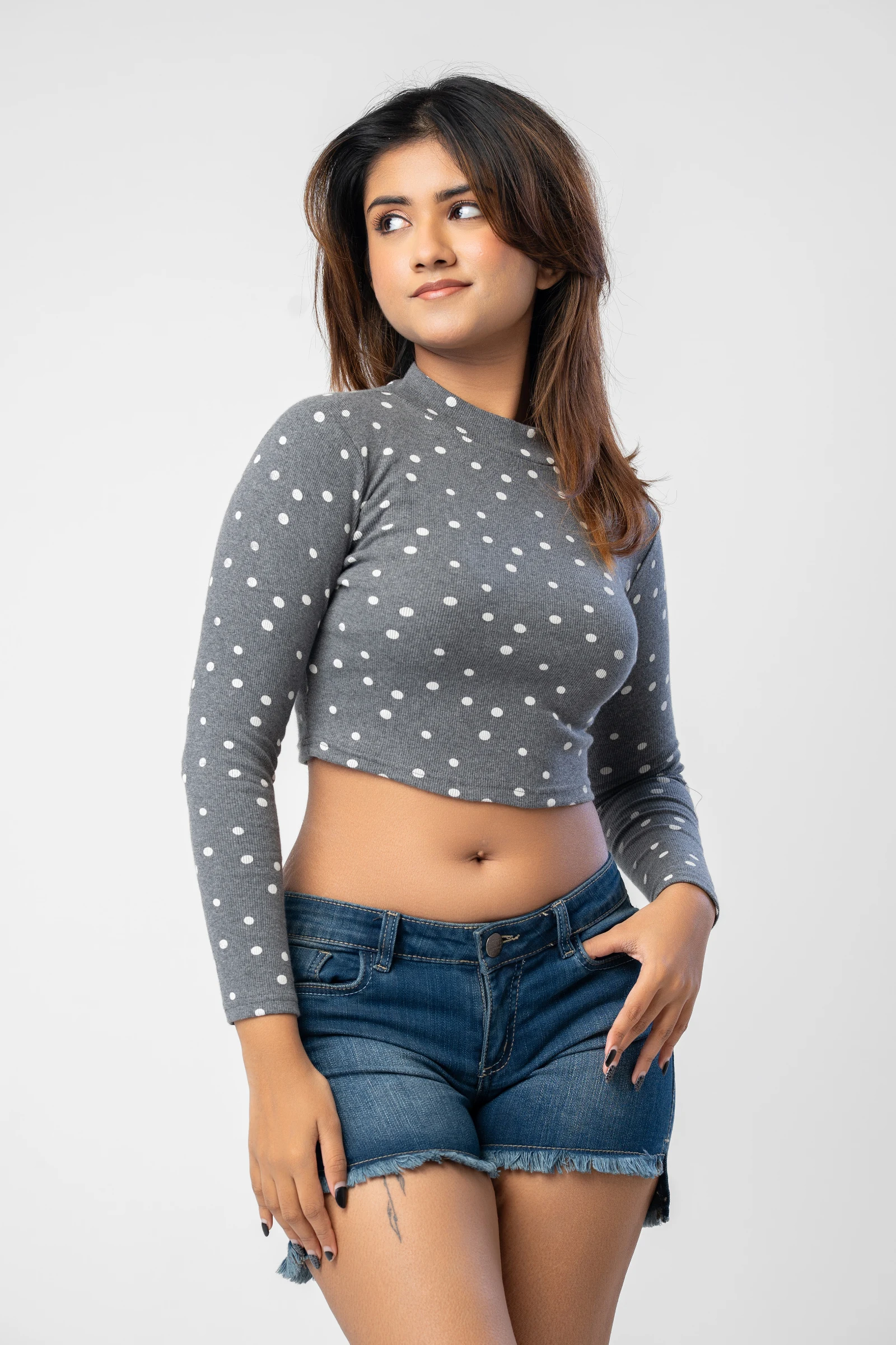Stay cute and comfy in our Tee Love White Dot Print Long Sleeve Crop Top. This adorable top feature...