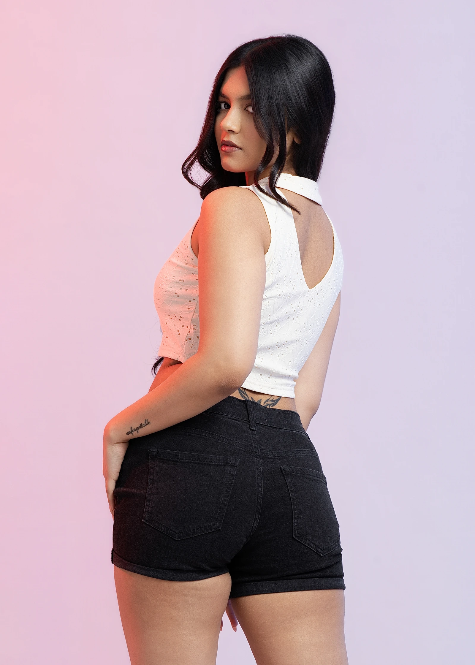 This Tee Love Zipper Font Schiffli Crop Top is a stylish and unique addition to any wardrobe. Featur...