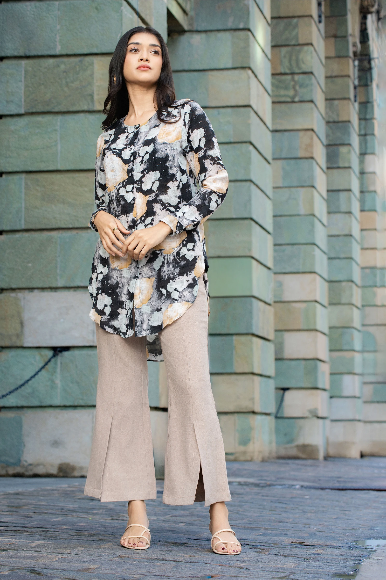 Effortless chic meets vibrant artistry with the Uptown Abstract Floral Tunic Top. This breezy tunic ...