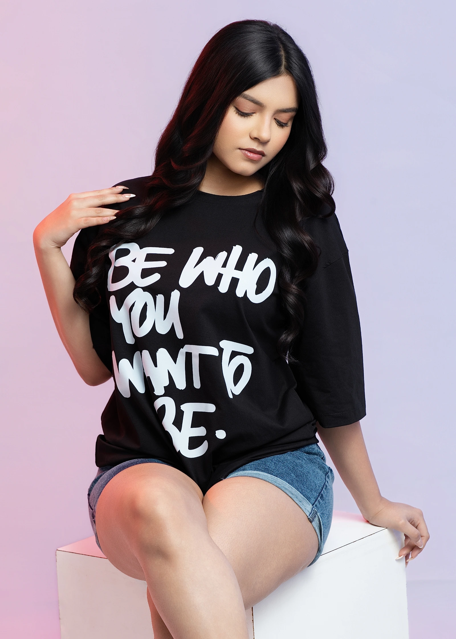 Embrace your true self with the Uptown "Be Who You Wanted To Be" Oversized T-Shirt. Crafted for comf...