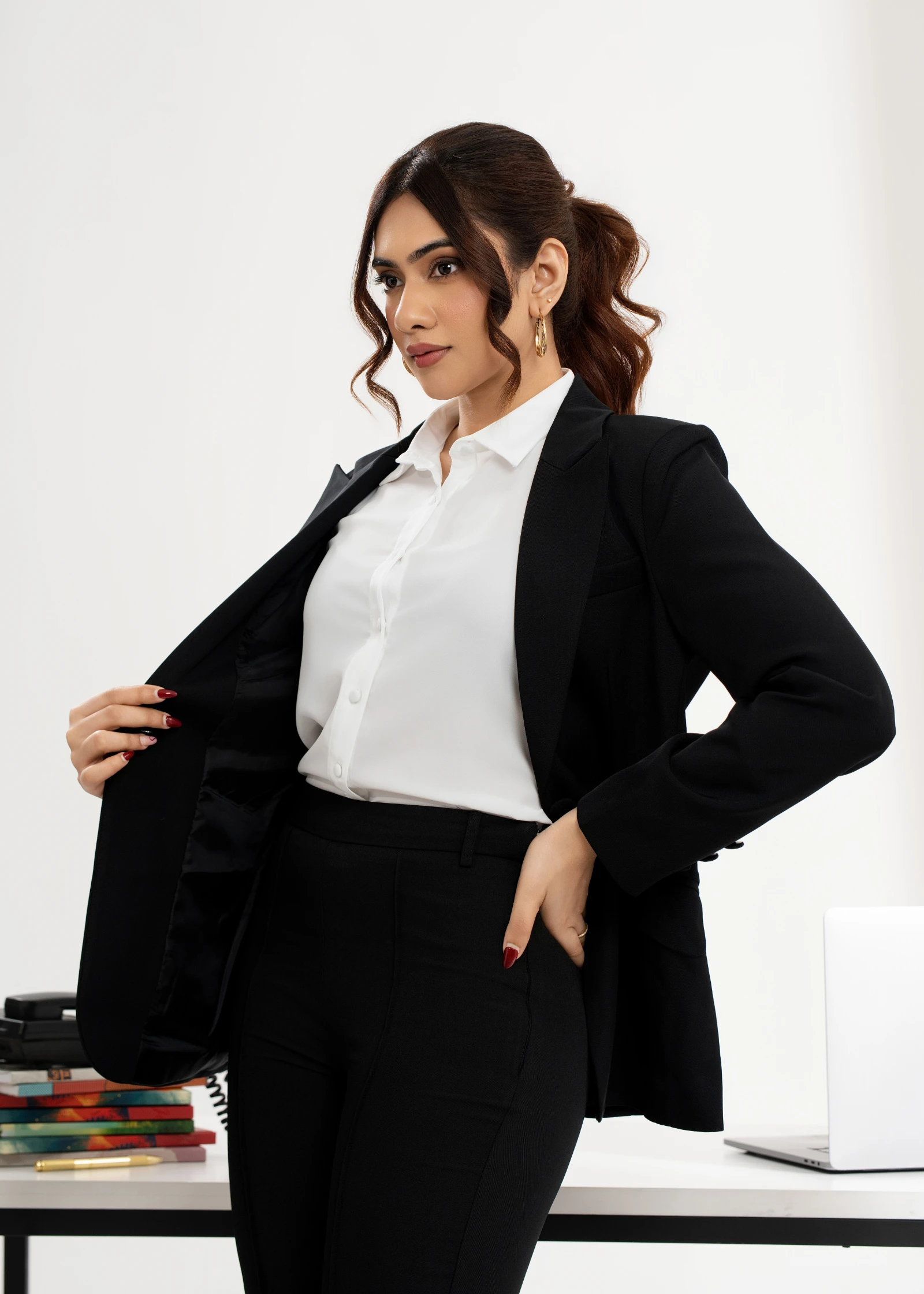 Introducing the Uptown Black Notch Collar Blazer. This essential piece blends timeless style with mo...