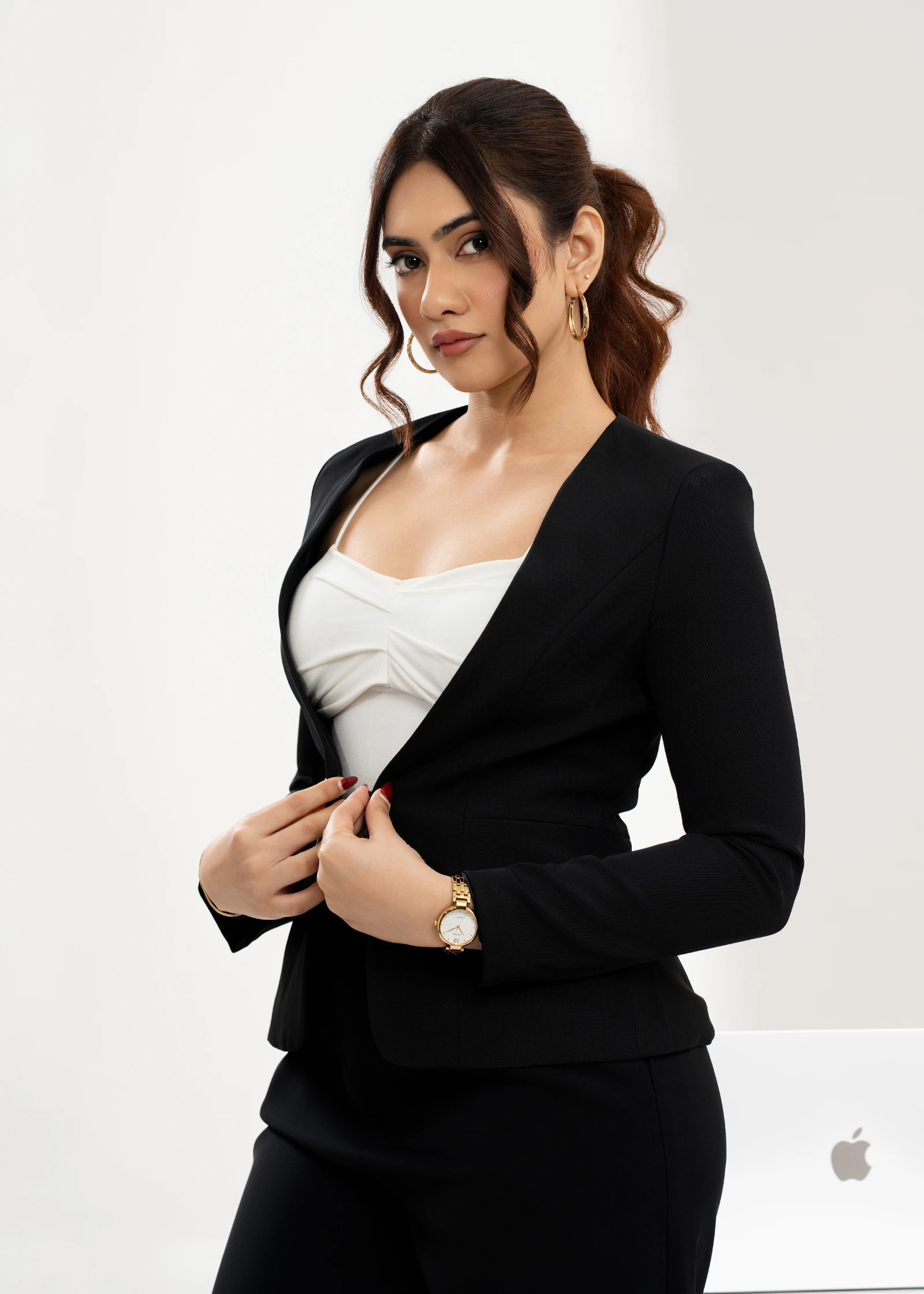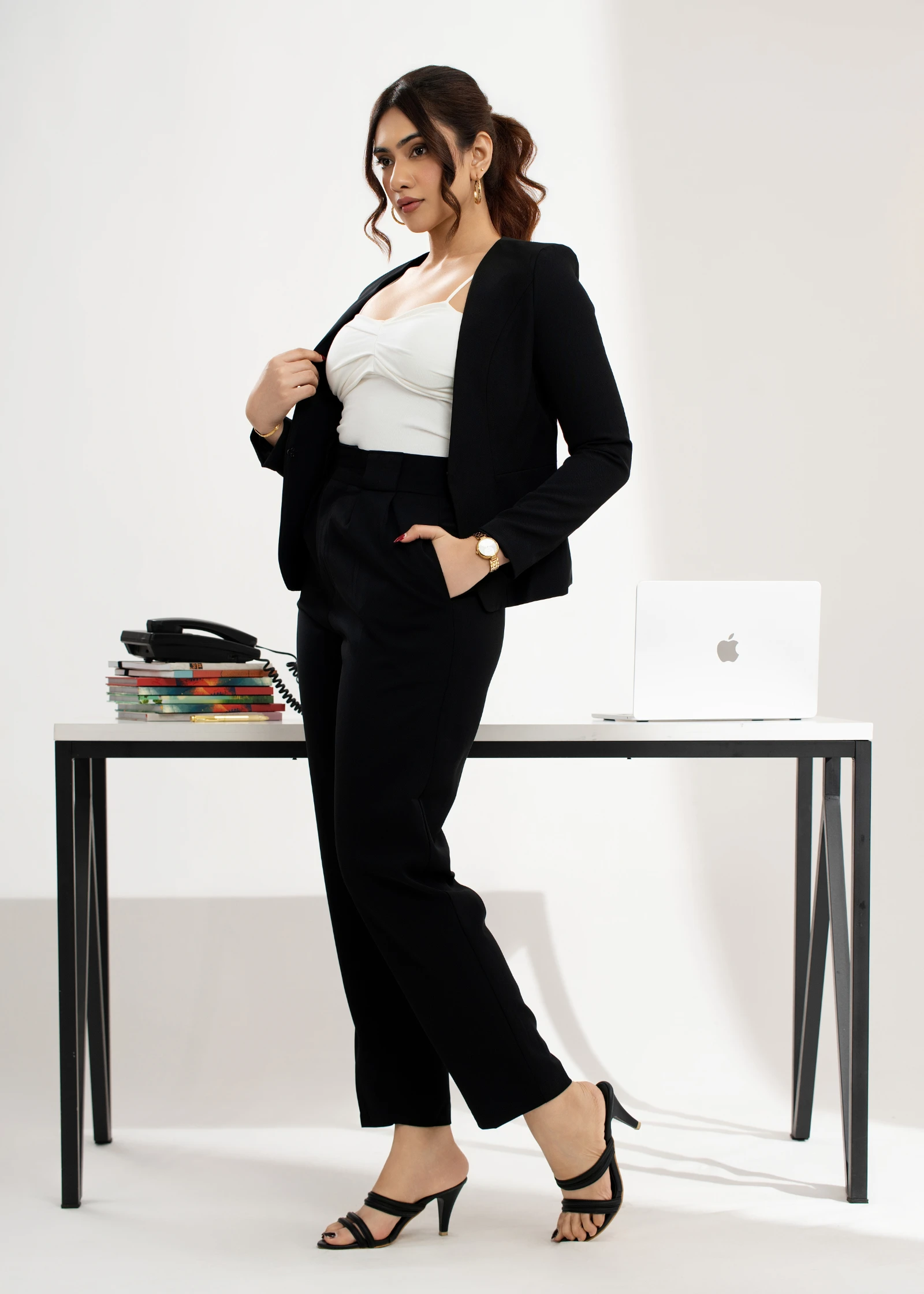 Elevate your look with the Uptown Black Open Front Blazer. This versatile piece offers a sophisticat...