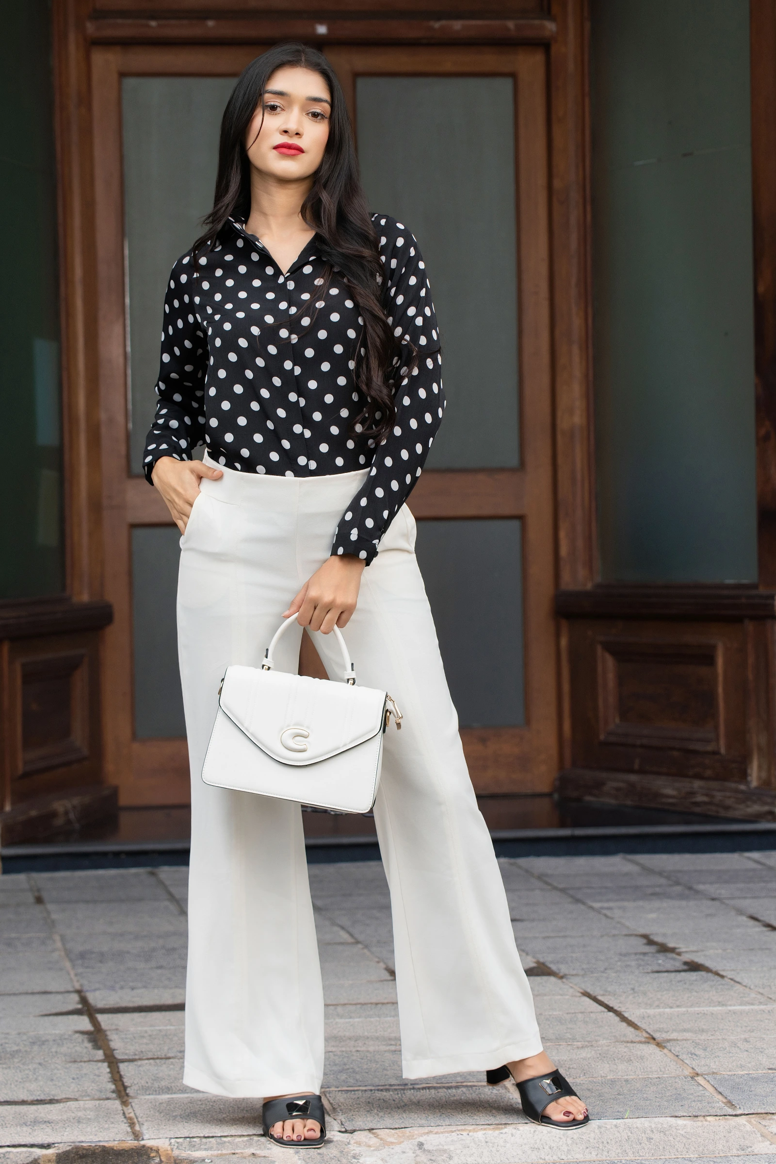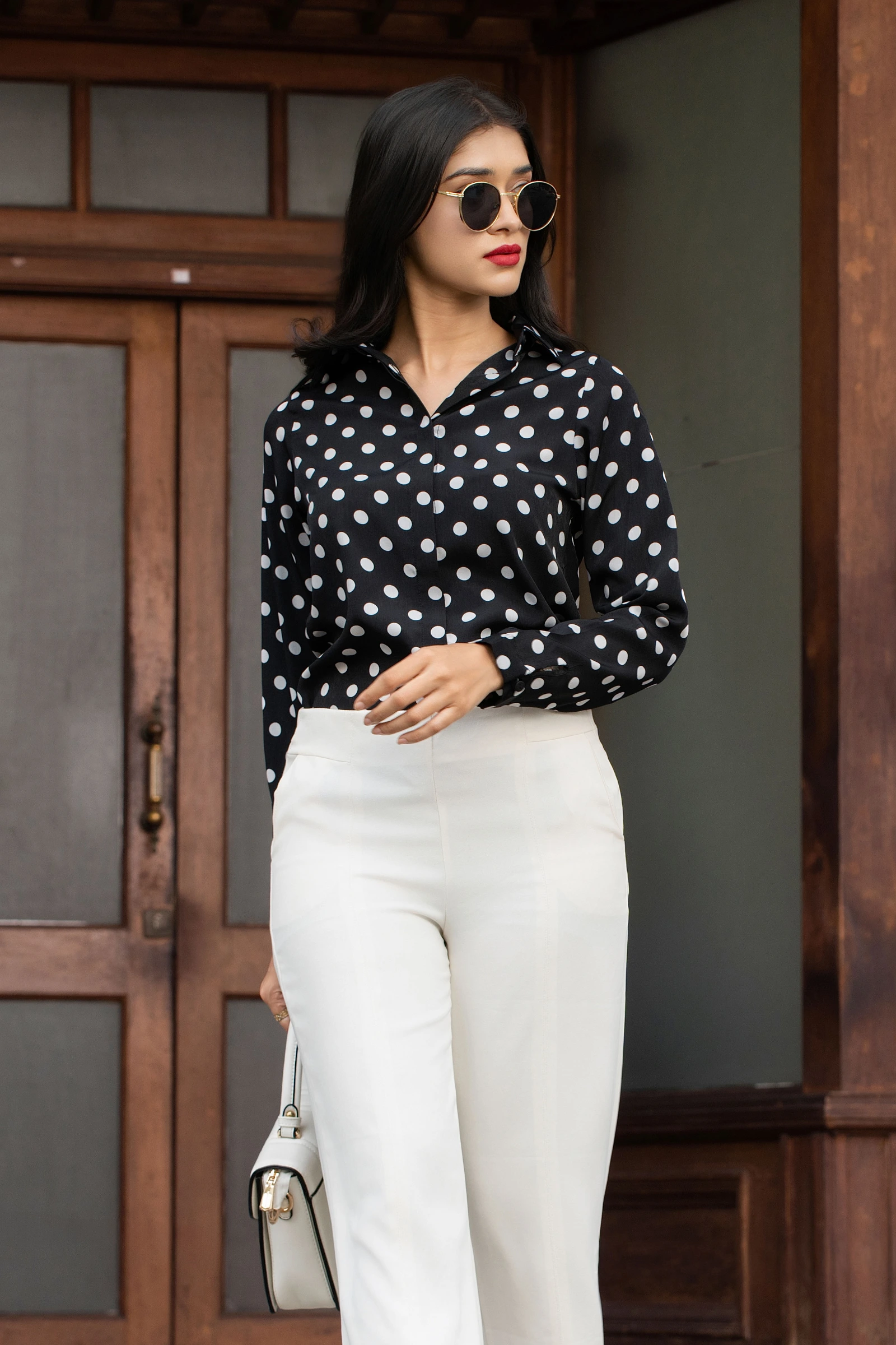 Elevate your everyday style with the Uptown Black Polka Dot Collar Top. This chic and versatile piec...