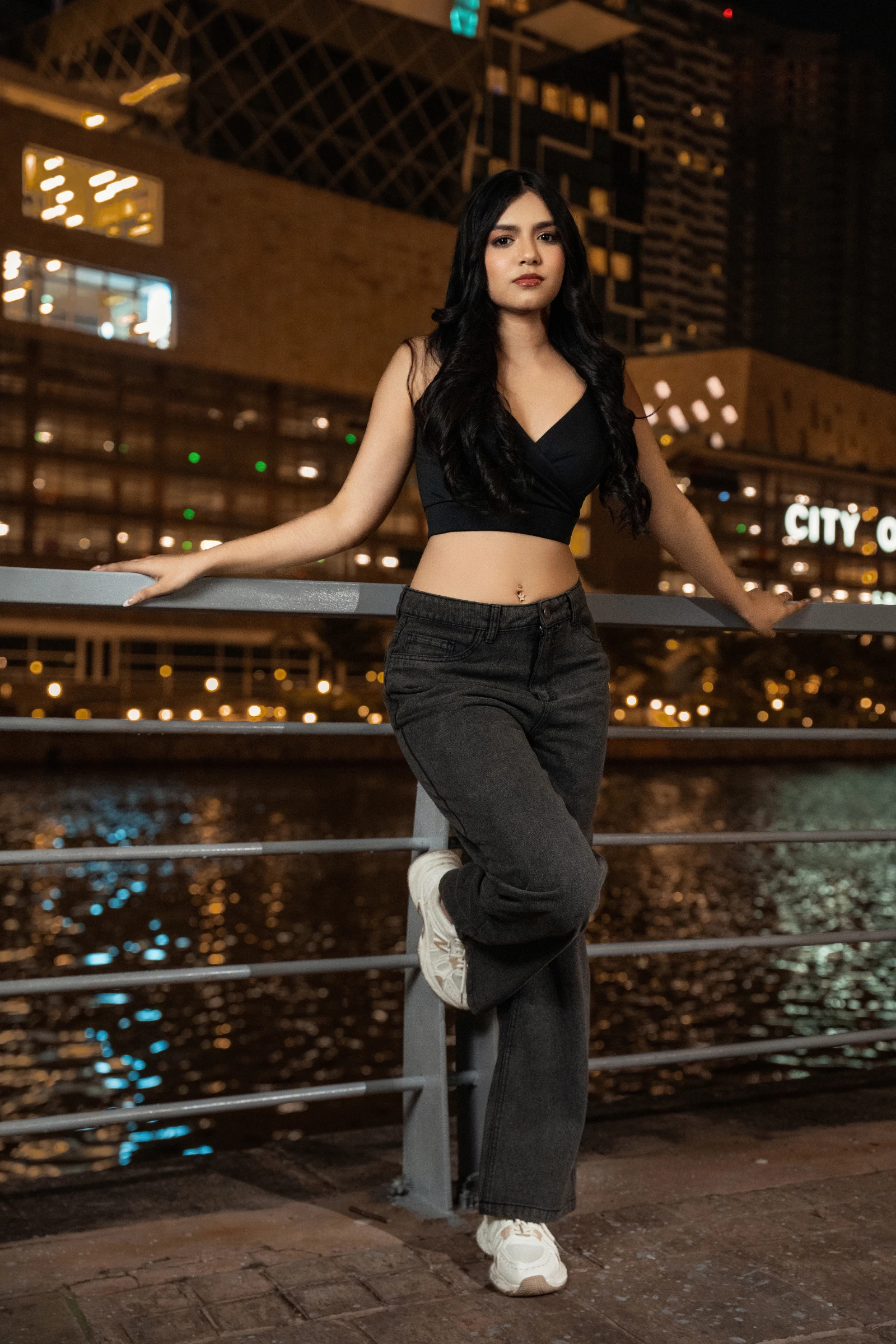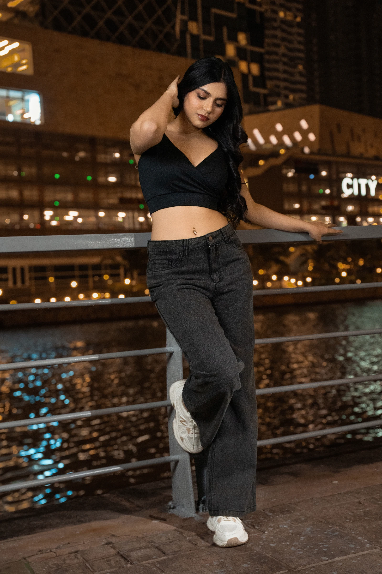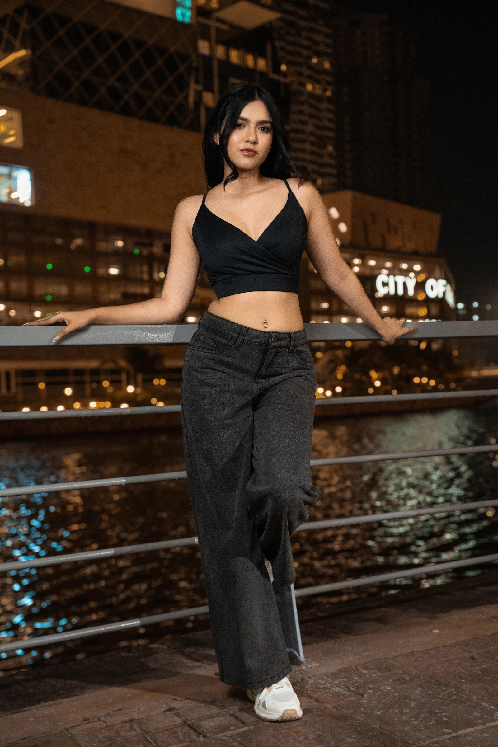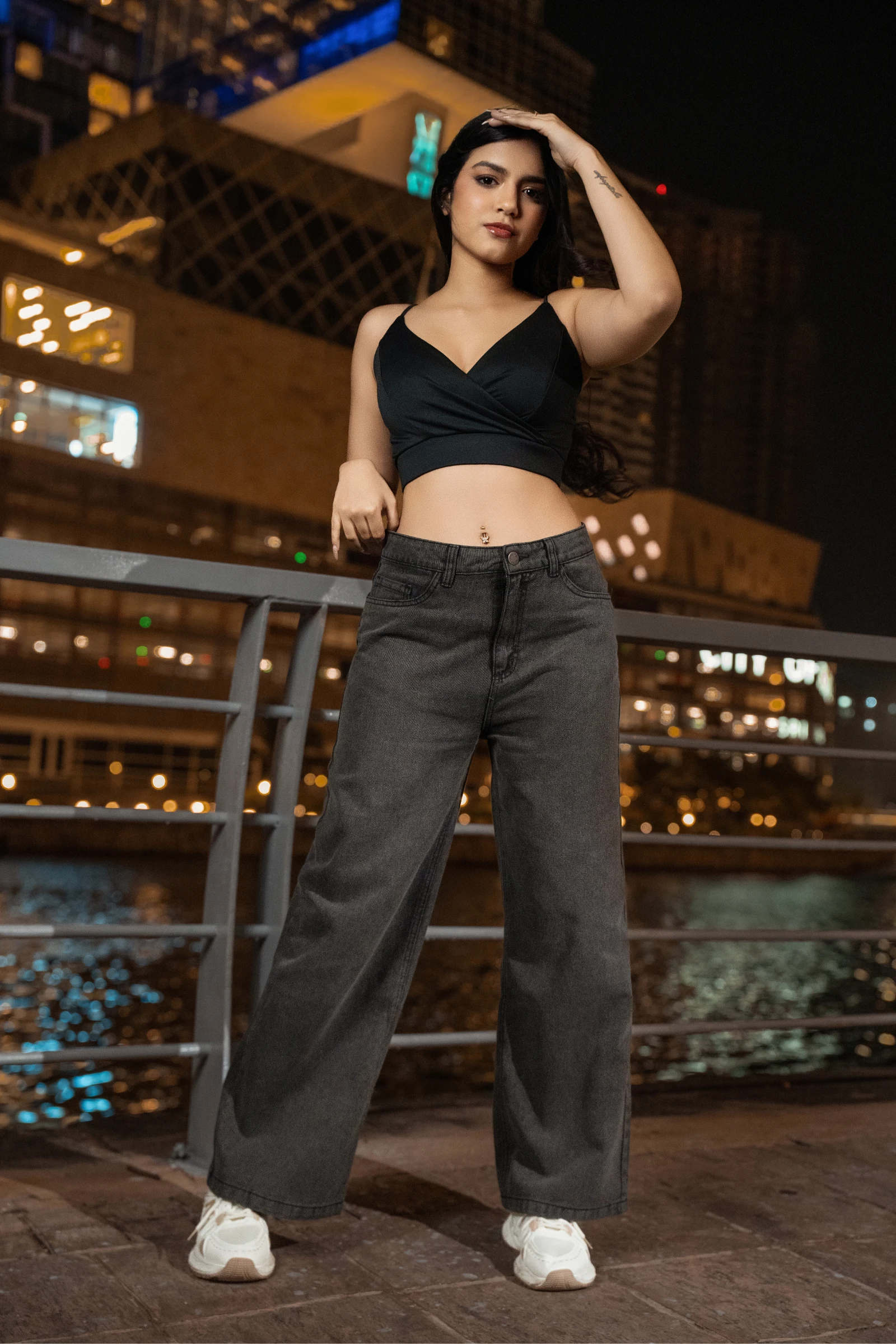 Introducing the Uptown Charcoal High-Waist Wide-Leg Jean. These jeans offer a flattering high-waist ...