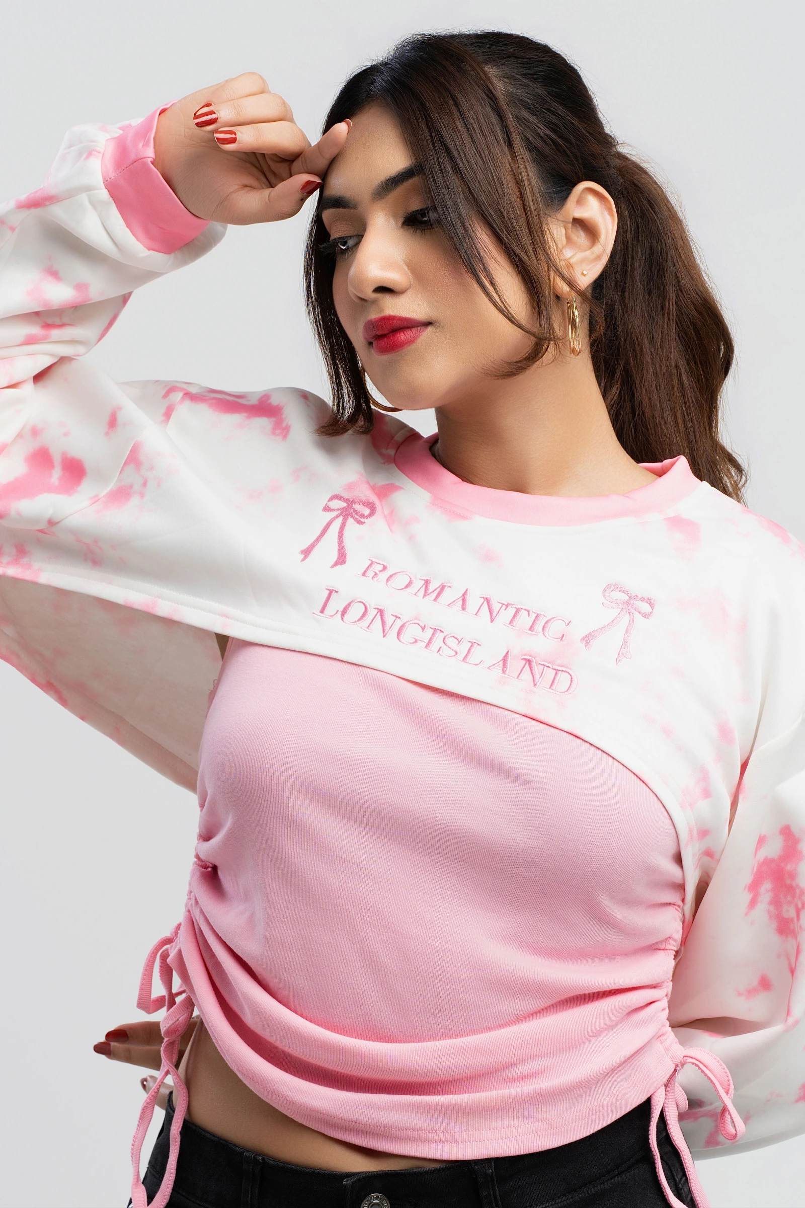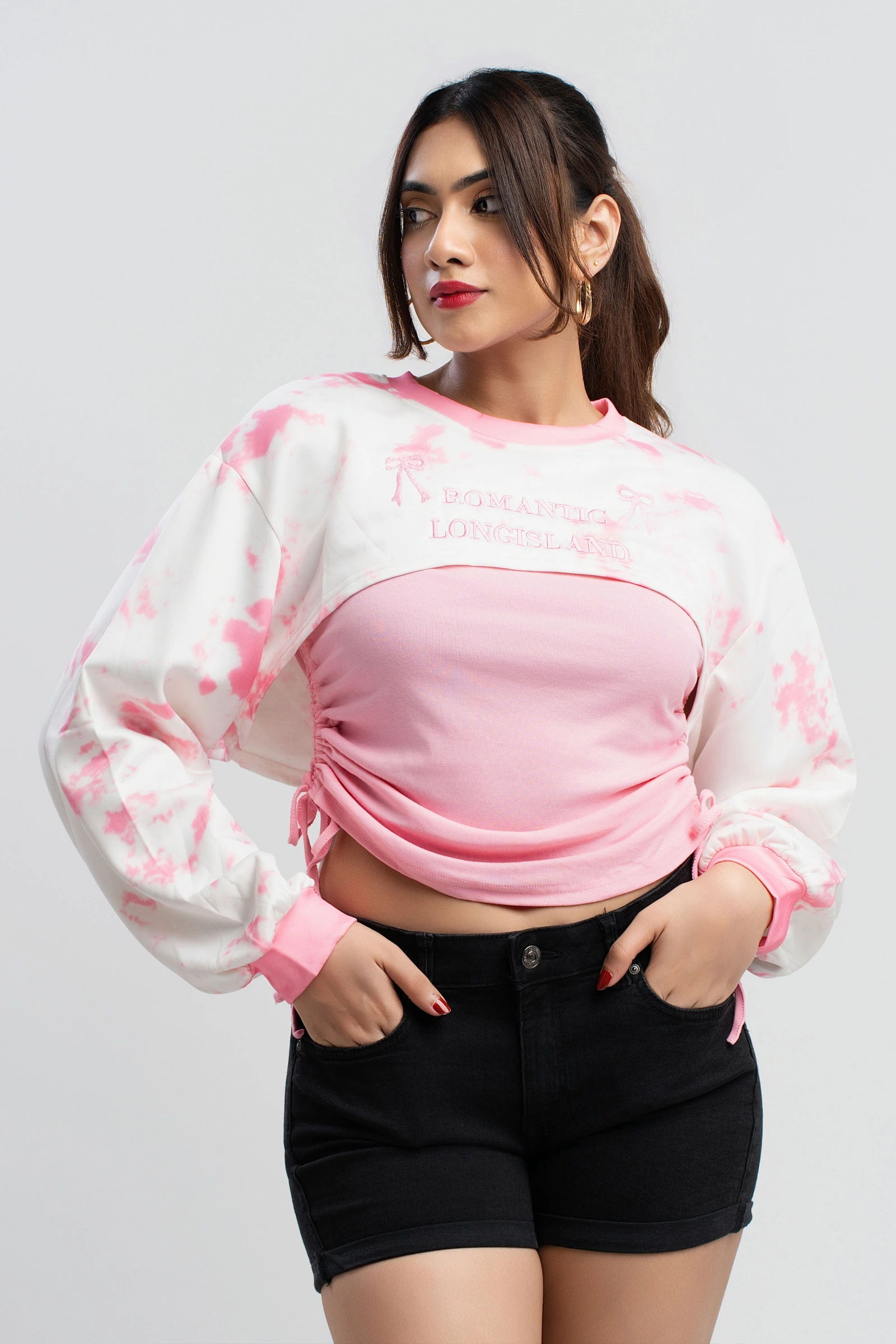 Introducing the Uptown Crewneck Two Piece Cropped Sweatshirt. This set features a comfortable, long-...
