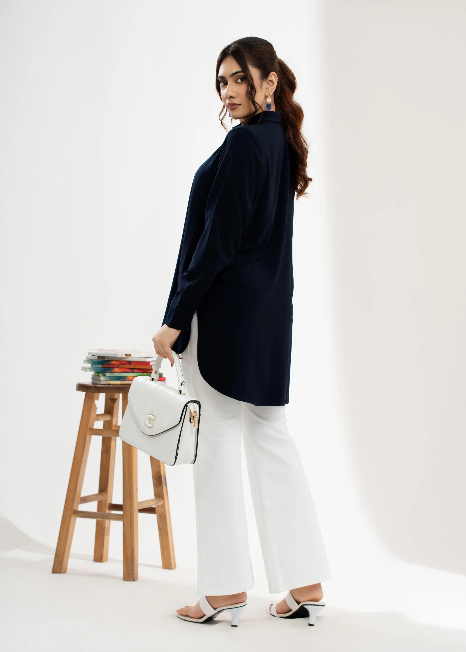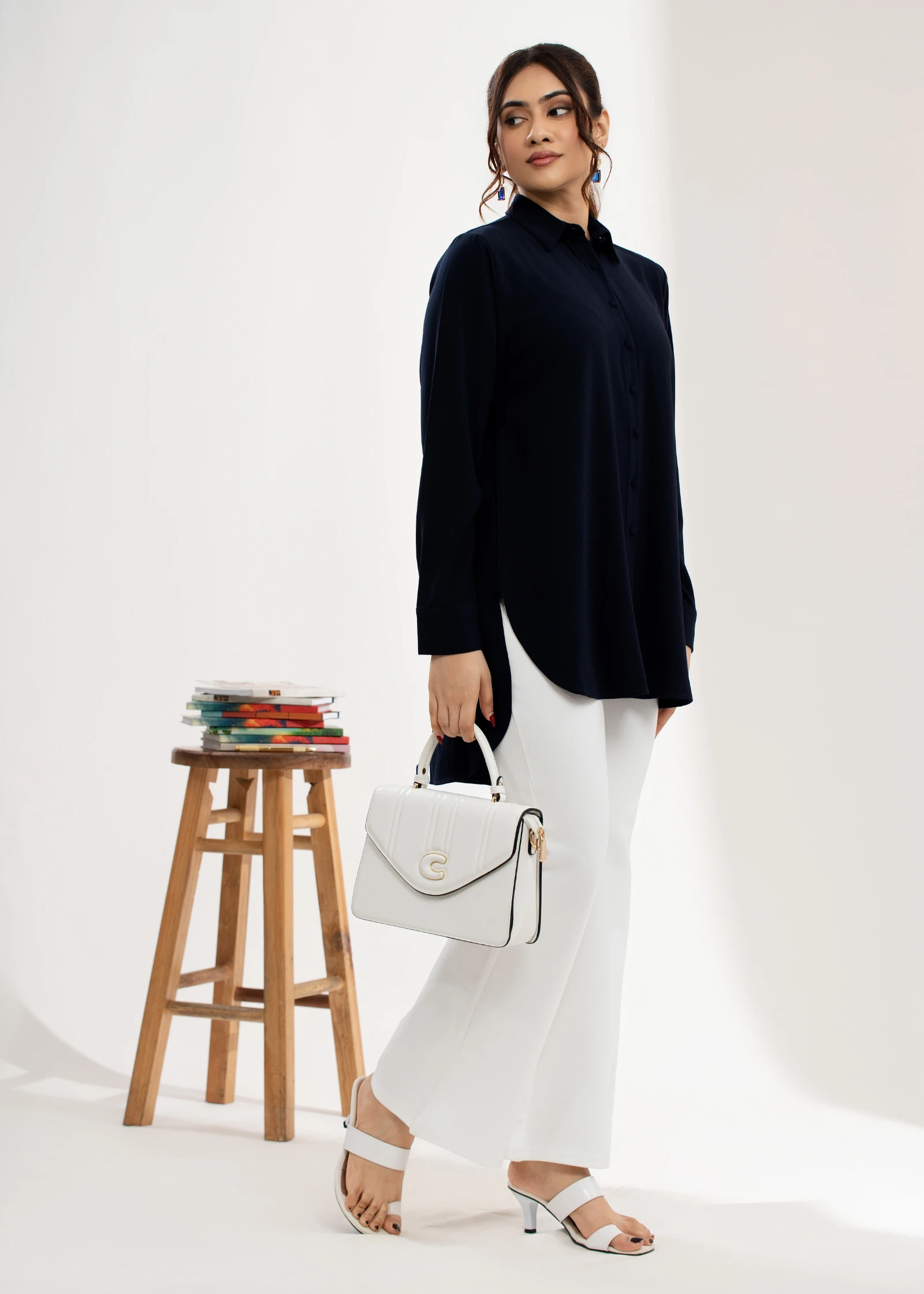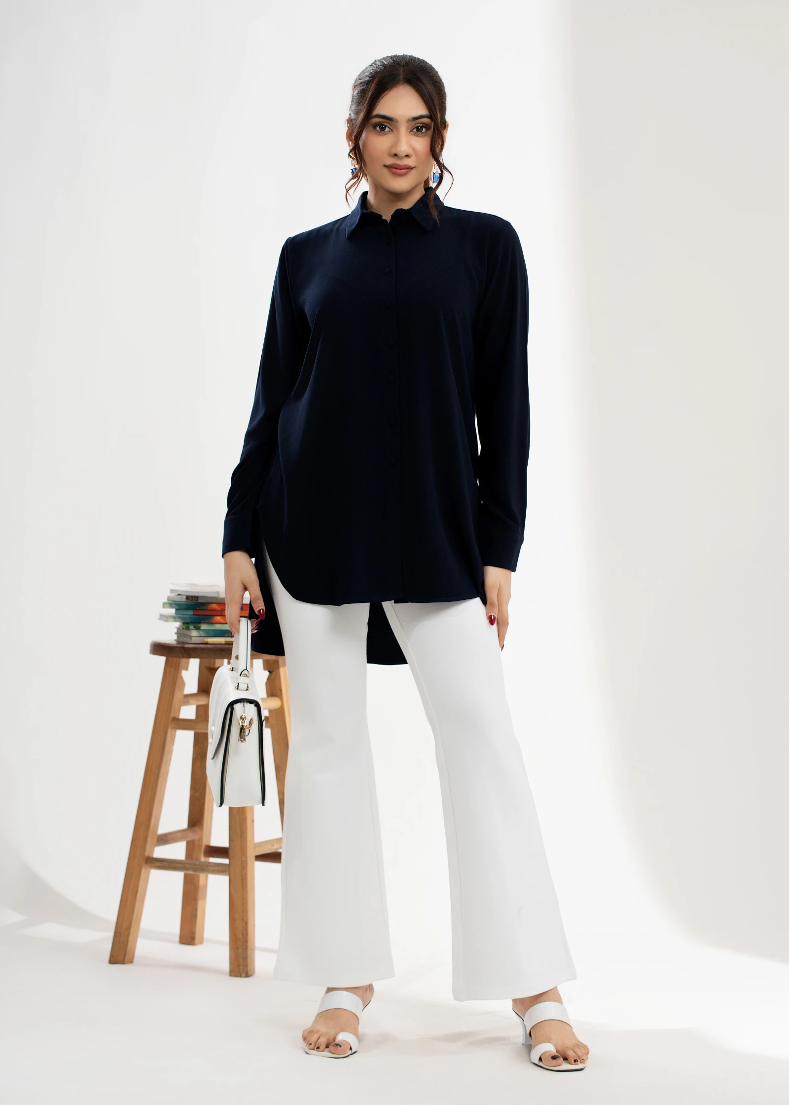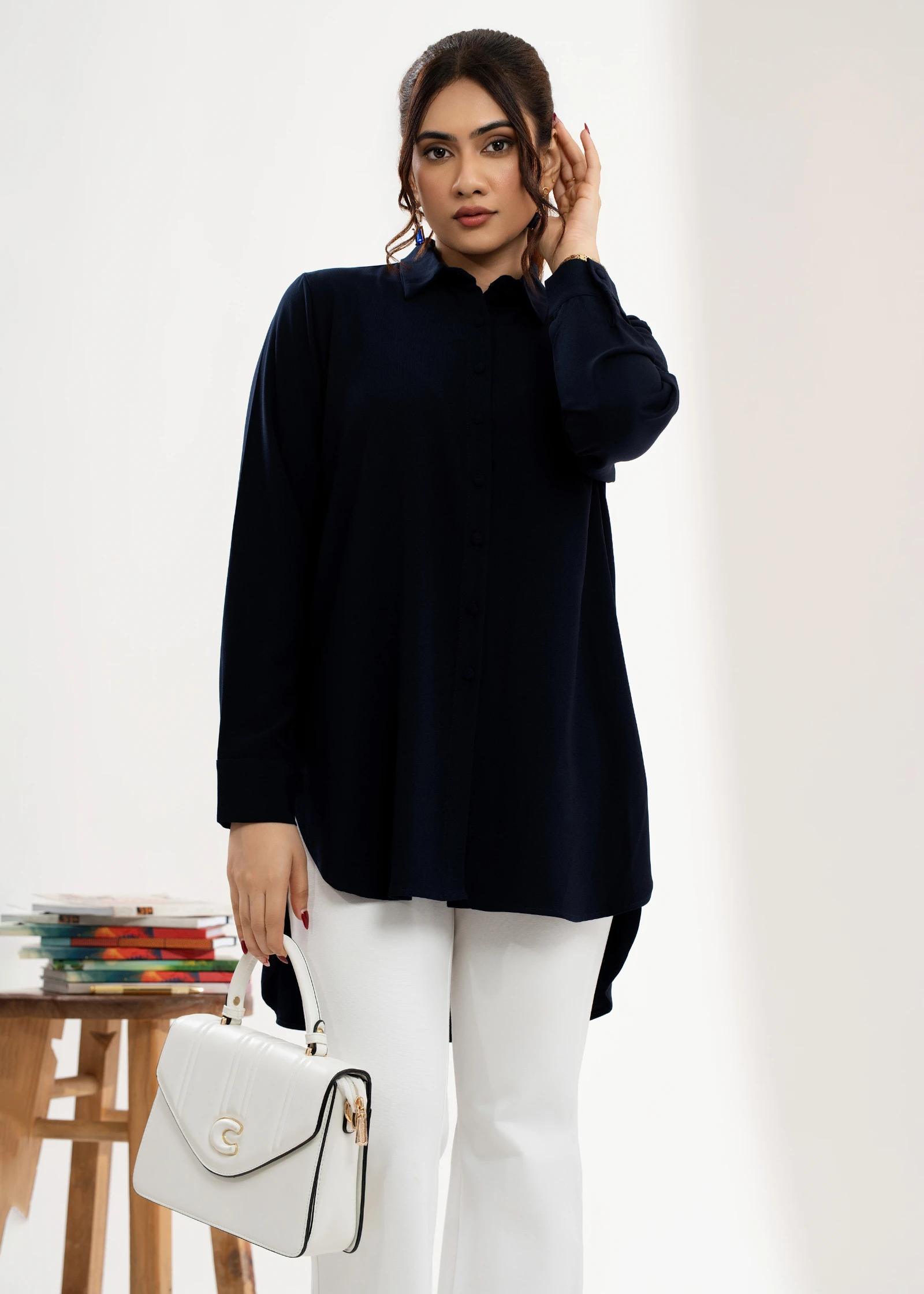 Introducing the Uptown Dark Blue Shirt Collar Tunic Top. Effortlessly chic and versatile, this tunic...
