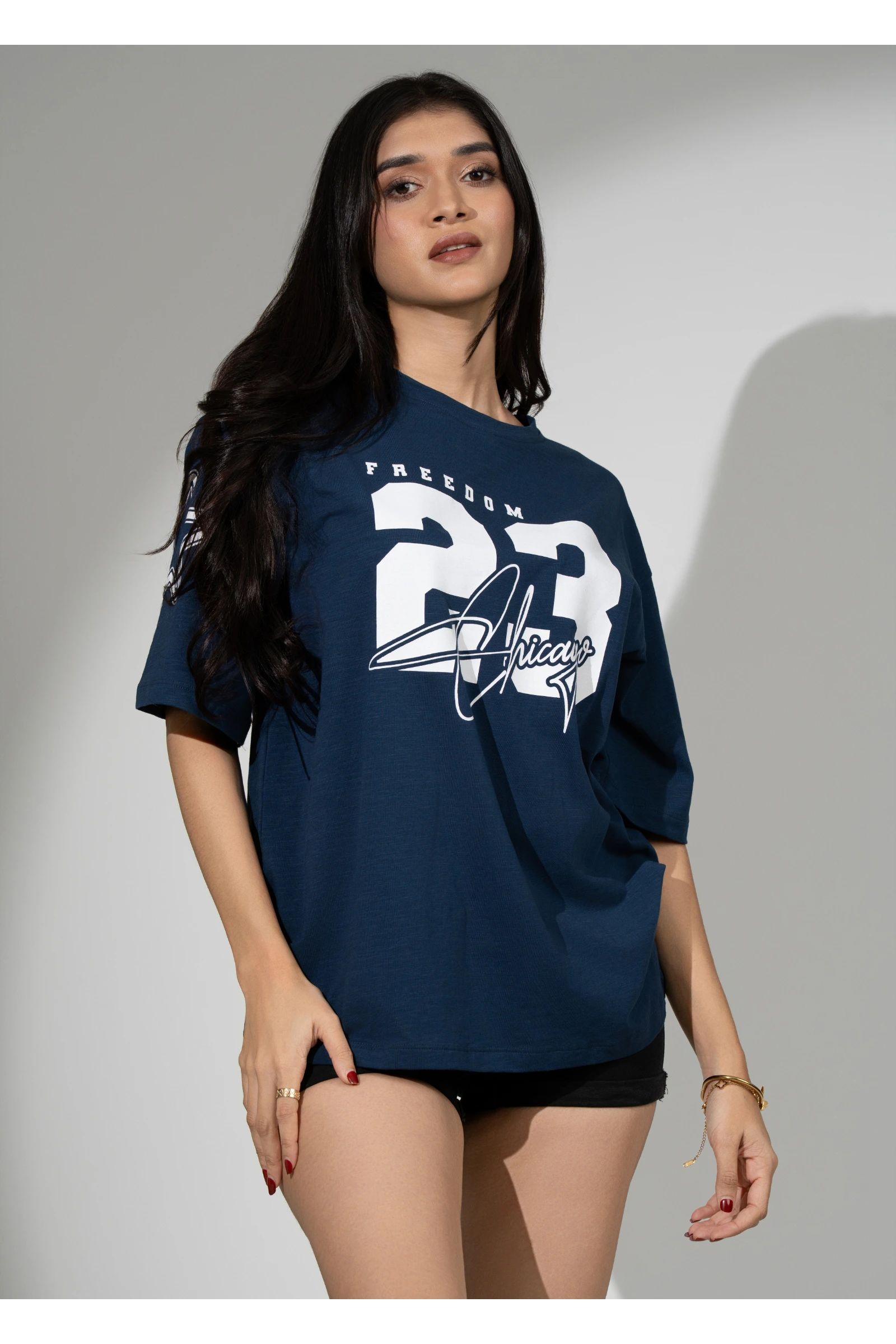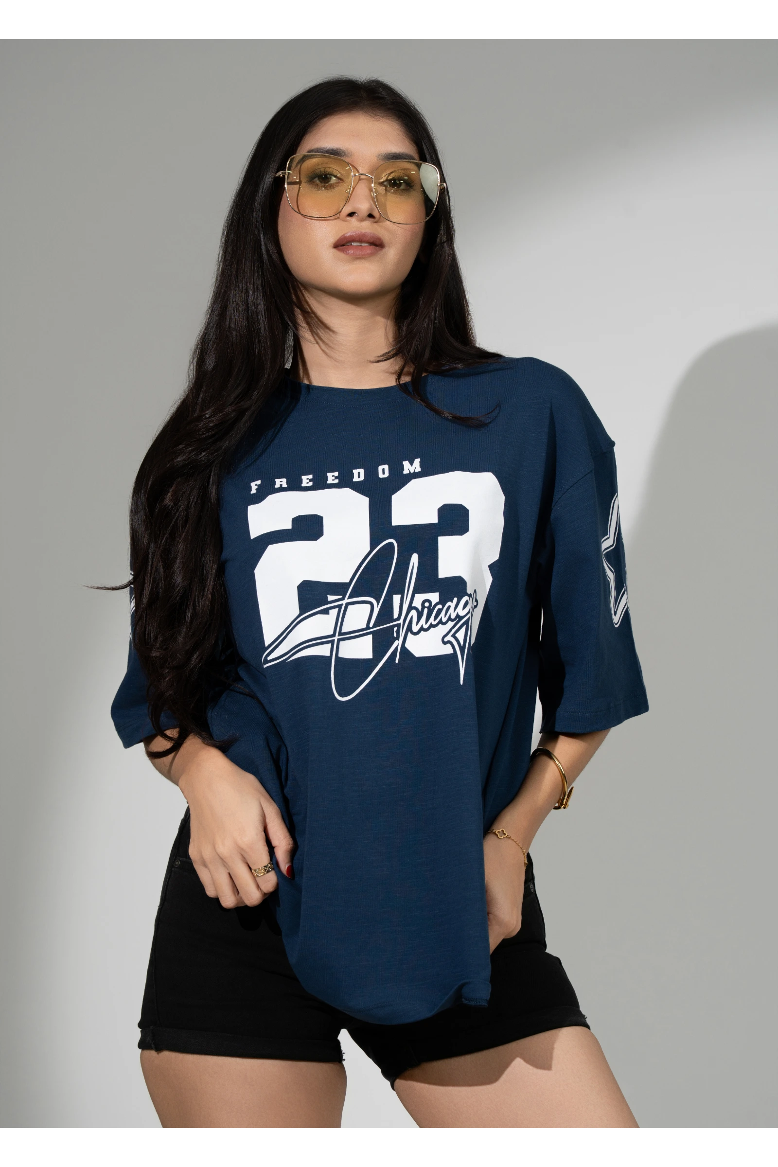 Embrace effortless style with the Uptown Freedom Print Oversized T-shirt. This ultra-comfortable tee...