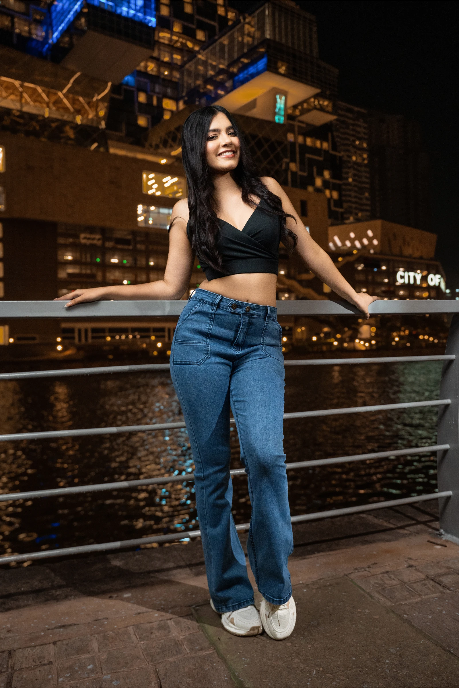 Elevate your denim game with the Uptown High-Waist Flare Jean. Featuring a flattering high-rise silh...