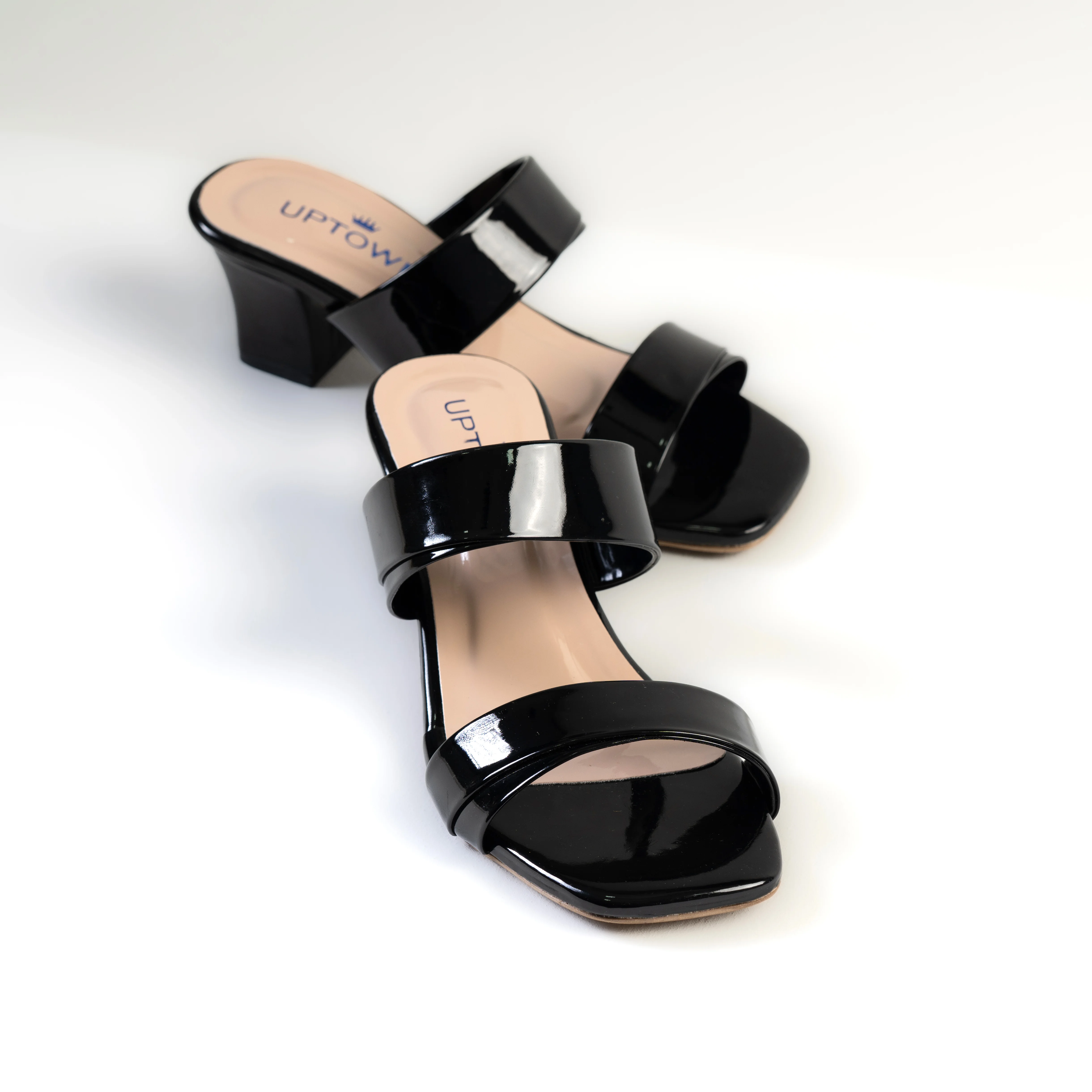 Elevate your look with the Uptown Open Toe Two Strap Black Heel. These chic heels feature a sophisti...