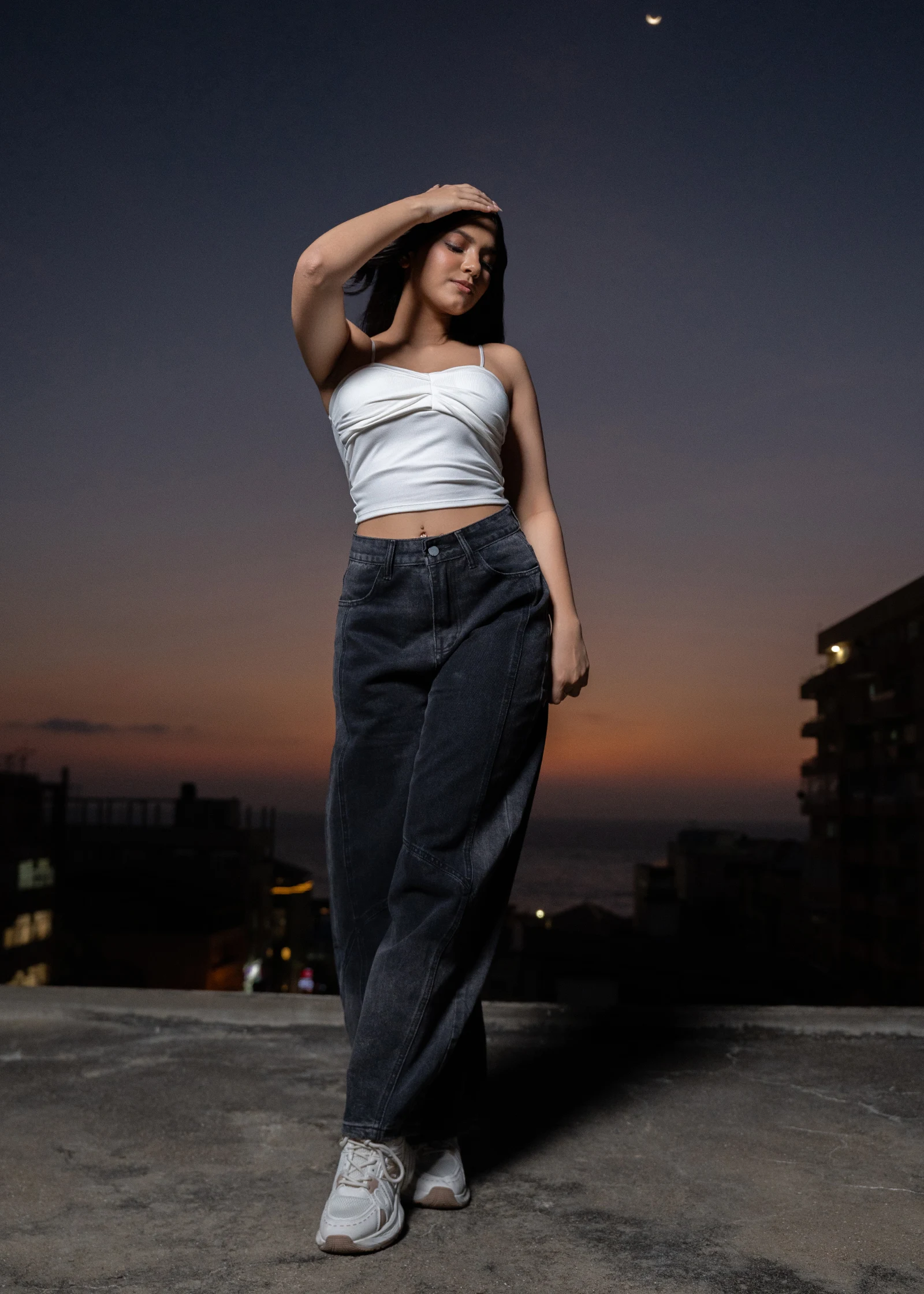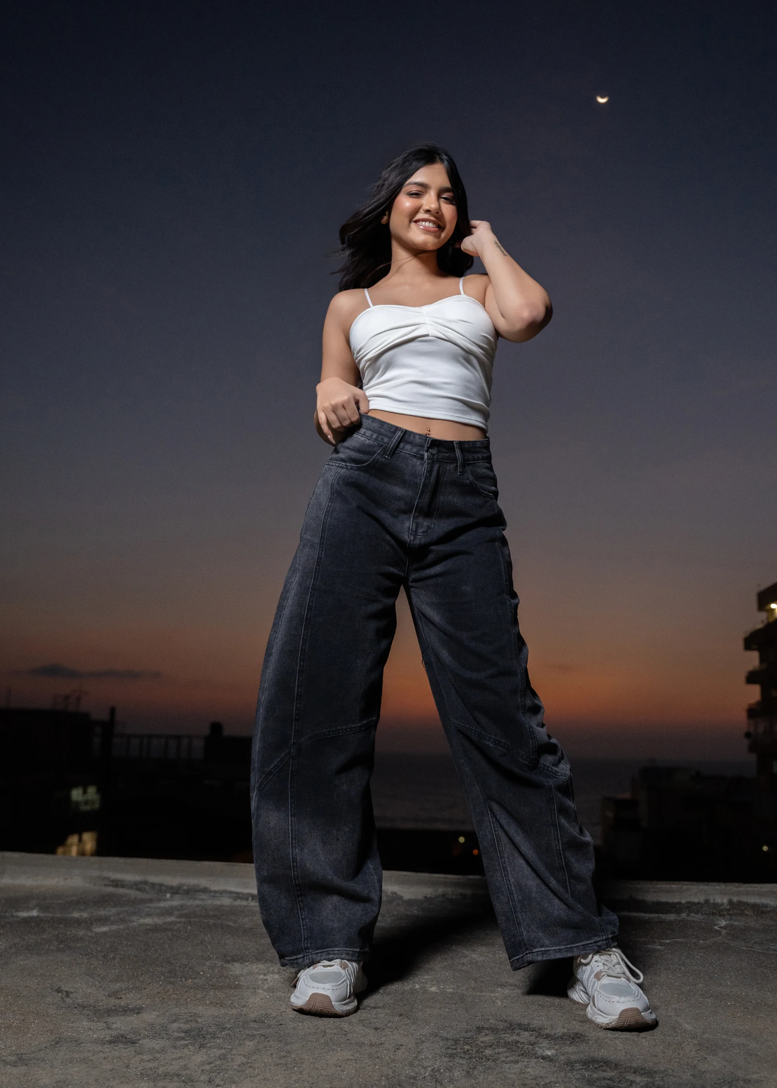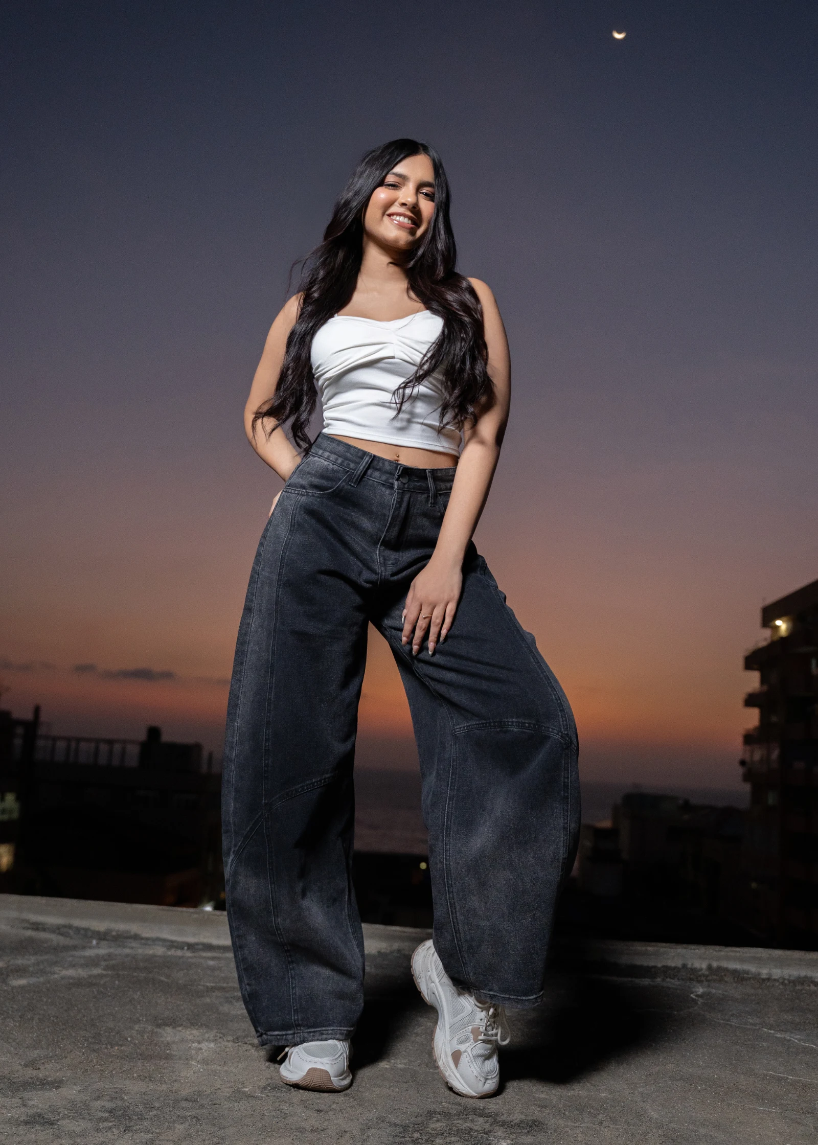 Elevate your denim collection with our Uptown Panelled Cropped Wide-leg Jeans. These jeans offer a m...