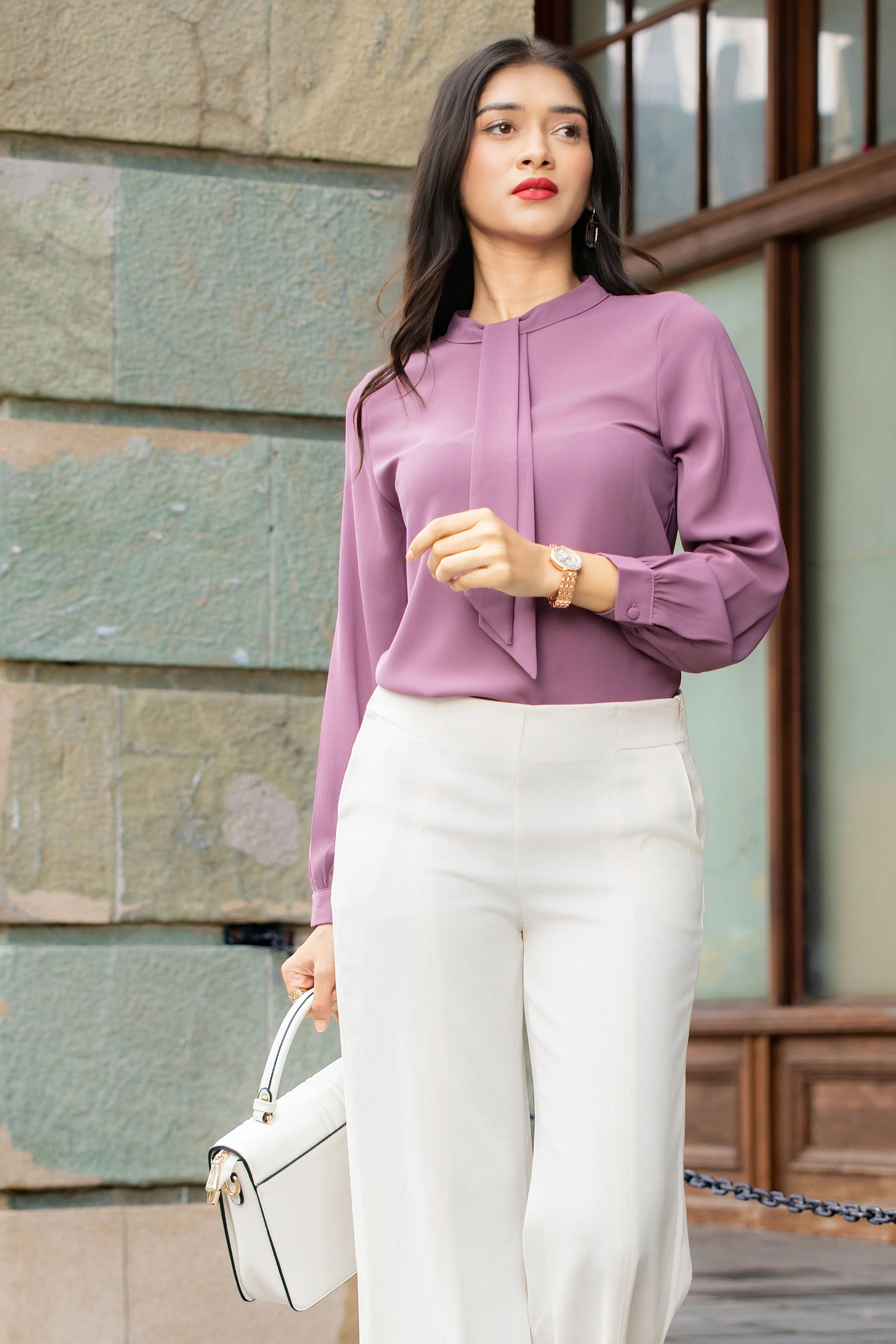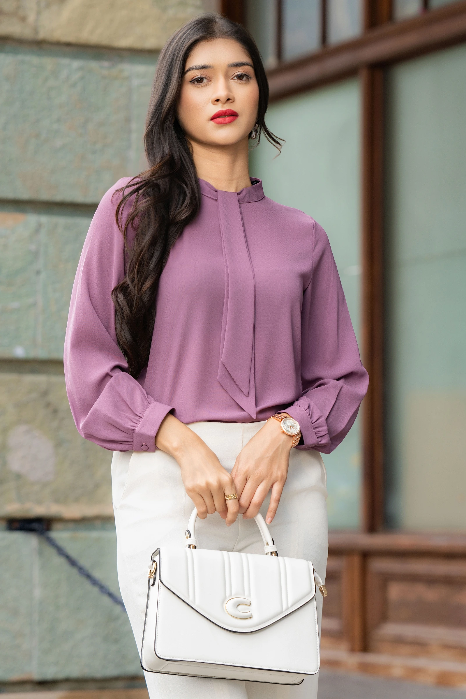 Elevate your everyday style with the Uptown Pussybow Long Sleeve Top. This chic and versatile top fe...