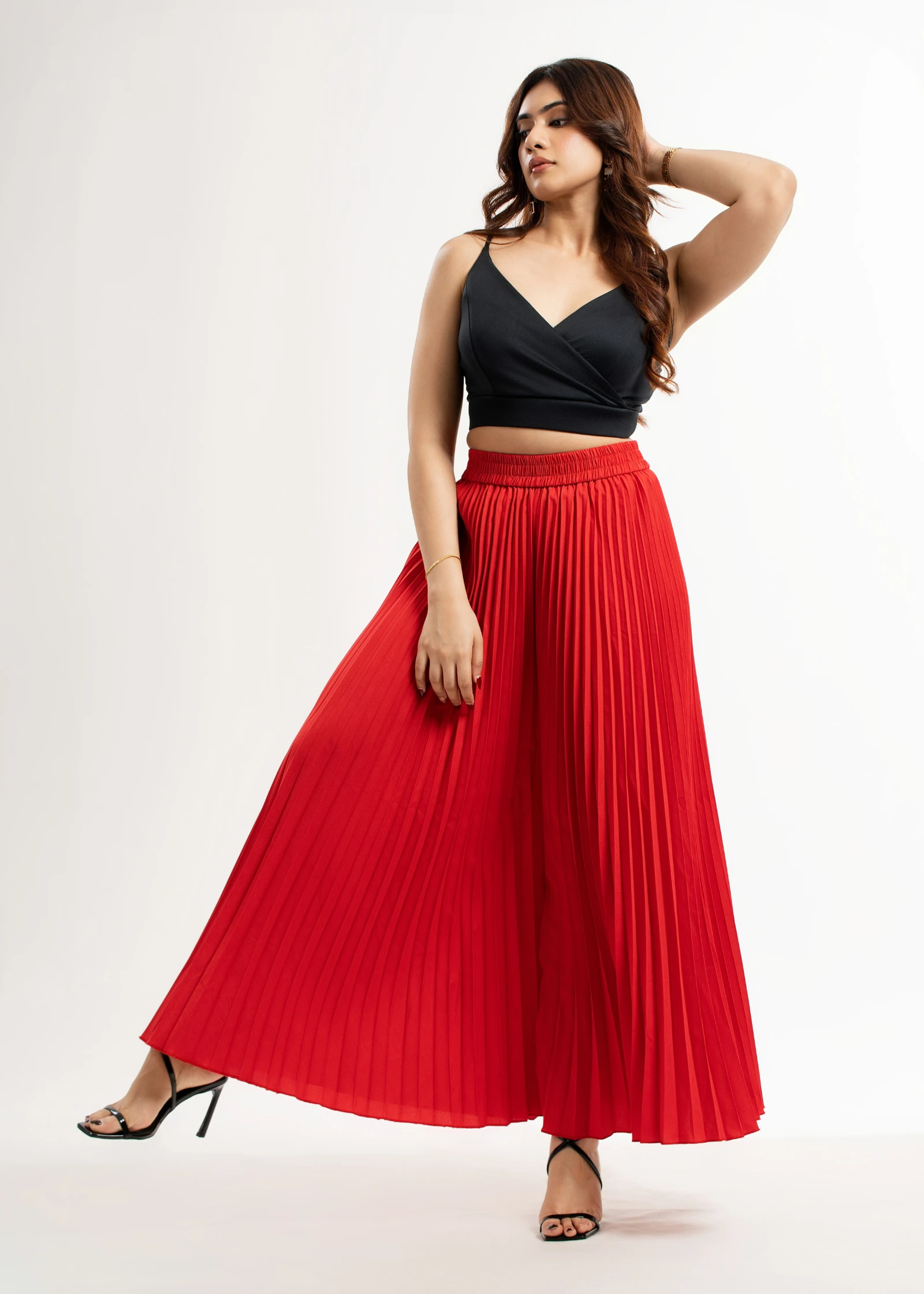 Effortlessly chic and undeniably stylish, the Uptown Red Pleated Palazzo Pant is your new go-to for ...
