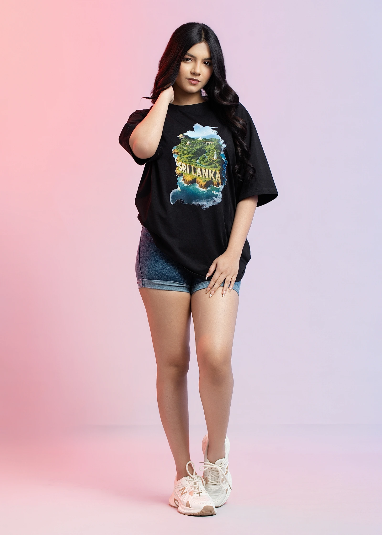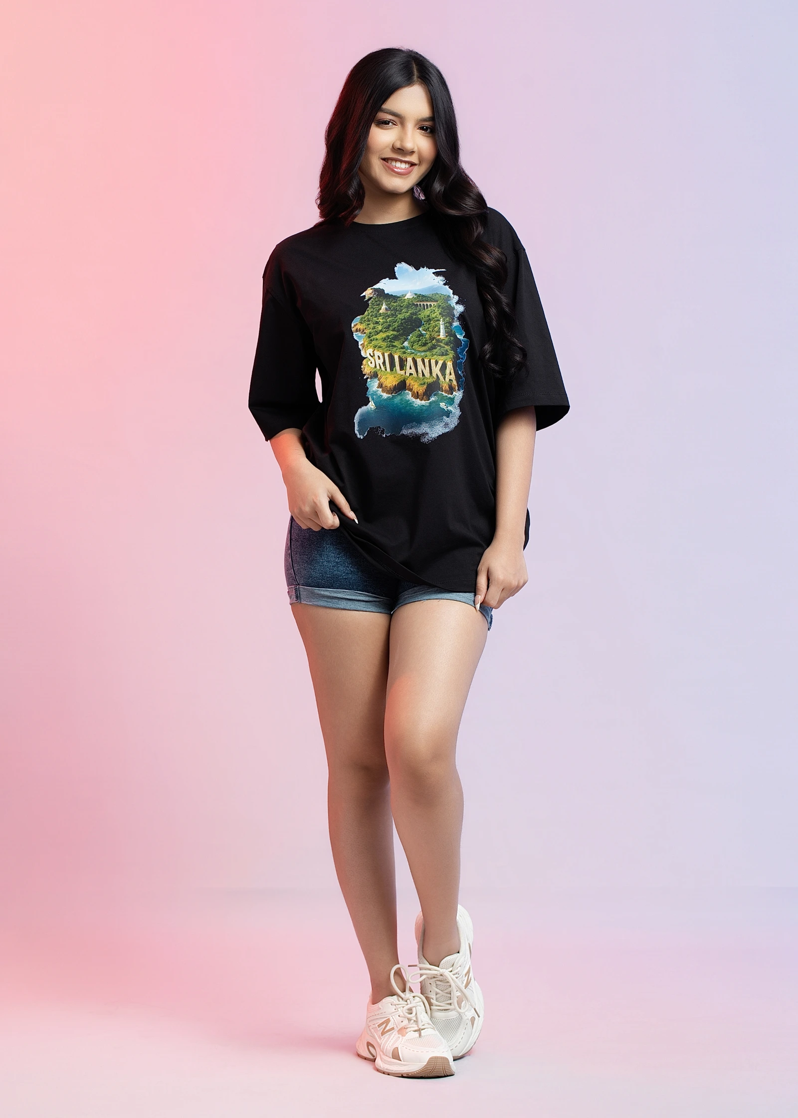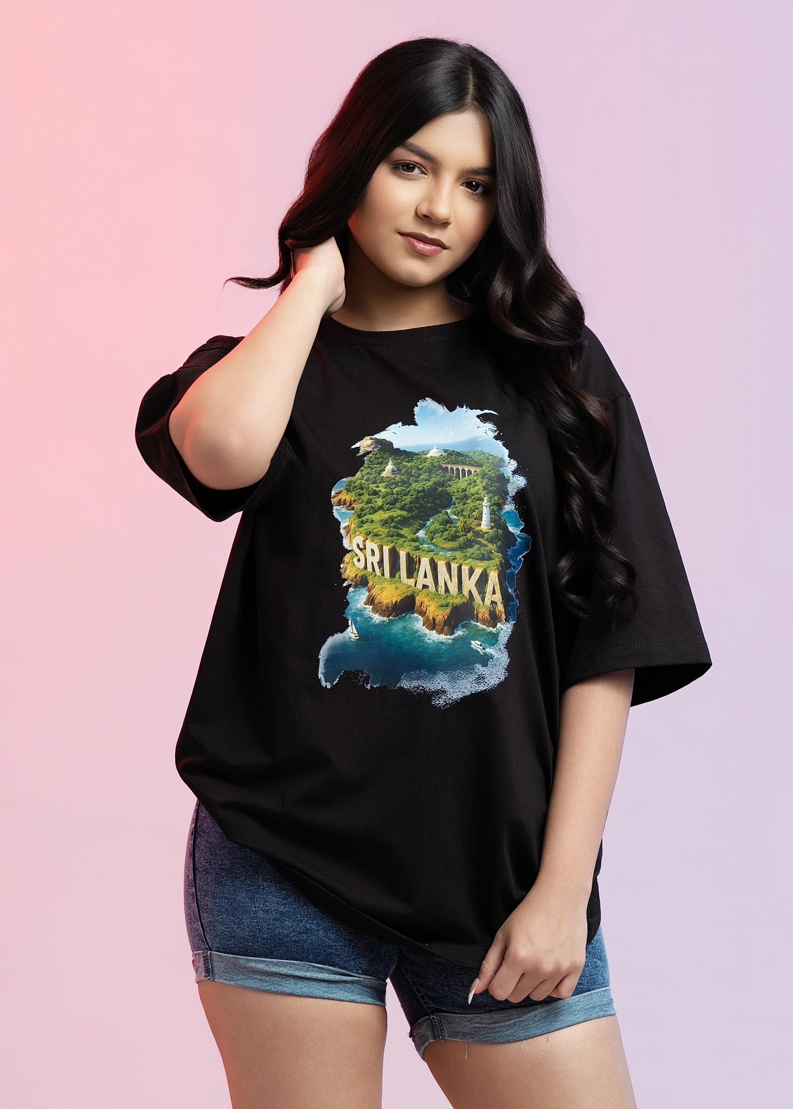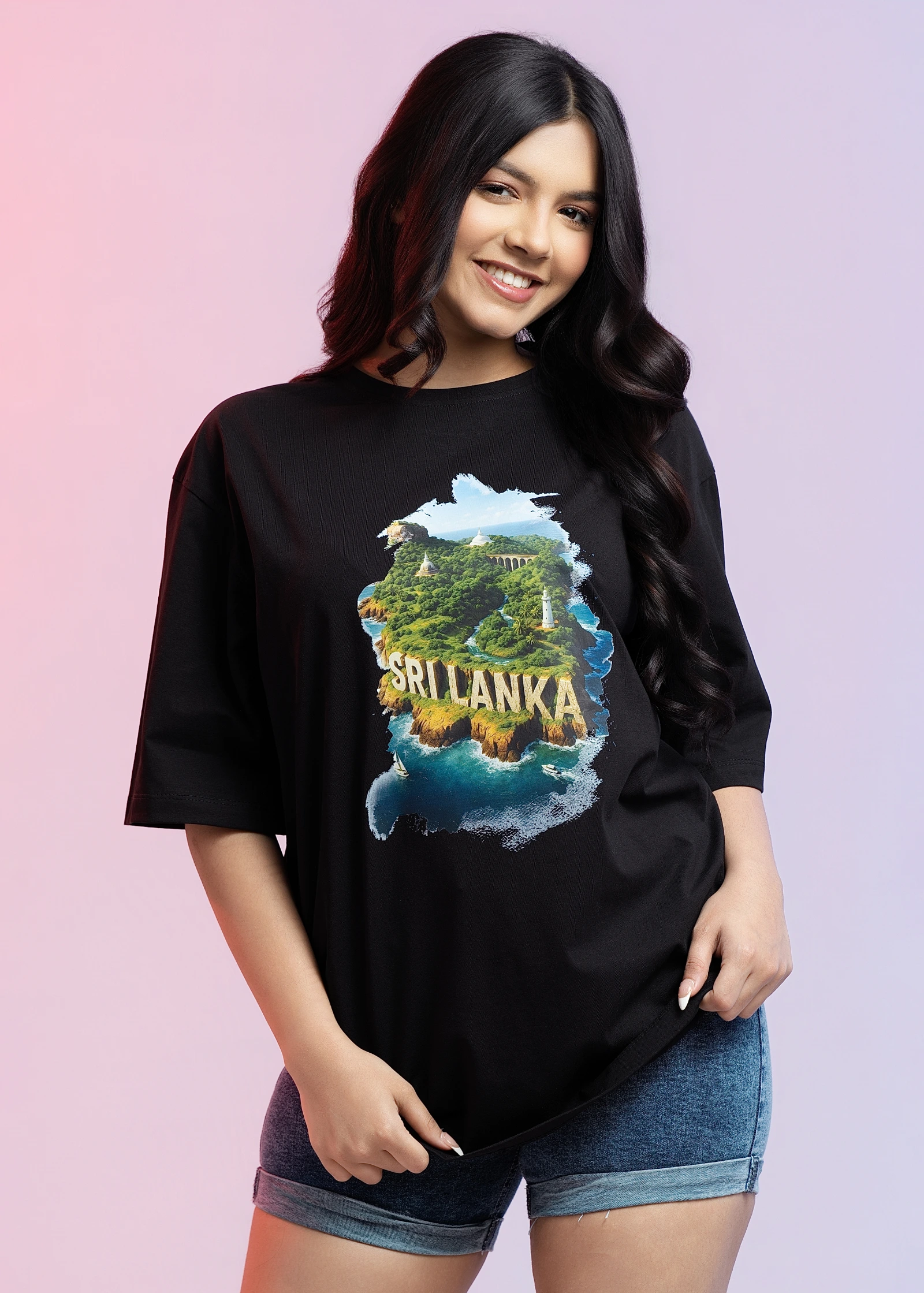 Introducing the Uptown Sri Lanka Black Oversized T-Shirt. This comfortable and stylish tee features ...