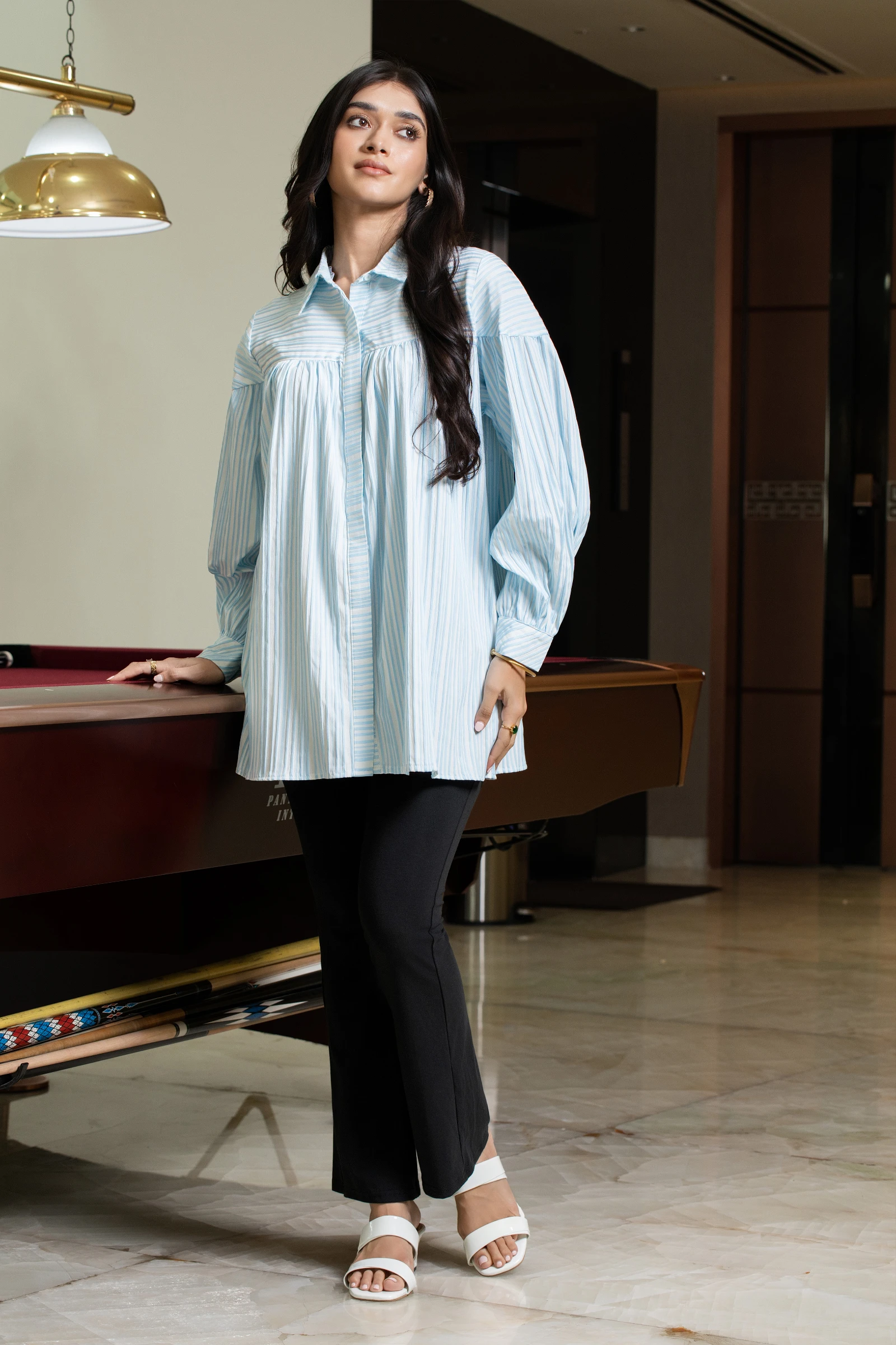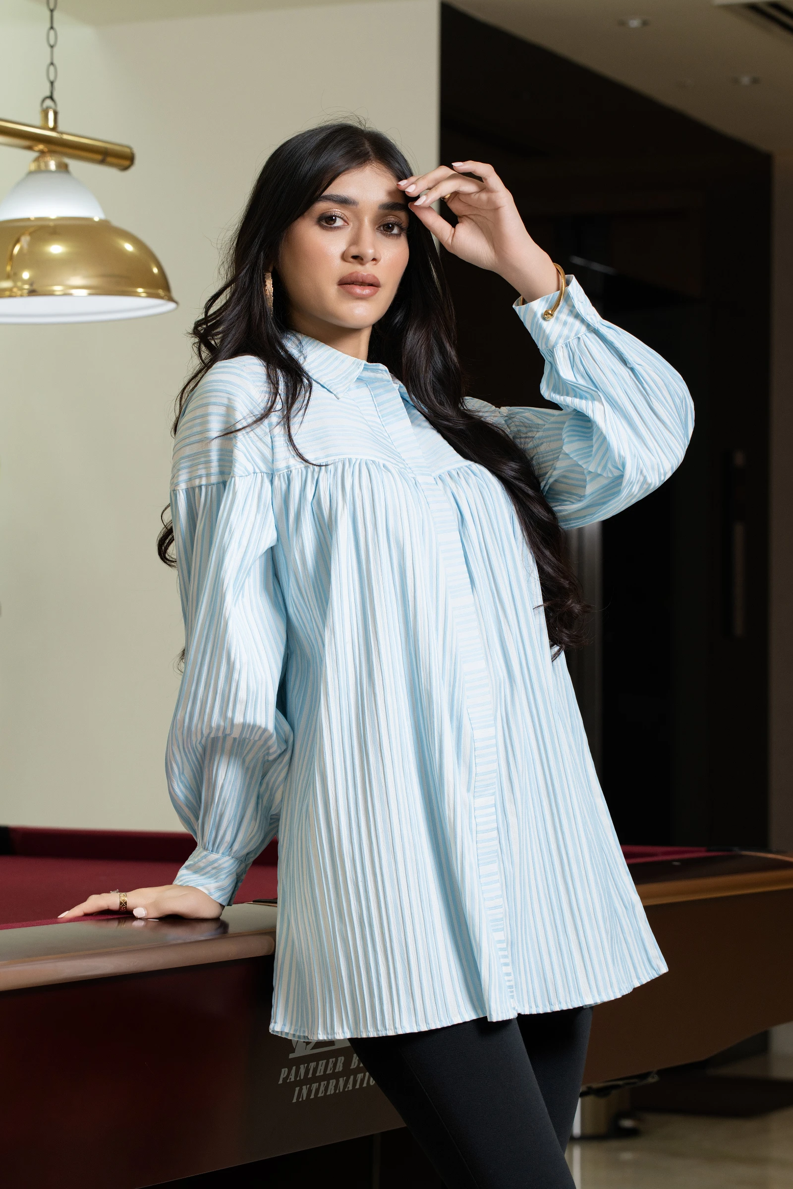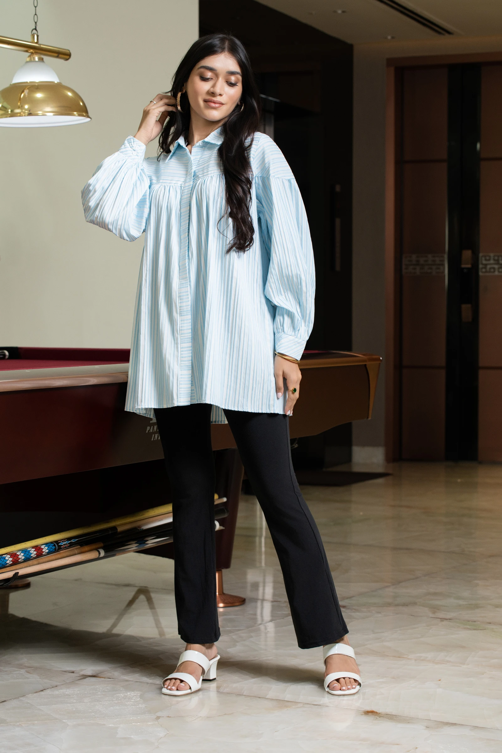 Introducing the Uptown Stripe Collar Long Sleeve Top, a versatile and stylish addition to your wardr...