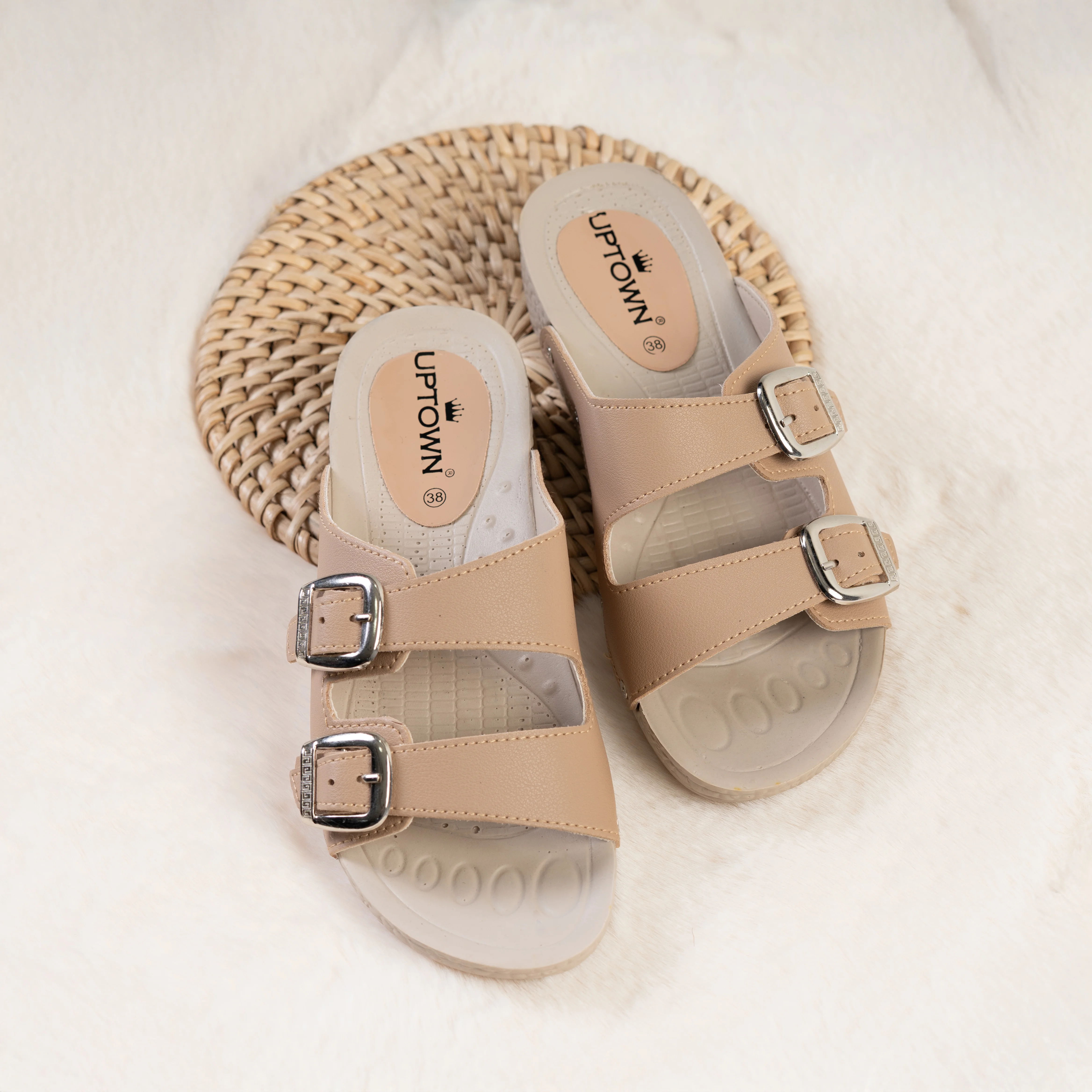 Introducing the Uptown Two-Strap Buckle Sandal. Effortless style meets everyday comfort with these c...