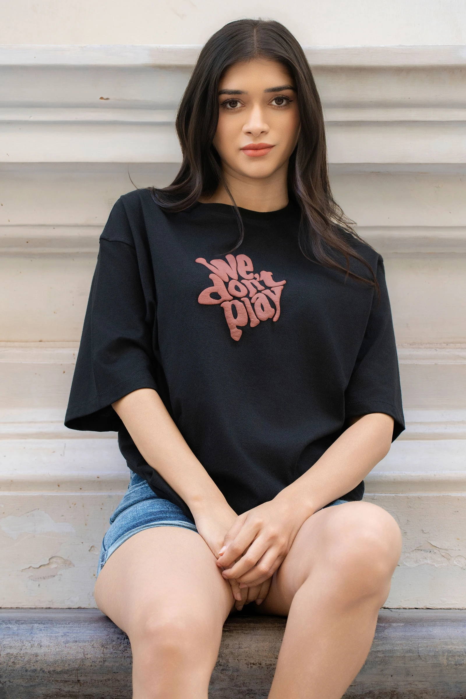 Embrace effortless cool with the Uptown We Don't Play Oversized T-Shirt. This premium tee offers a r...
