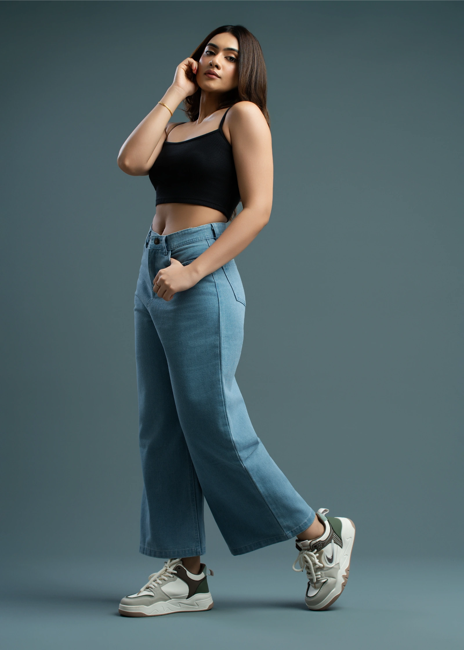Effortlessly chic, the Uptown Wide Leg Jean offers a sophisticated silhouette in premium non-stretch...