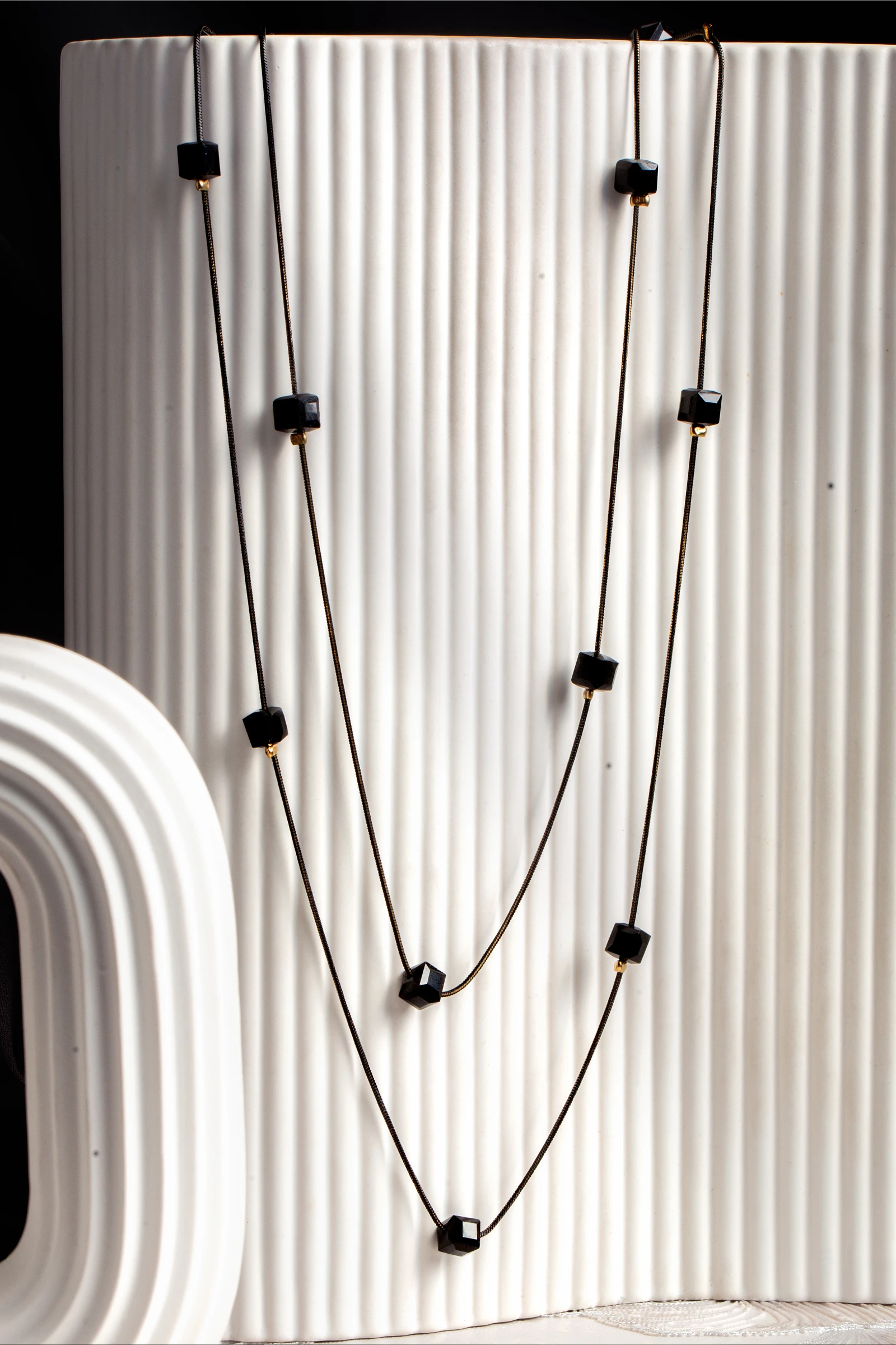 Elegant black square charm necklaces. A sophisticated statement piece, perfect for everyday wear or...