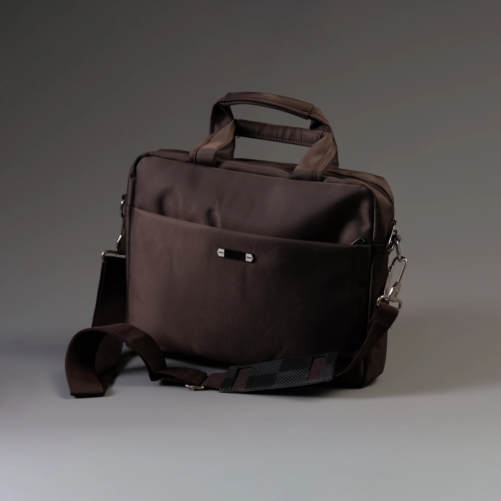 A sophisticated dark brown laptop shoulder bag designed for the modern fashion professional. Crafted...