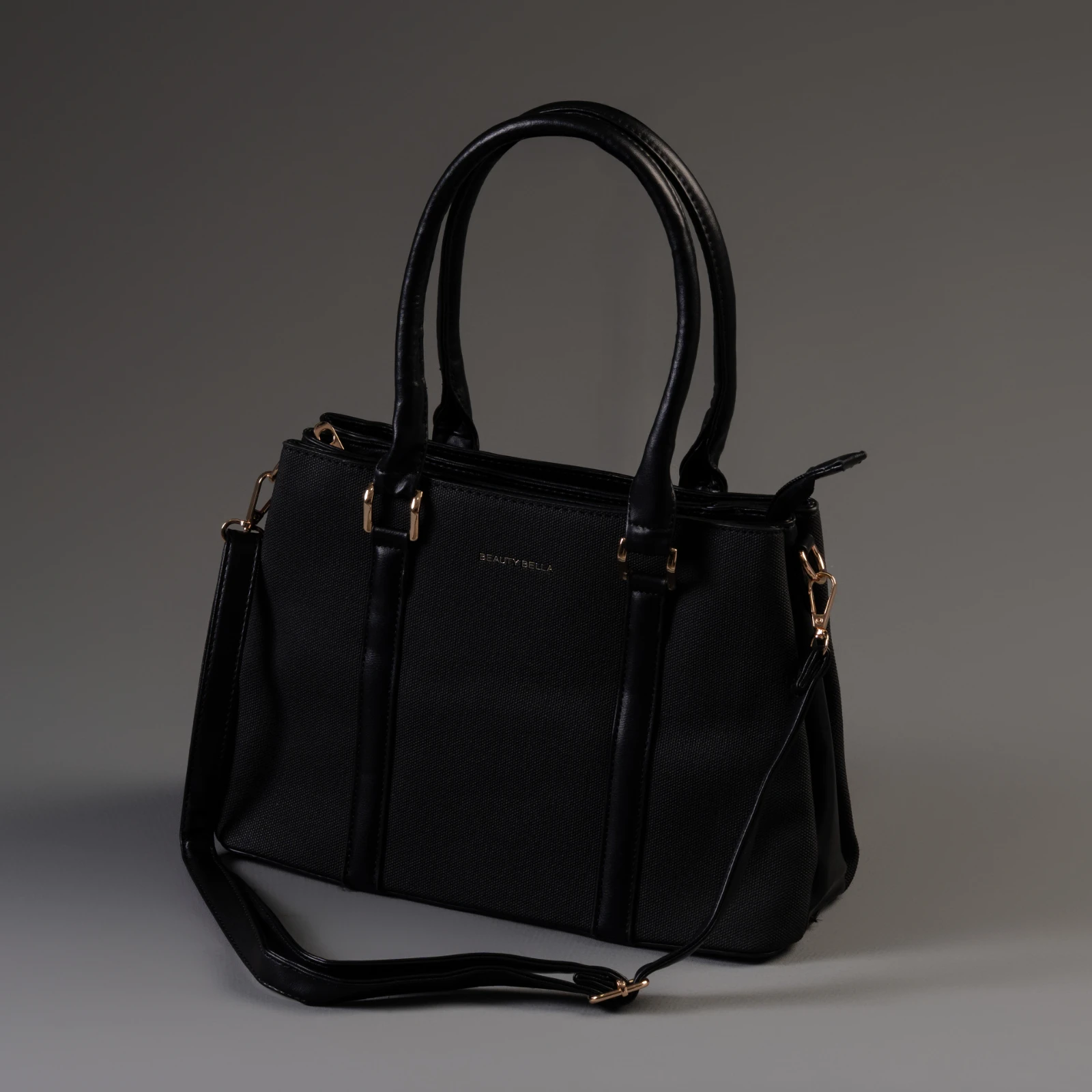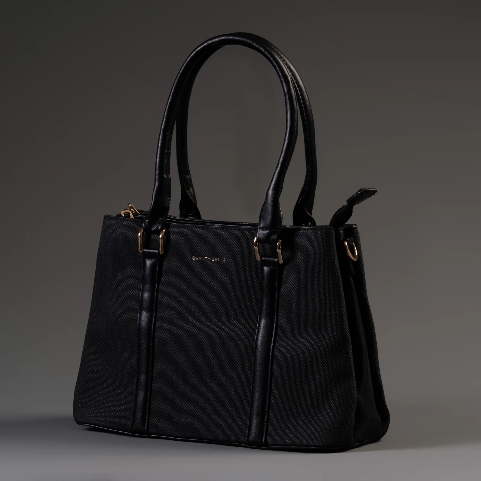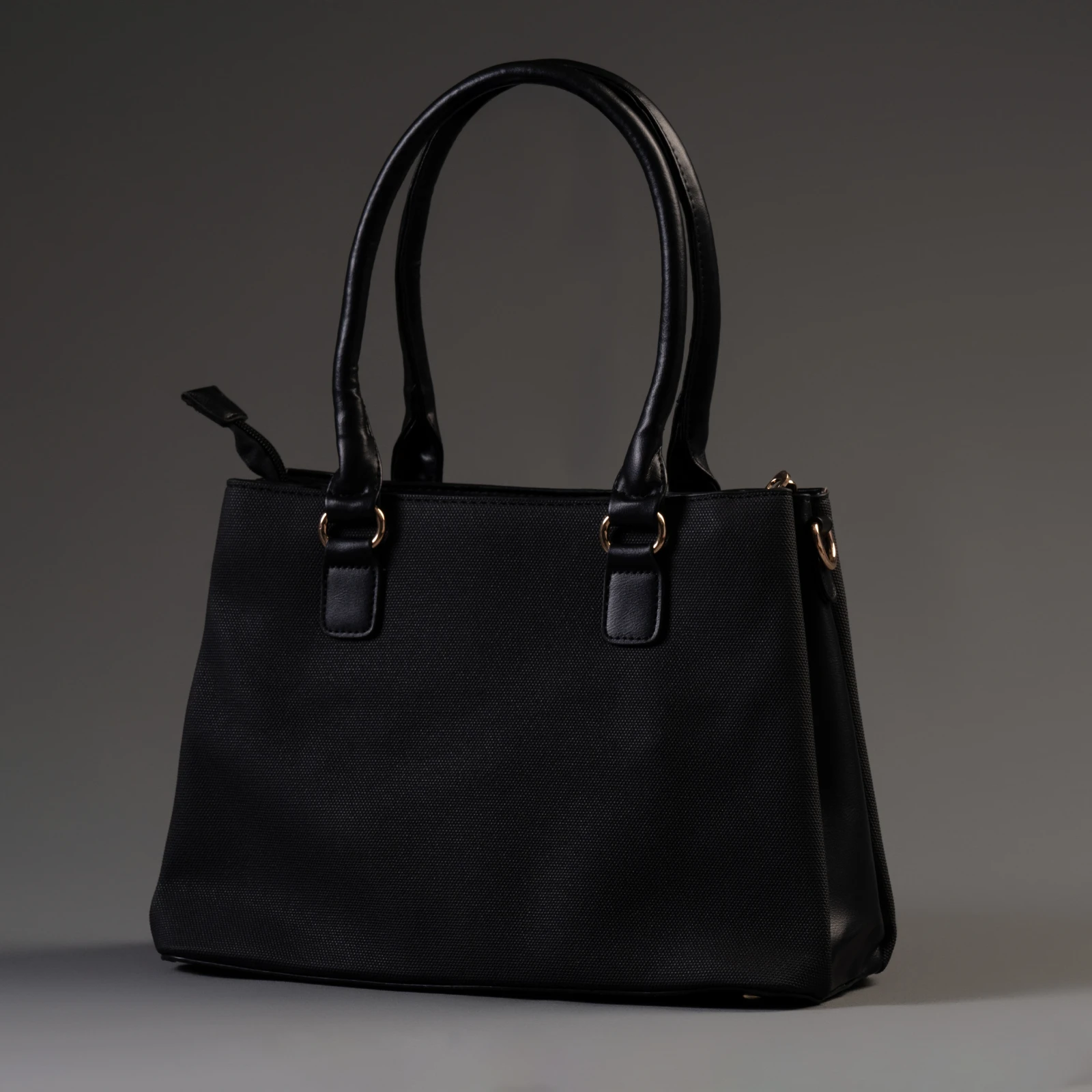 Effortlessly chic, this black double strap handbag is your new go-to accessory. Crafted for the mode...