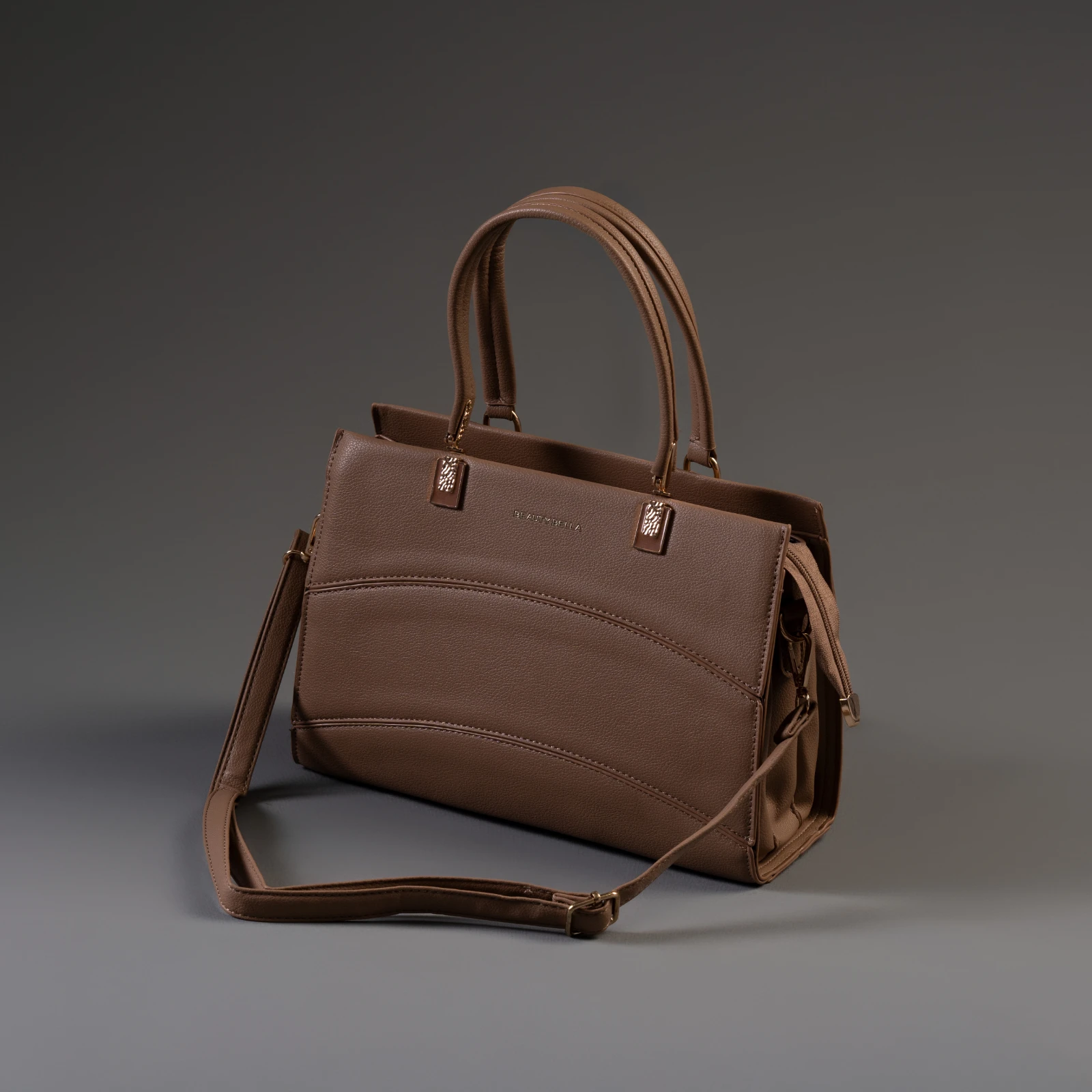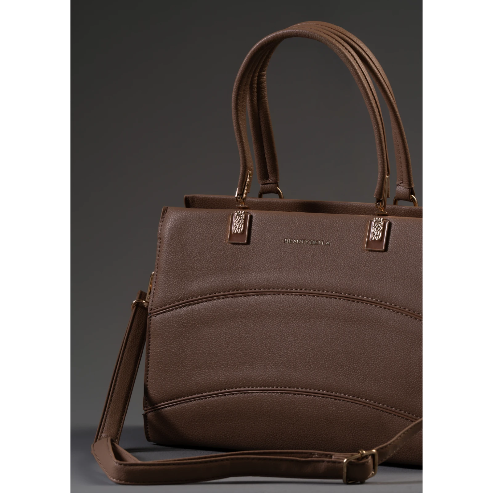Introducing our elegant Ladies Double Strap Brown Hand Bag. Crafted from rich, supple brown material...
