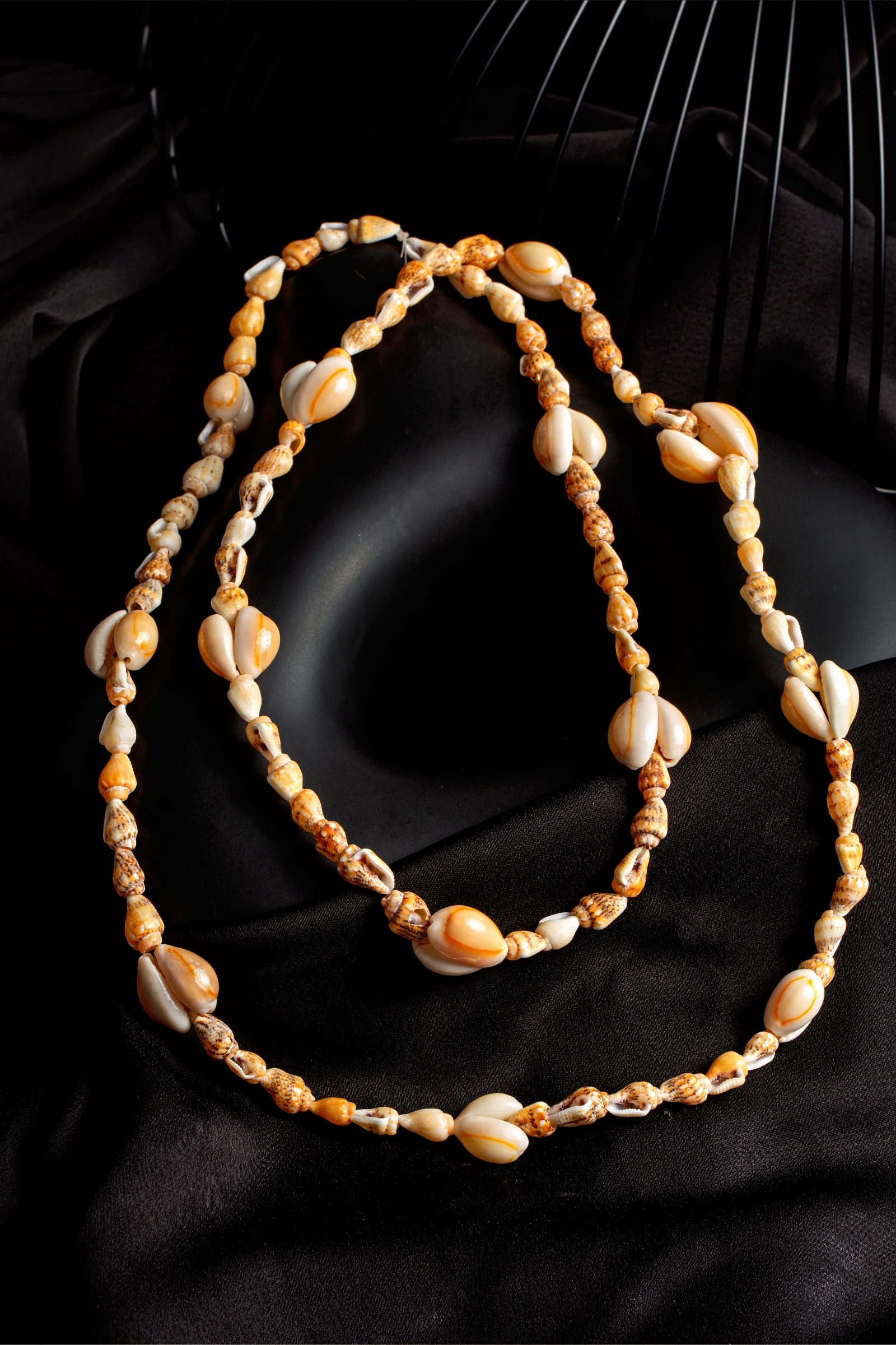 Ocean-inspired elegance. This necklace features genuine conch shell beads, each with unique natural ...