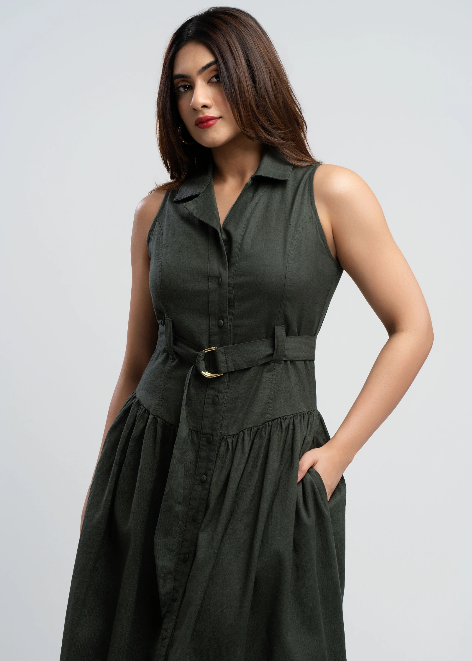 The Skaala Sleeveless Midi Shirt Dress offers effortless chic for any occasion. Crafted from breatha...