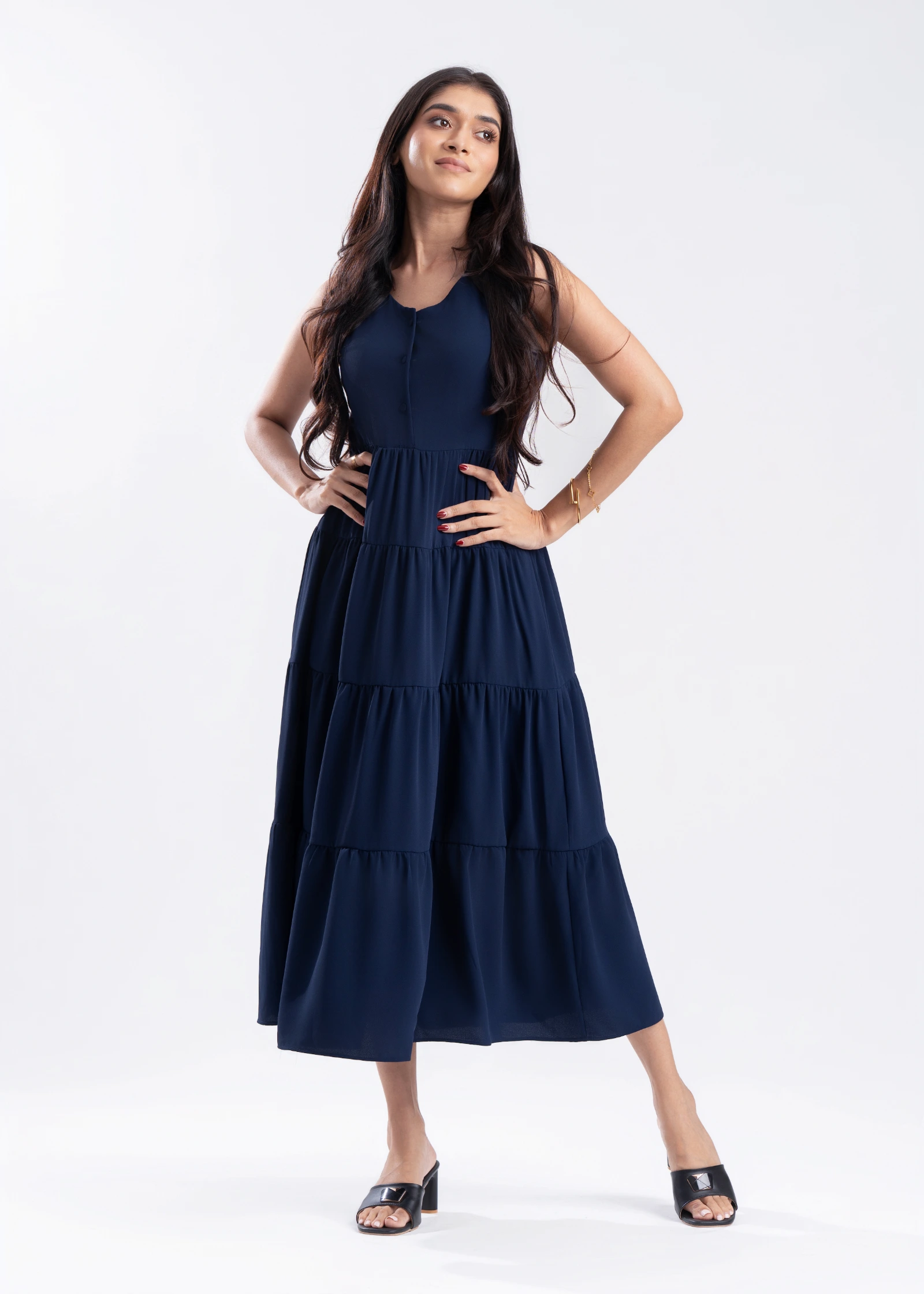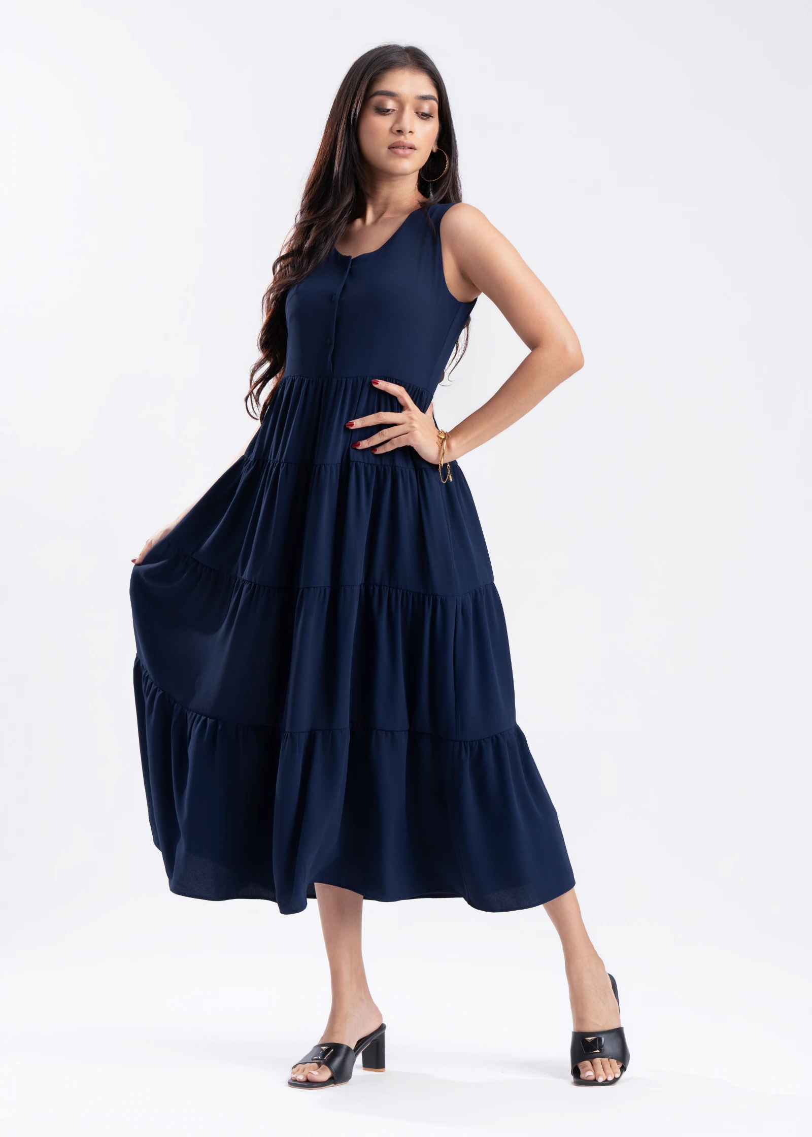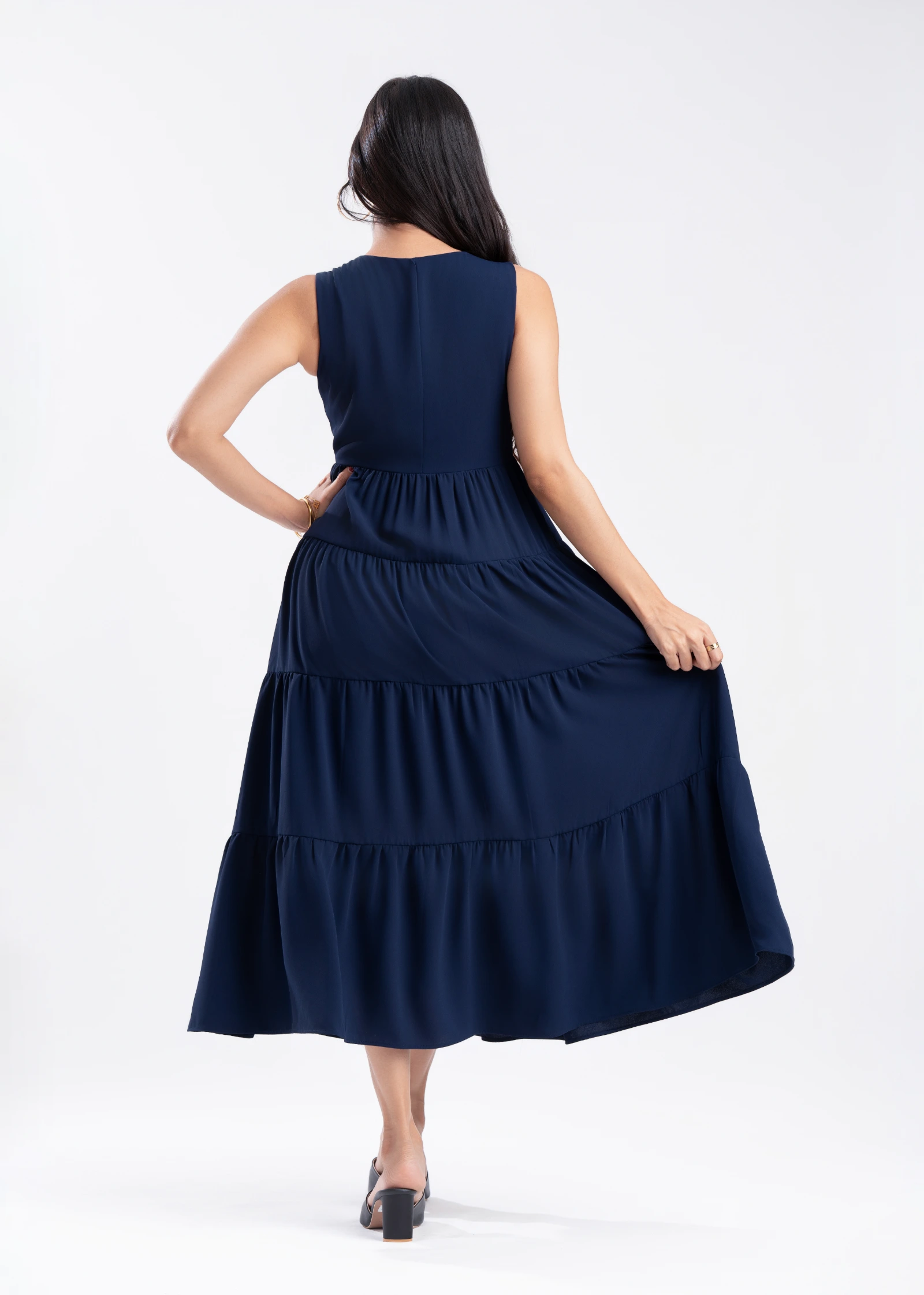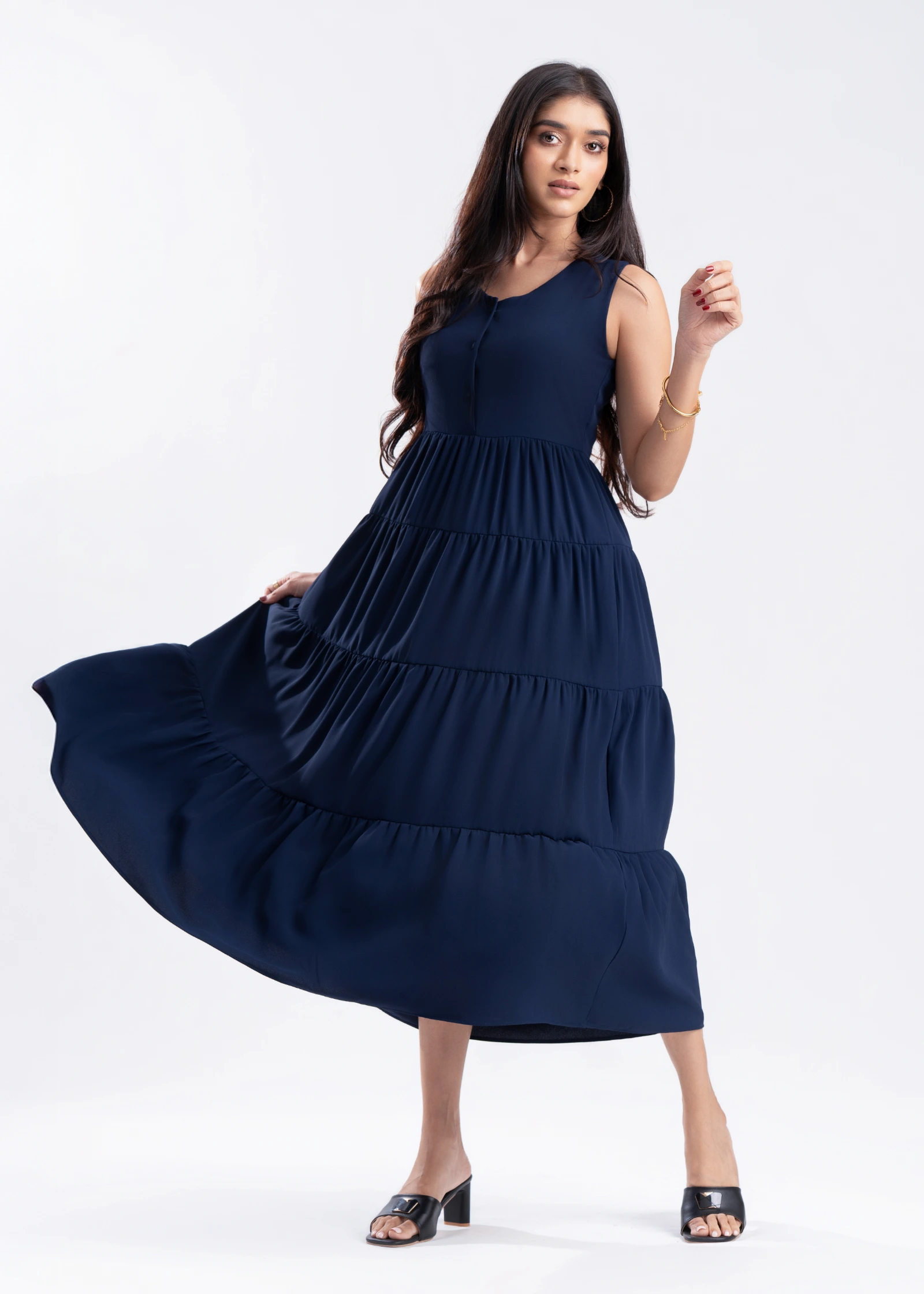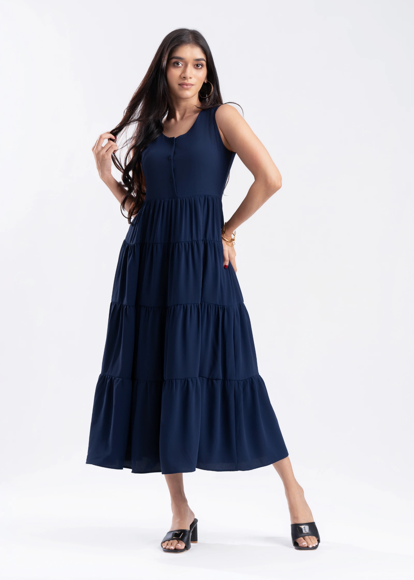 Effortless elegance meets ultimate comfort in the Skaala Sleeveless Tiered Maxi Dress. Crafted from ...