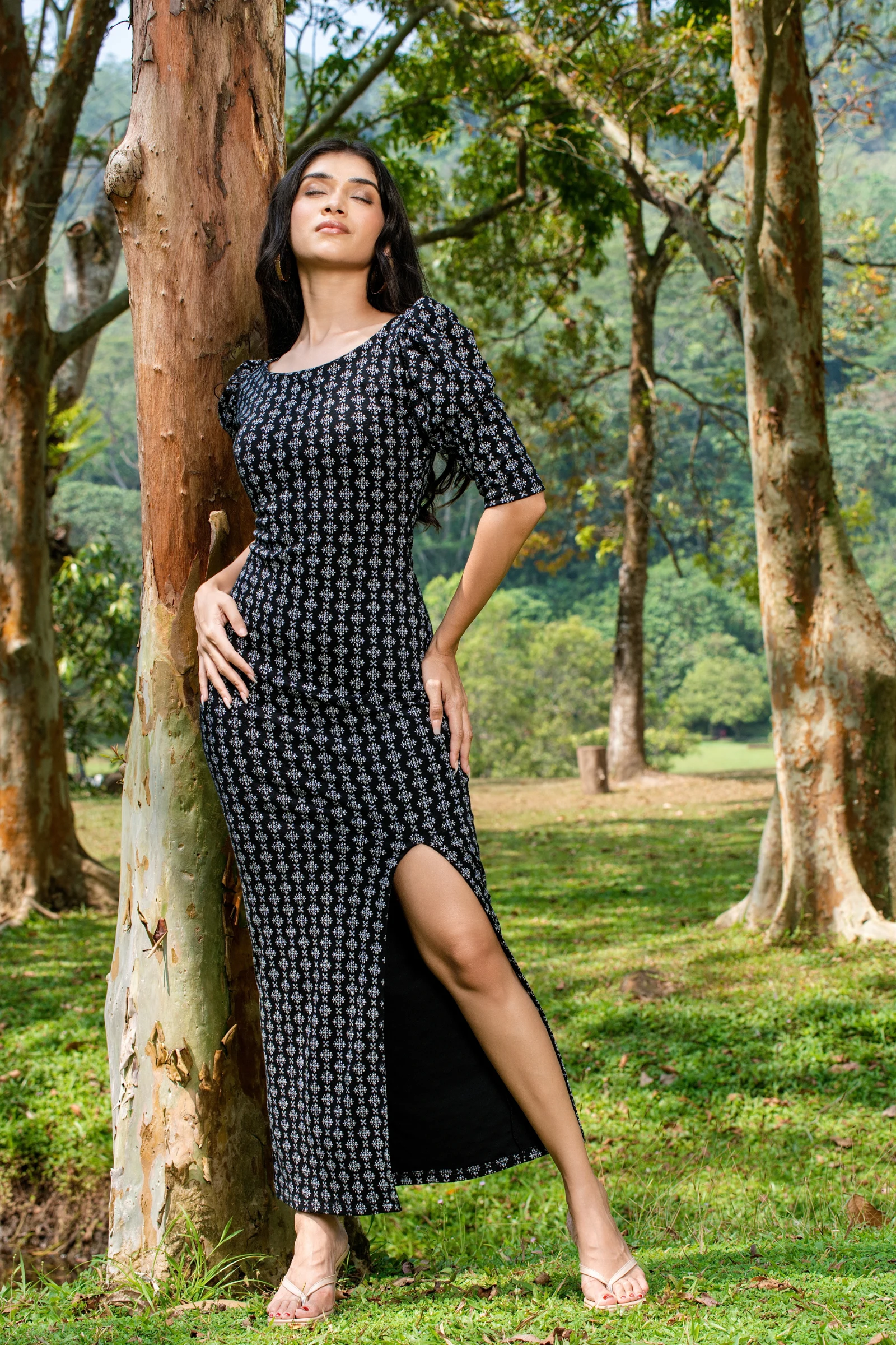 Effortless elegance meets playful charm in the Tee Love Black Color Puff Sleeve Floral Printed Long ...