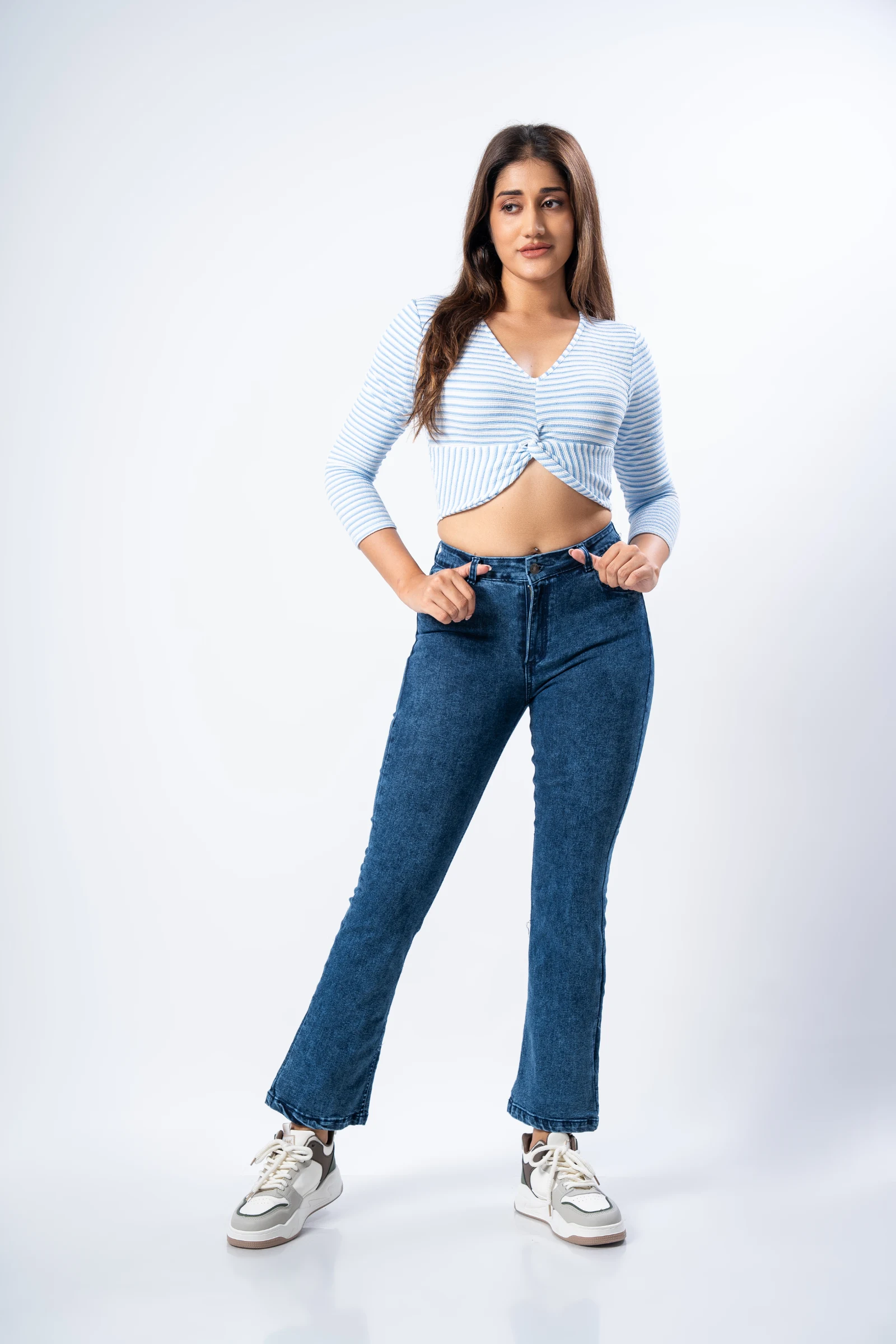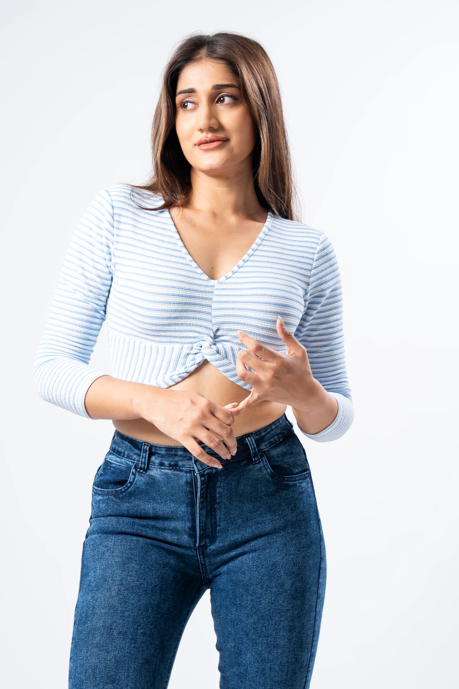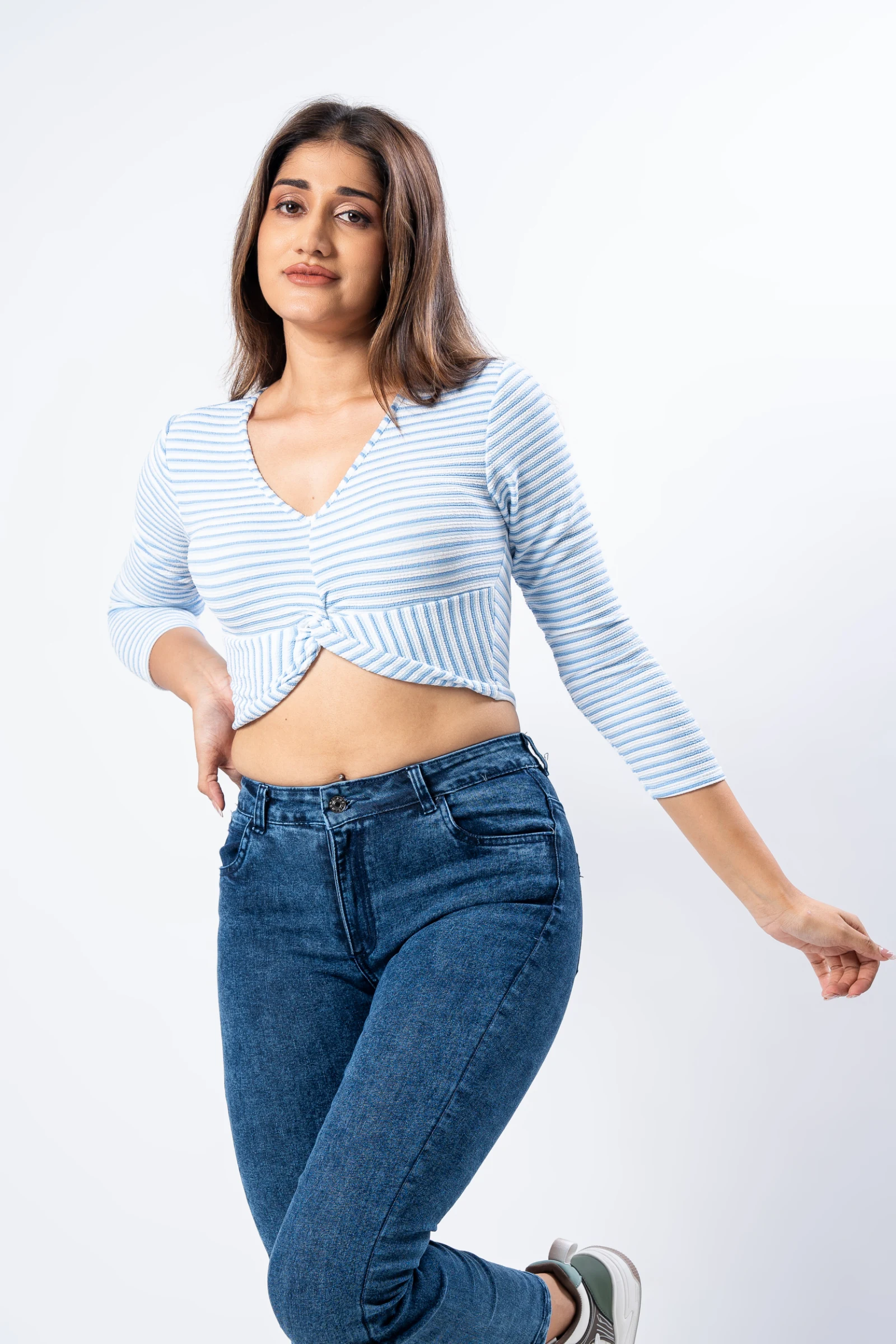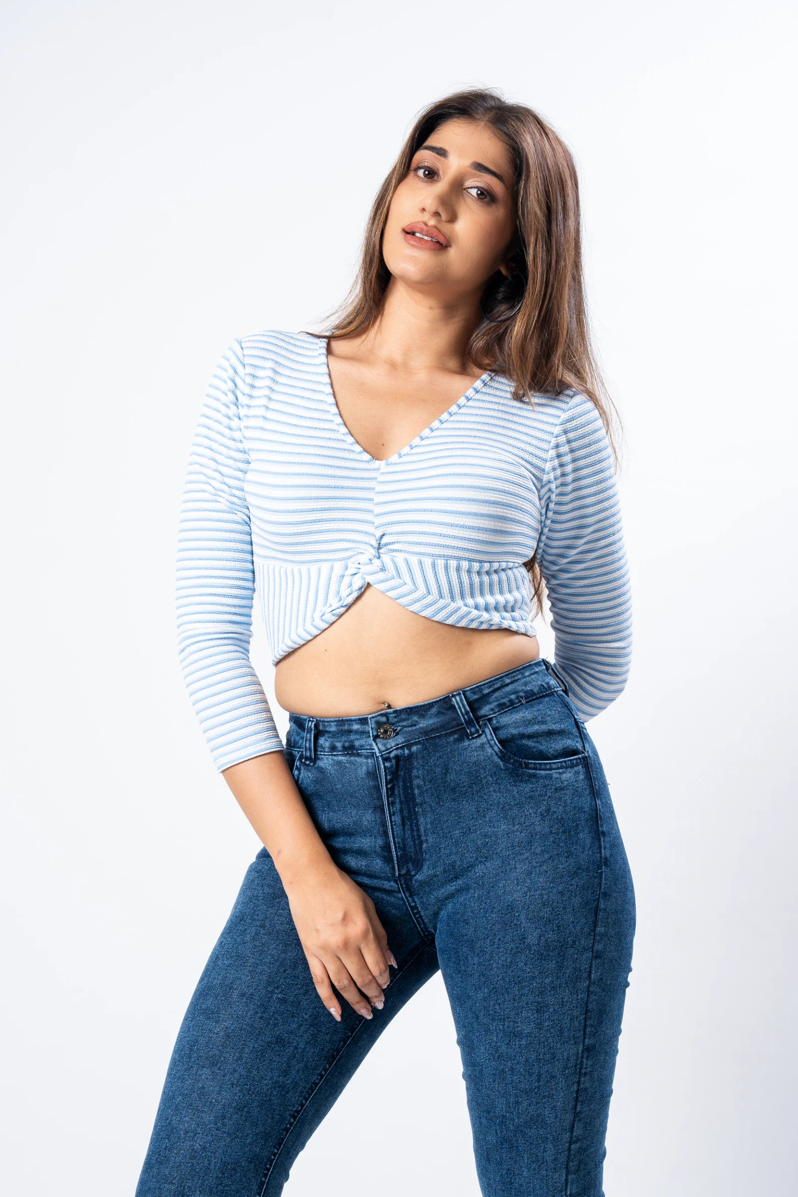 Stay cool and stylish in our Tee Love Blue Stripe Crop Top. A breezy, blue striped cotton top perfe...